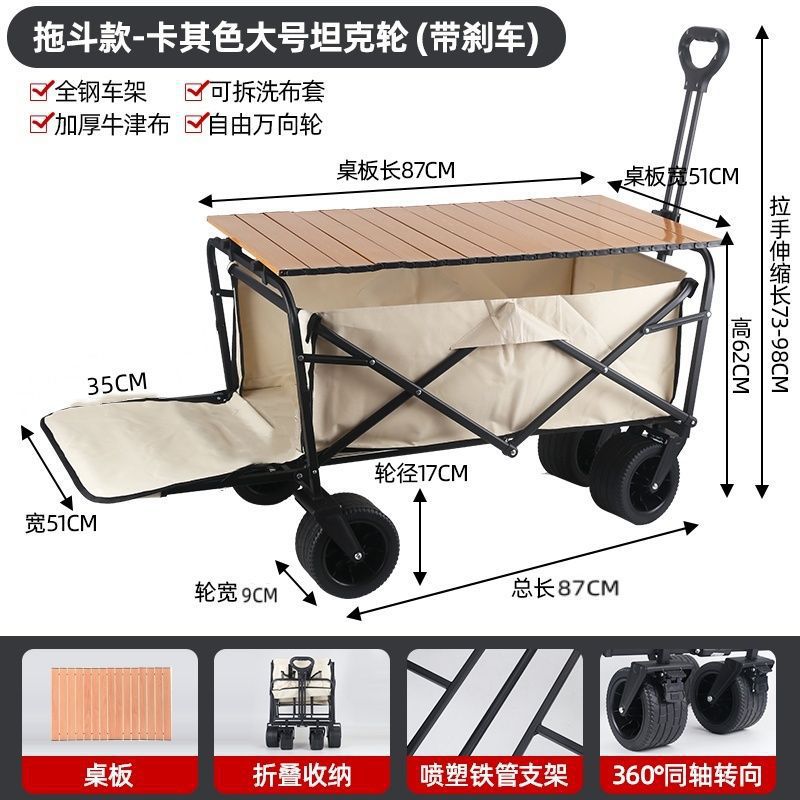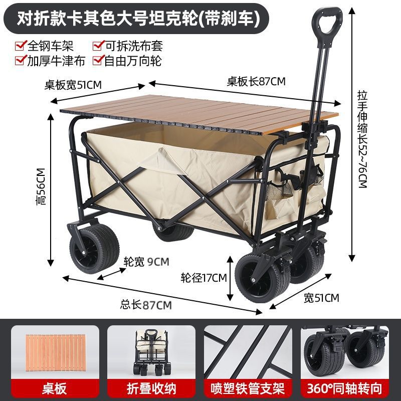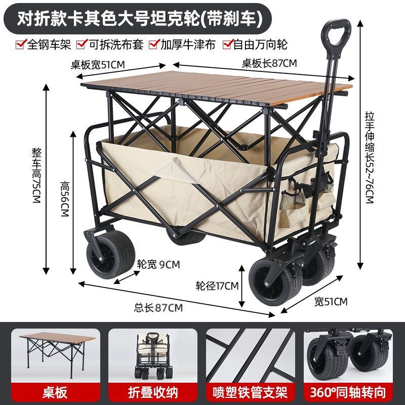 • 야외 캠핑카 + 접이식 탁상 후면 카키/ 10inch 탱크 더블 브레이크 유니버설 휠
