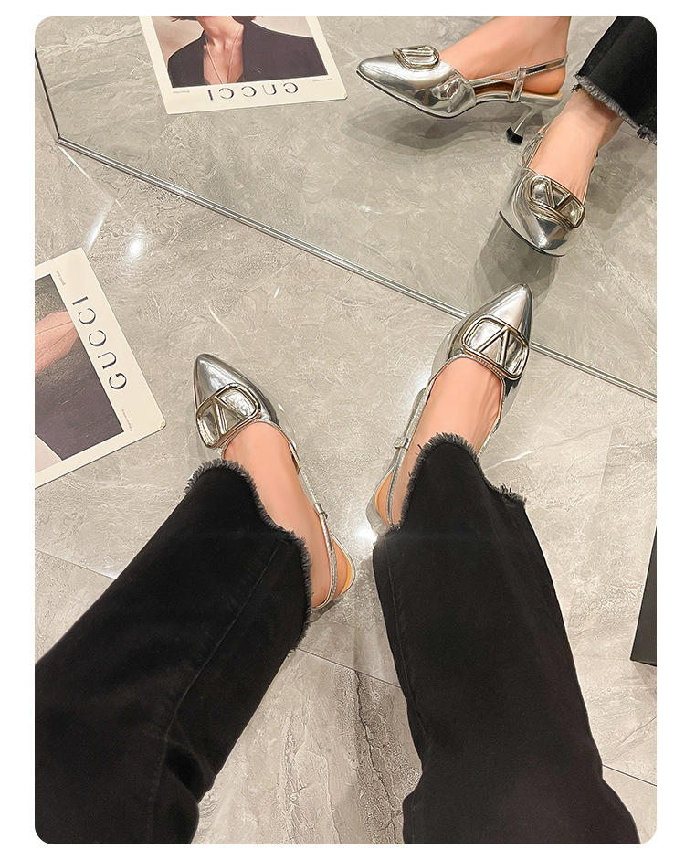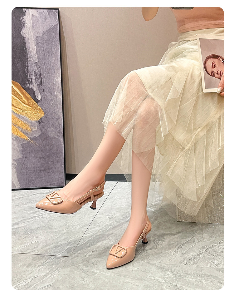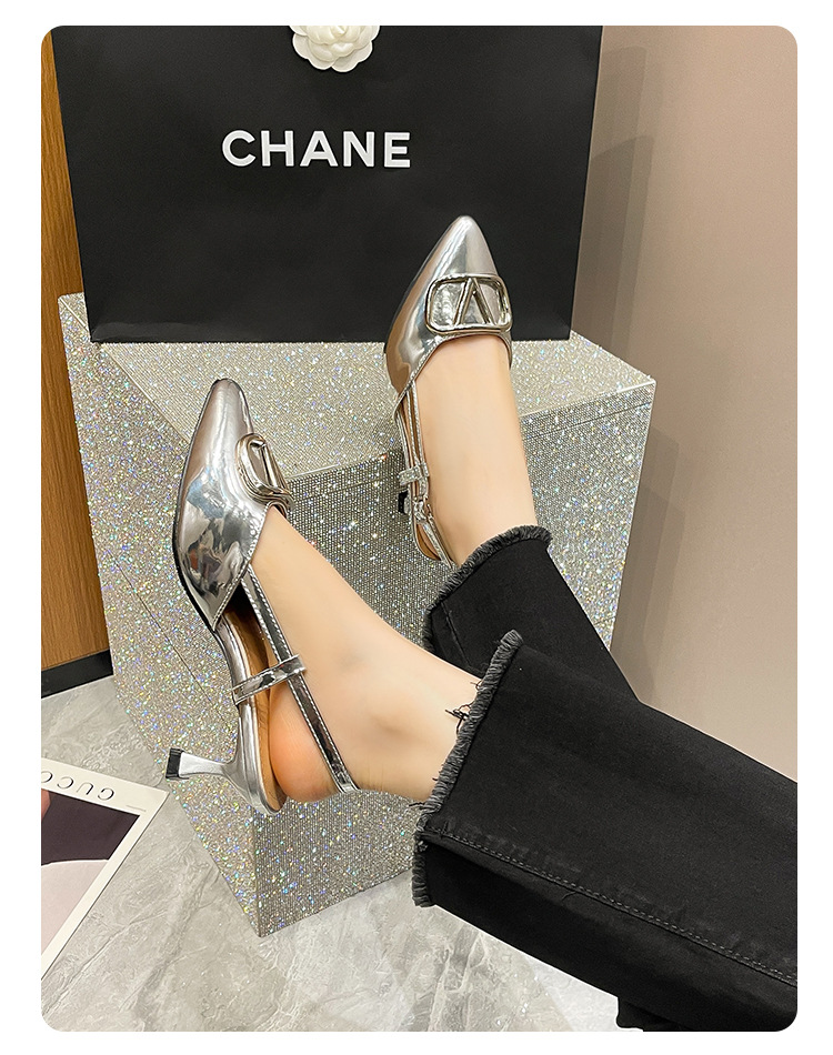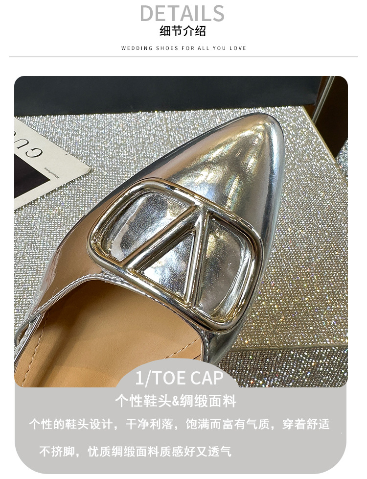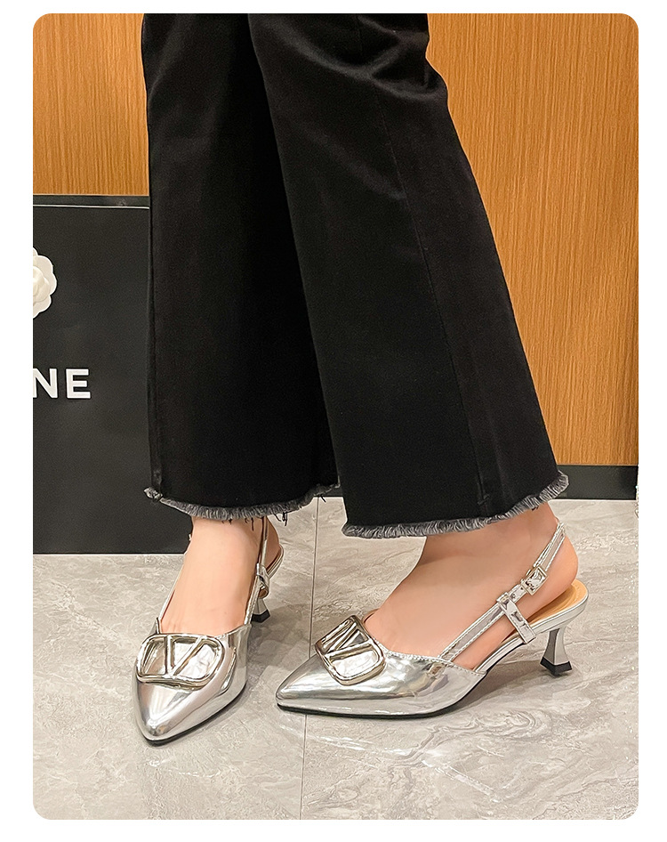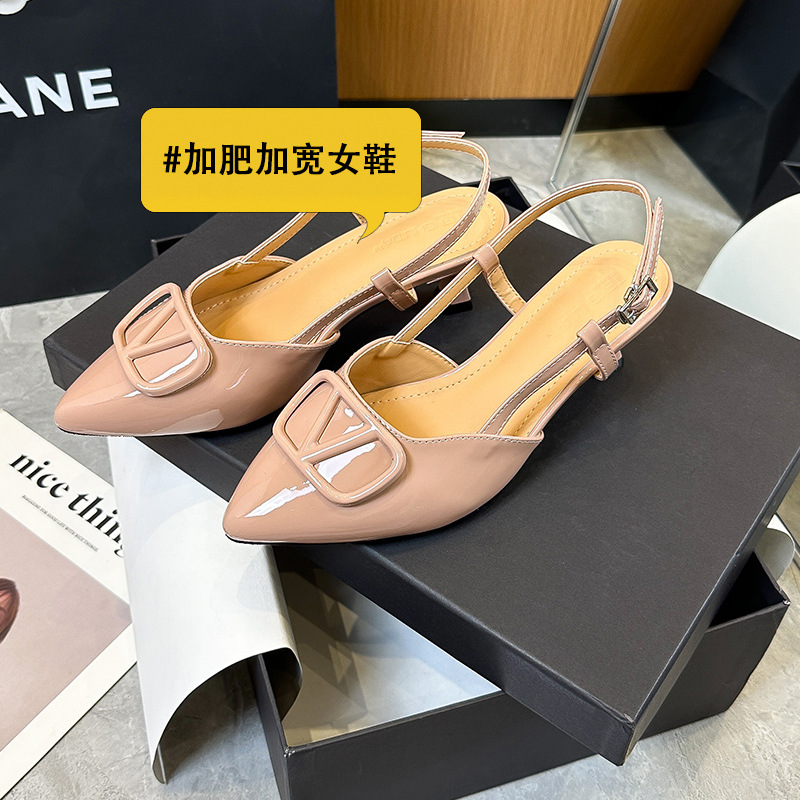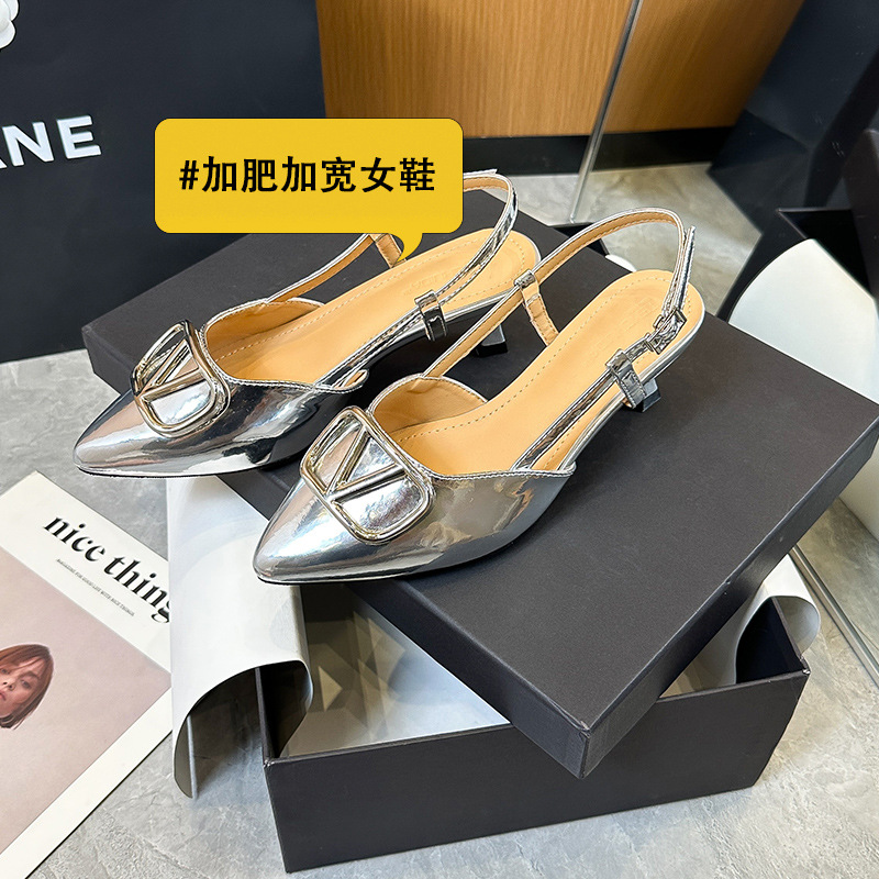 두꺼운 발을 위한 외부 착용용 발가락 샌들, 패셔너블한 뒷부분이 빈 뾰족한 발가락 V 버클 스틸레토 하이힐, 앞발이 넓어진 대형 여성화