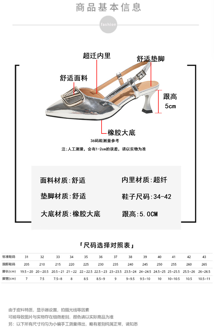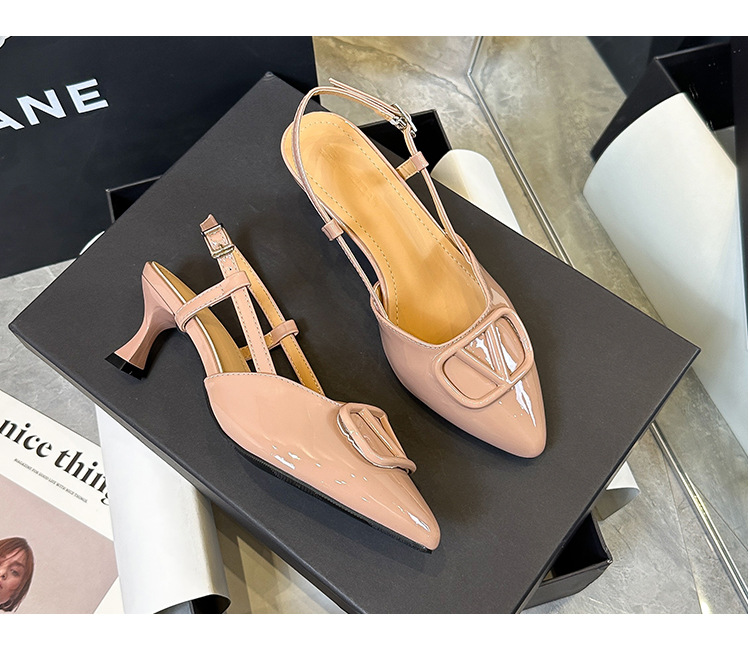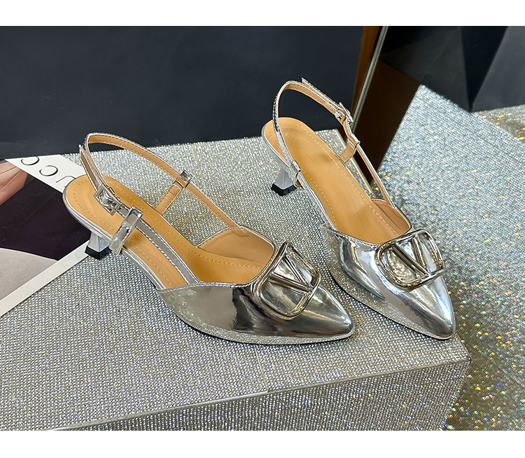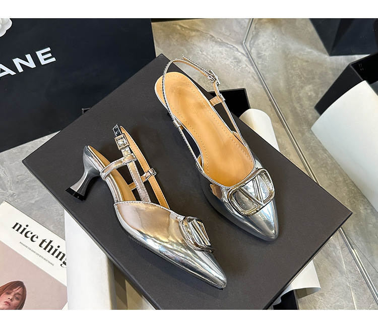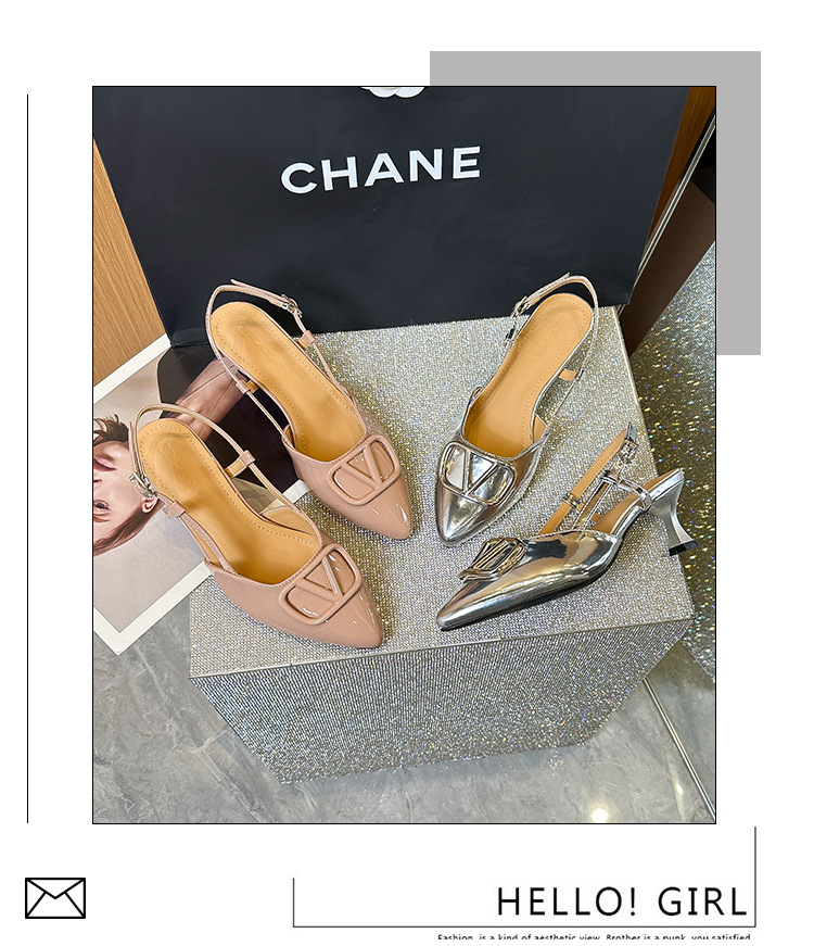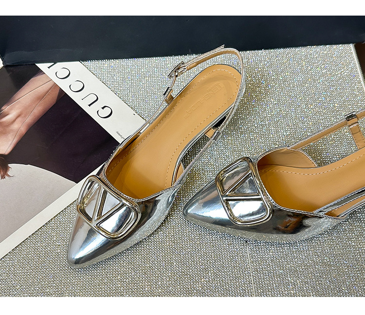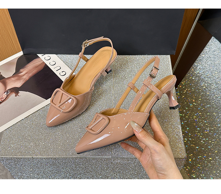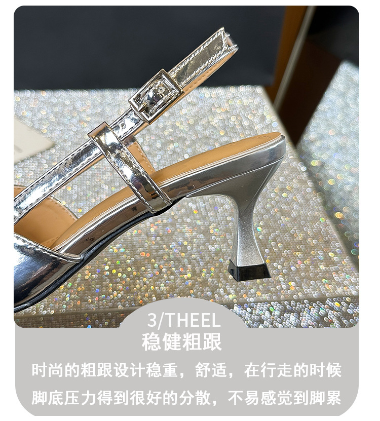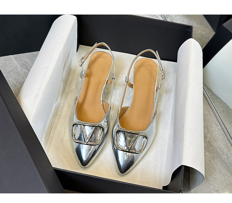 두꺼운 발을 위한 외부 착용용 발가락 샌들, 패셔너블한 뒷부분이 빈 뾰족한 발가락 V 버클 스틸레토 하이힐, 앞발이 넓어진 대형 여성화