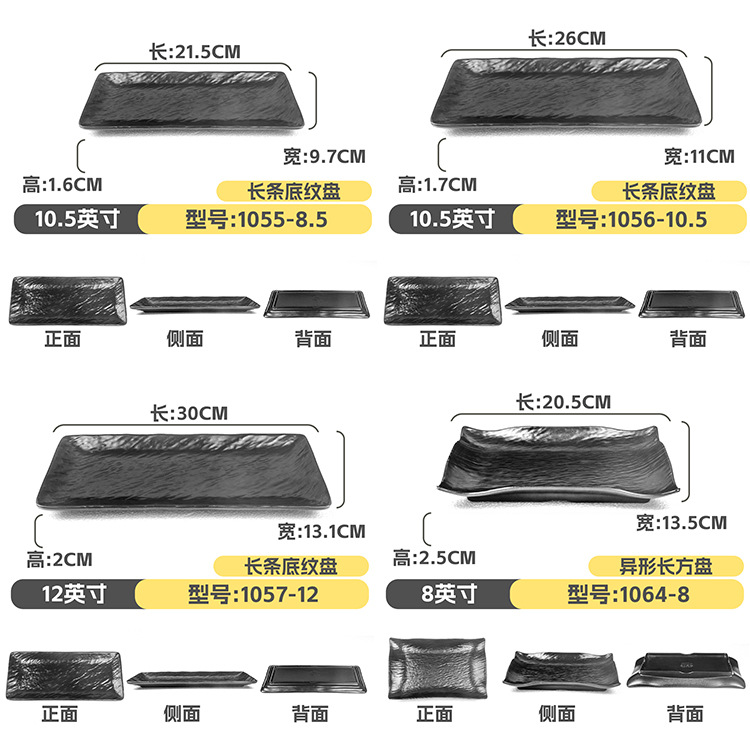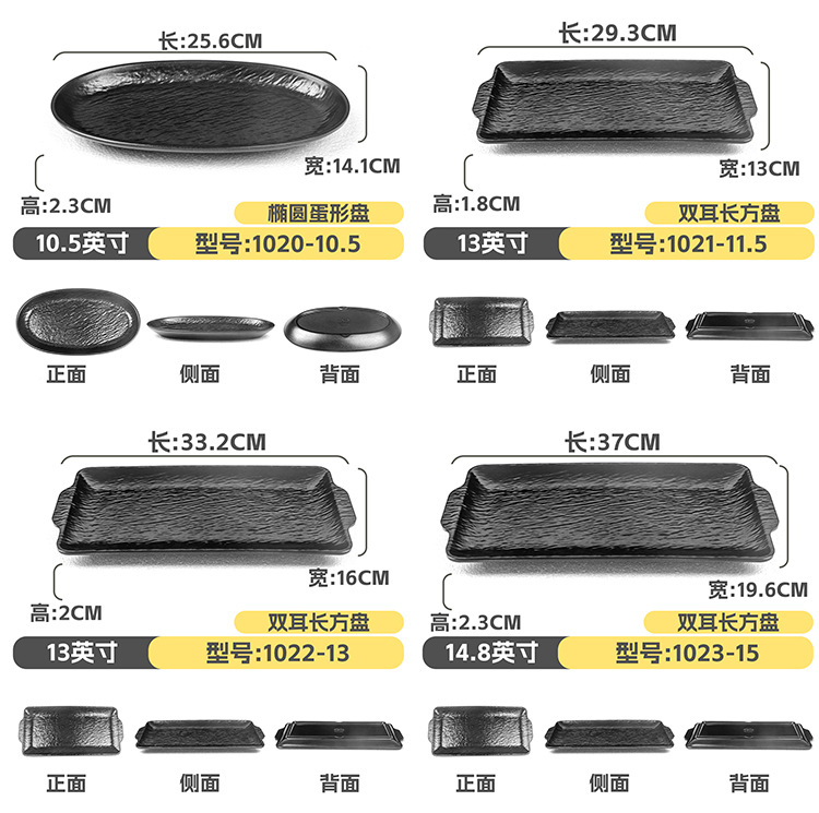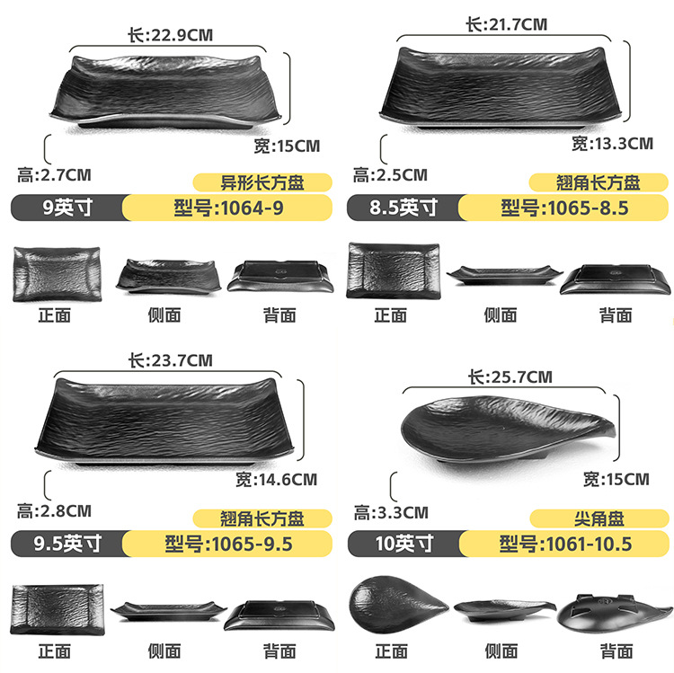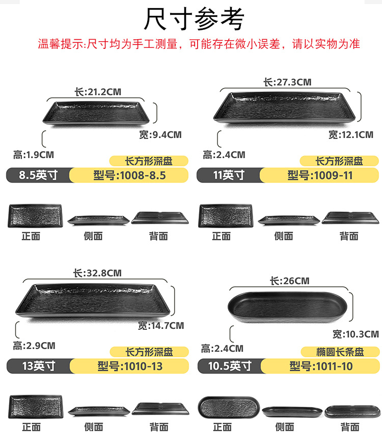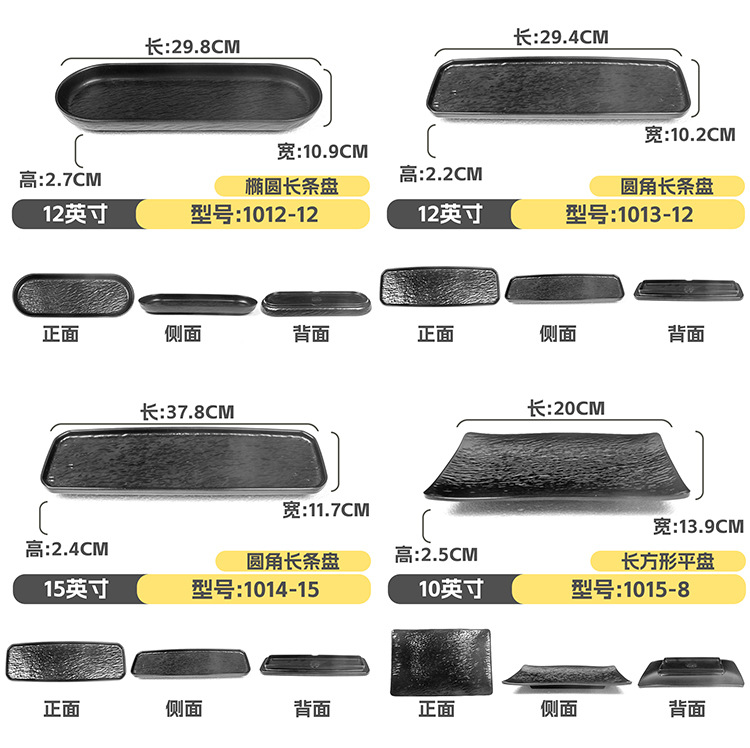 멜라민 직사각형 접시 일본식 창작 스시 바베큐 접시 검은색 긴 접시 바베큐 접시 플랫 접시 상업용스토어 가기