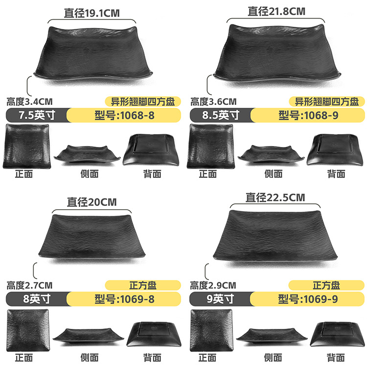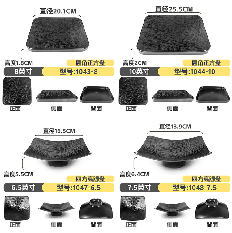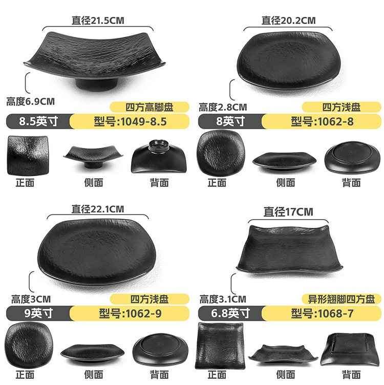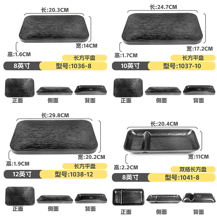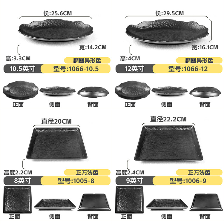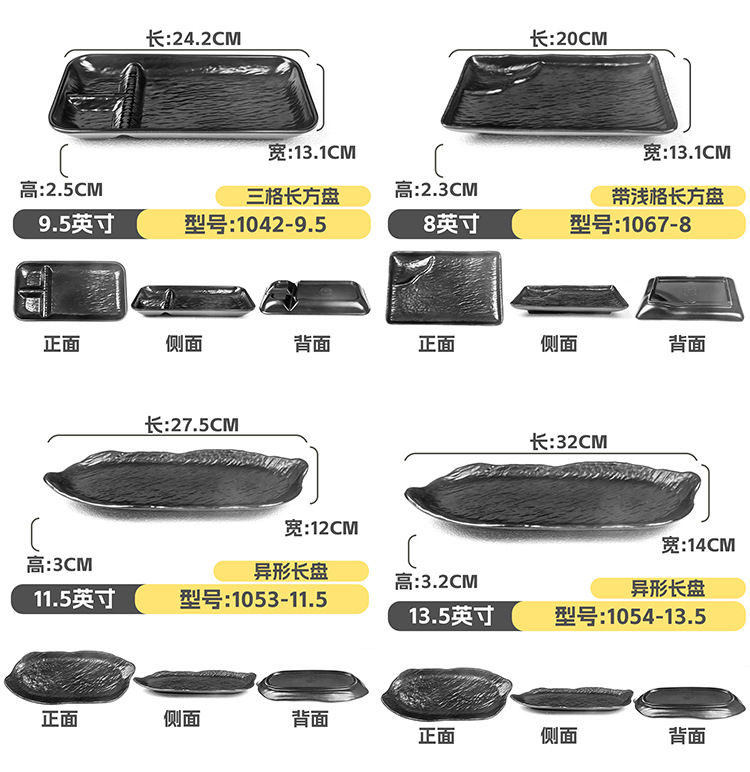 멜라민 직사각형 접시 일본식 창작 스시 바베큐 접시 검은색 긴 접시 바베큐 접시 플랫 접시 상업용스토어 가기
