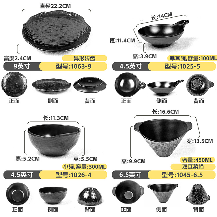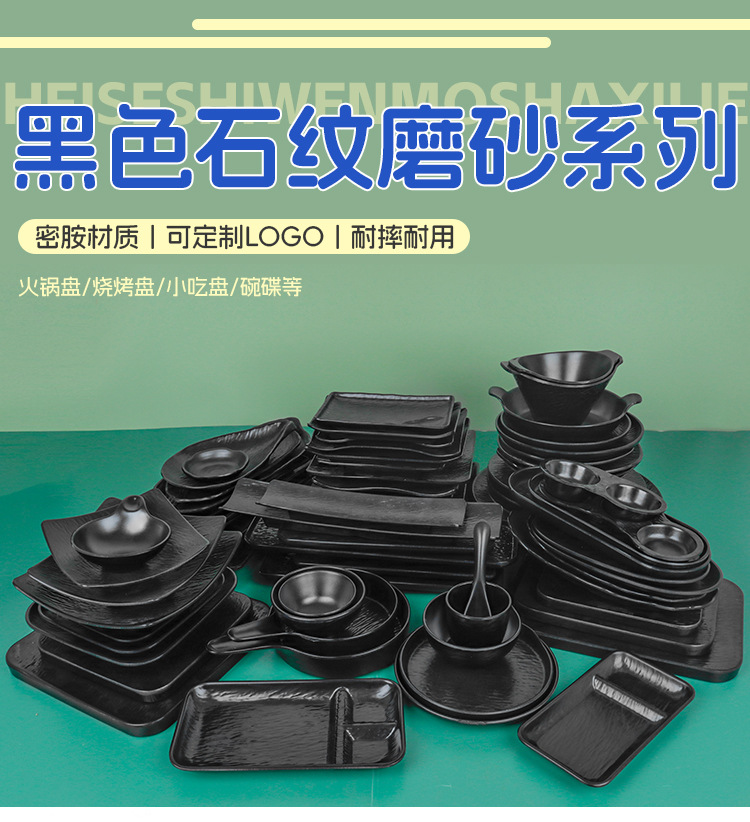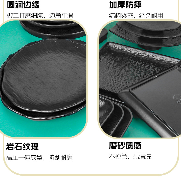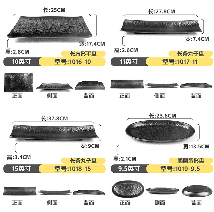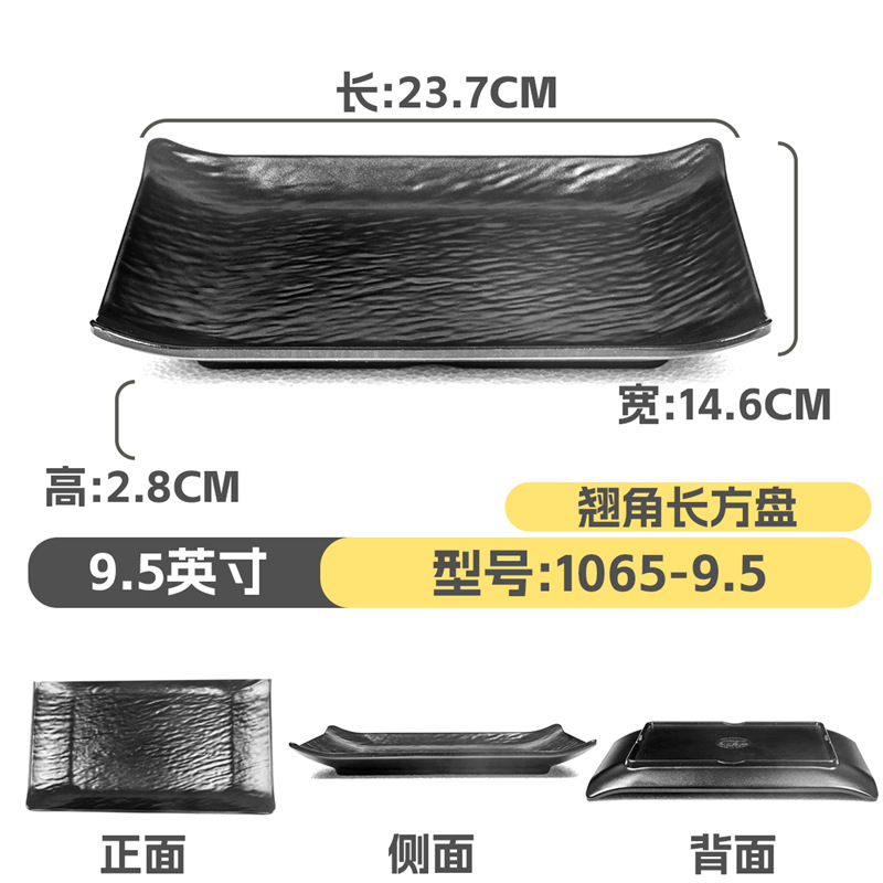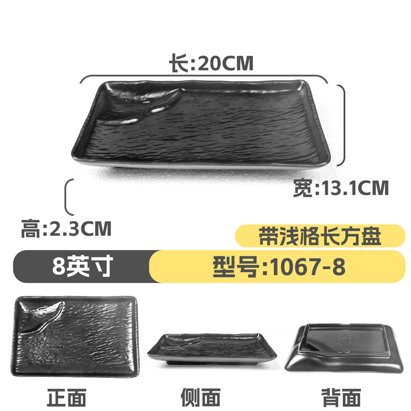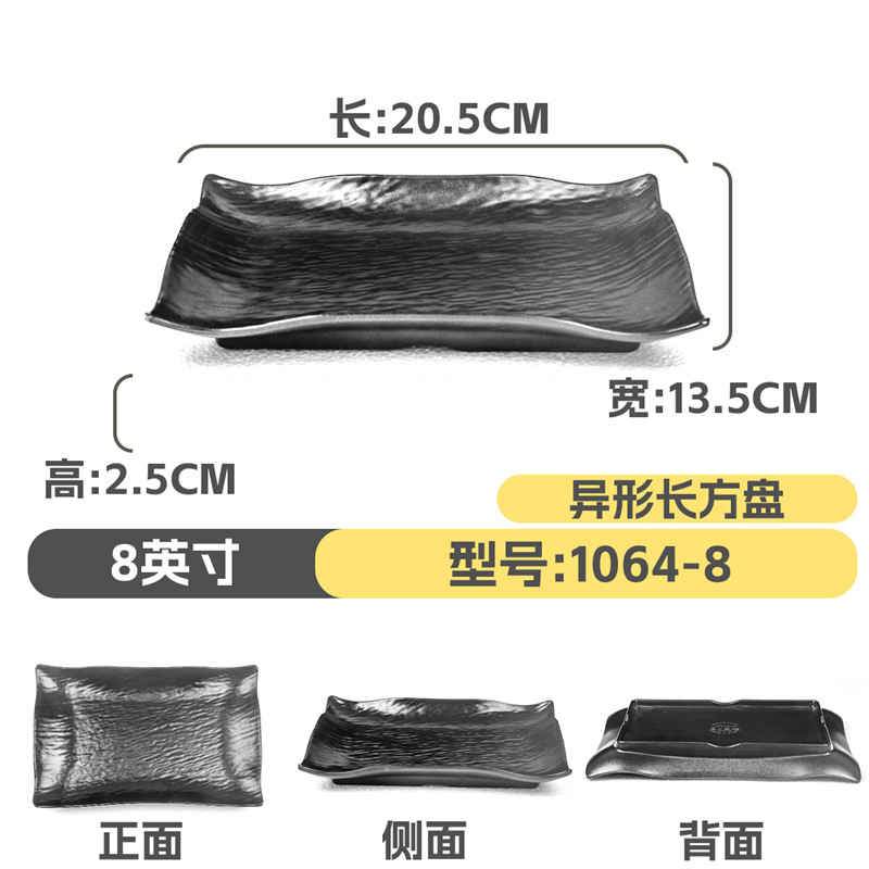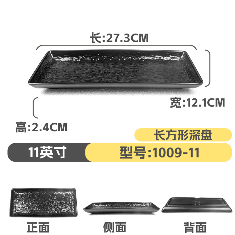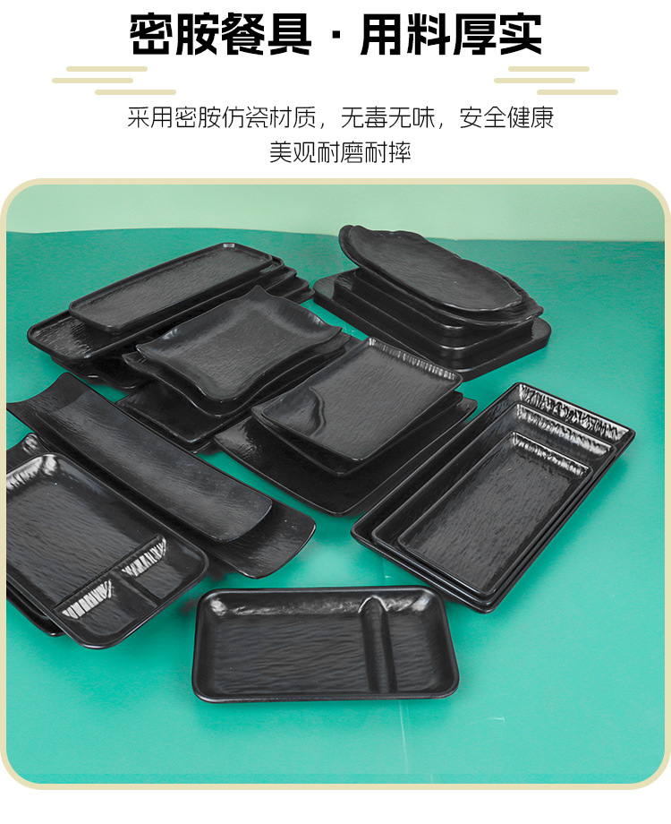 멜라민 직사각형 접시 일본식 창작 스시 바베큐 접시 검은색 긴 접시 바베큐 접시 플랫 접시 상업용