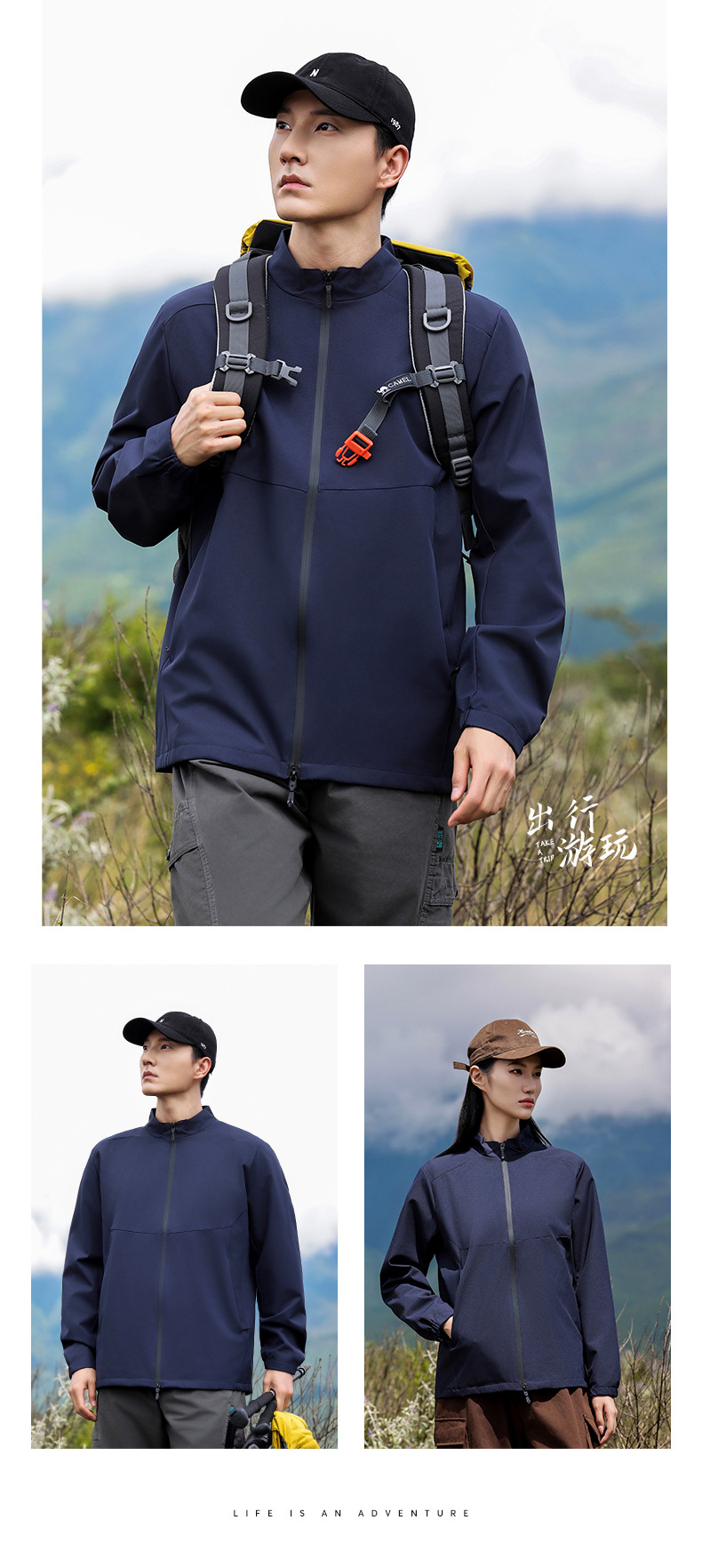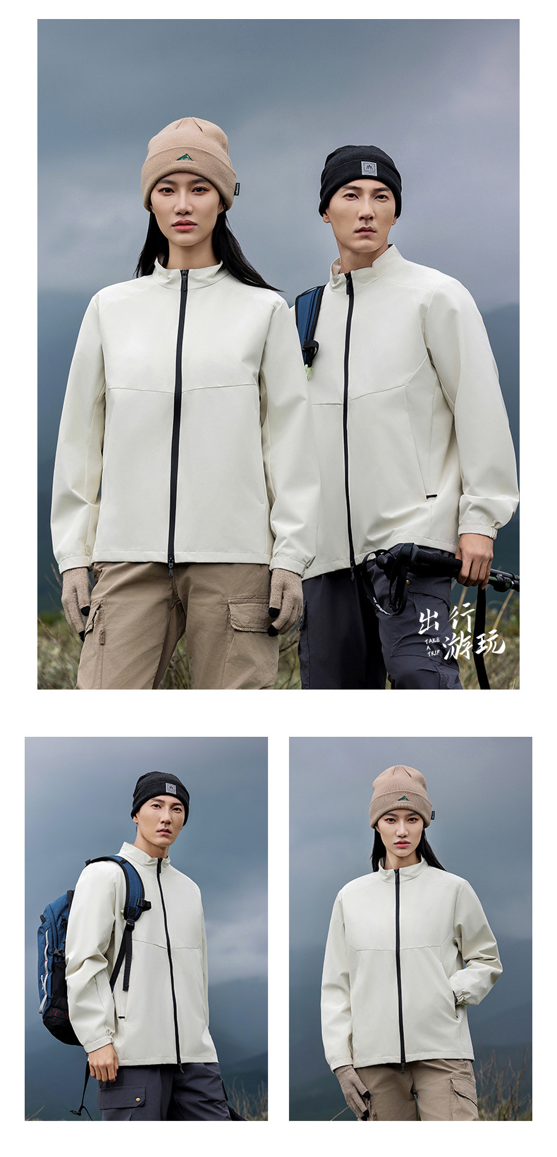 커플을 위한 새로운 방풍, 방수 및 따뜻한 재킷, 여성용 하이킹 아웃도어 캐주얼 재킷, 싱글 레이어 스탠드 칼라 소프트 쉘 탑스토어 가기