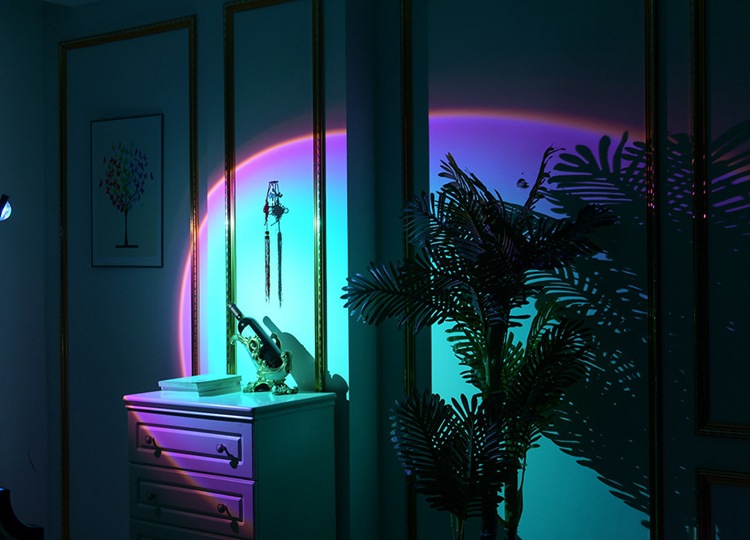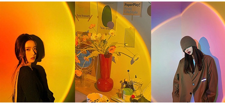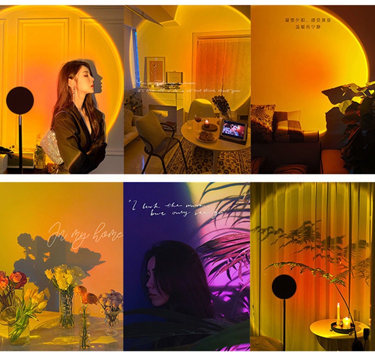 국경 간 달 램프 일몰 램프 무지개 일몰 램프 야간 조명 RGB 원격 제어 창조적 인 배경 프로젝션 USB 분위기 램프