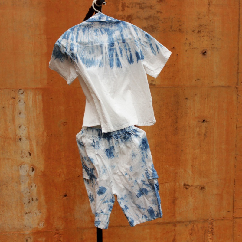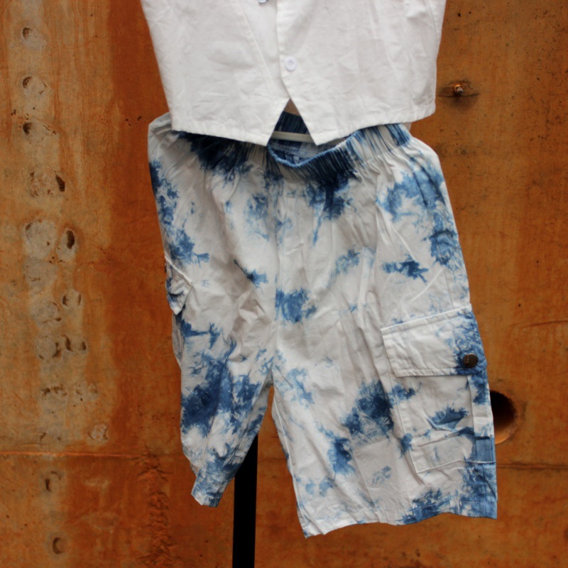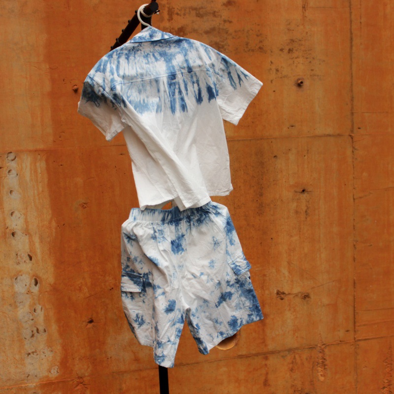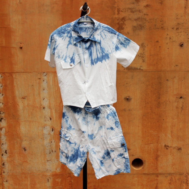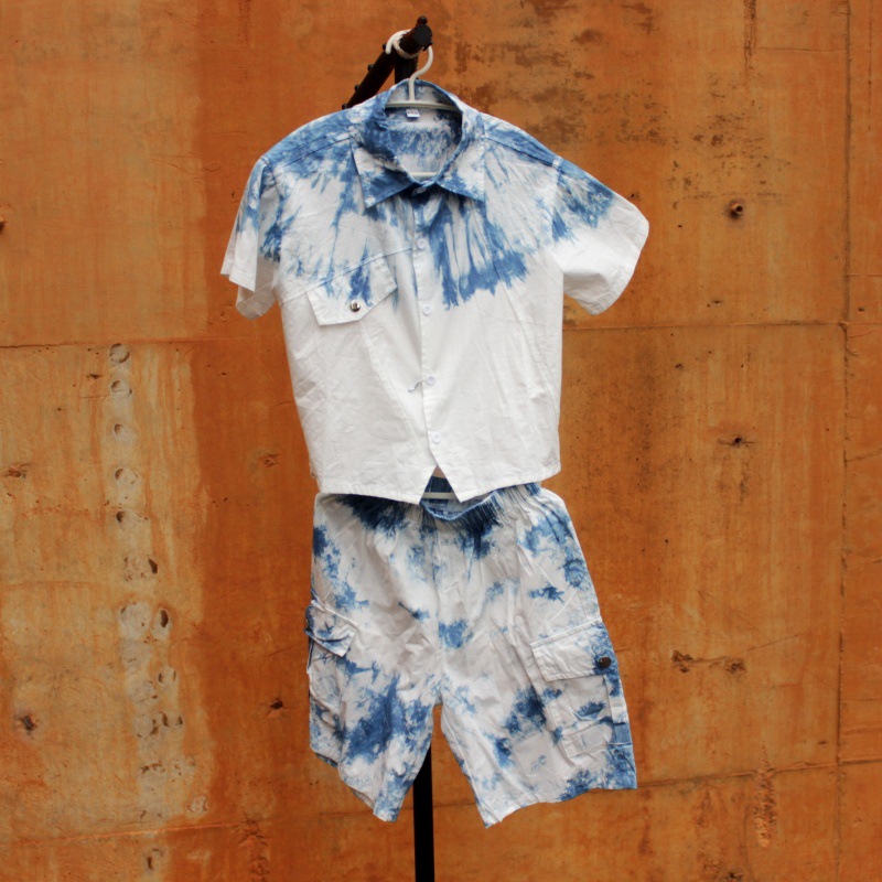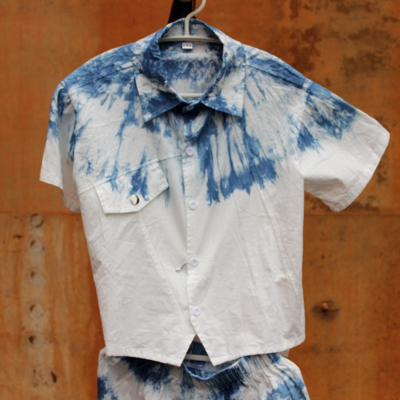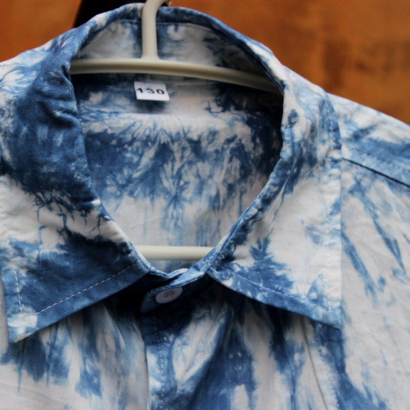Dali 수제 타이 염색 민족 스타일 소년 반팔 셔츠 여름 여행 청색 염색 어린이 캐주얼 셔츠 정장스토어 가기