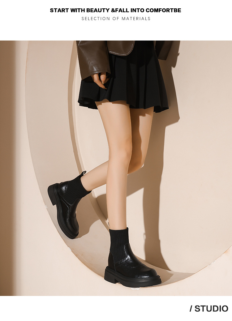 1133-1 여성용 영국식 두꺼운 밑창 마틴 부츠 2025 겨울 신상품 플러스 사이즈 및 와이드 숏부츠 스트레치 부츠스토어 가기