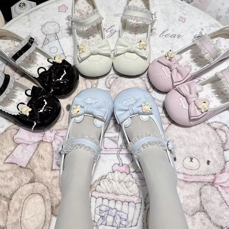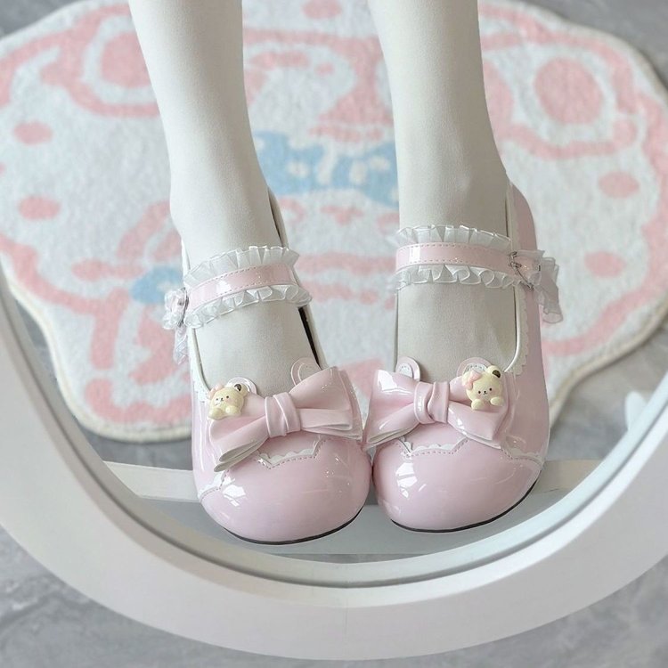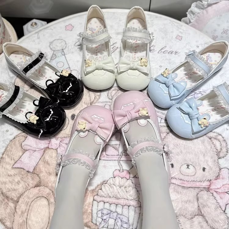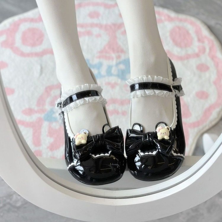 2025 새로운 둥근 발가락 귀여운 로리타 달콤한 작은 가죽 신발 나비 하트 귀여운 활스토어 가기