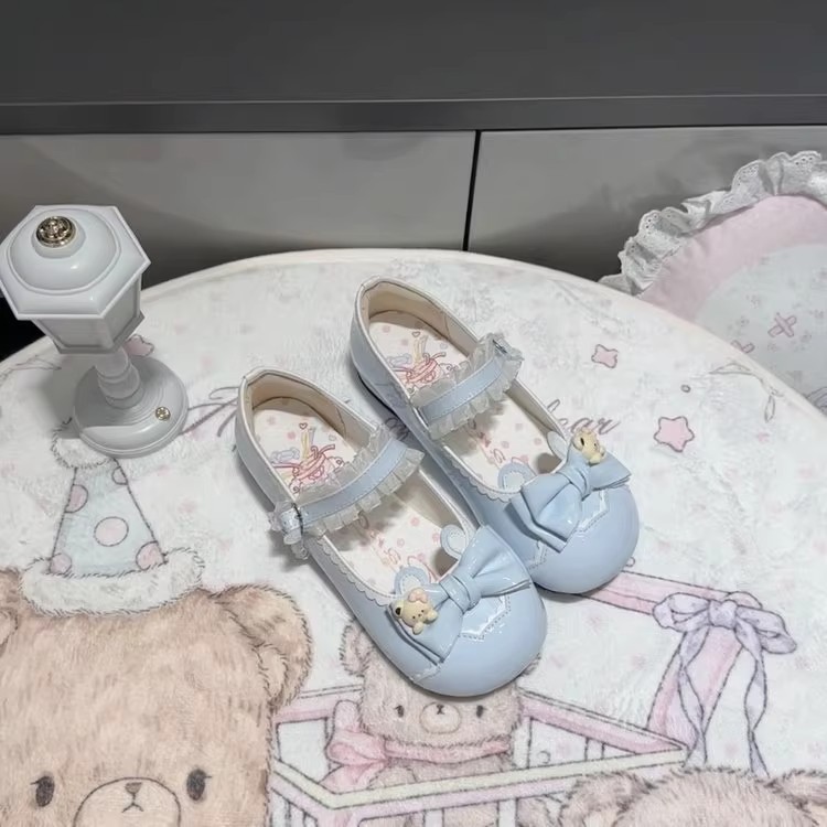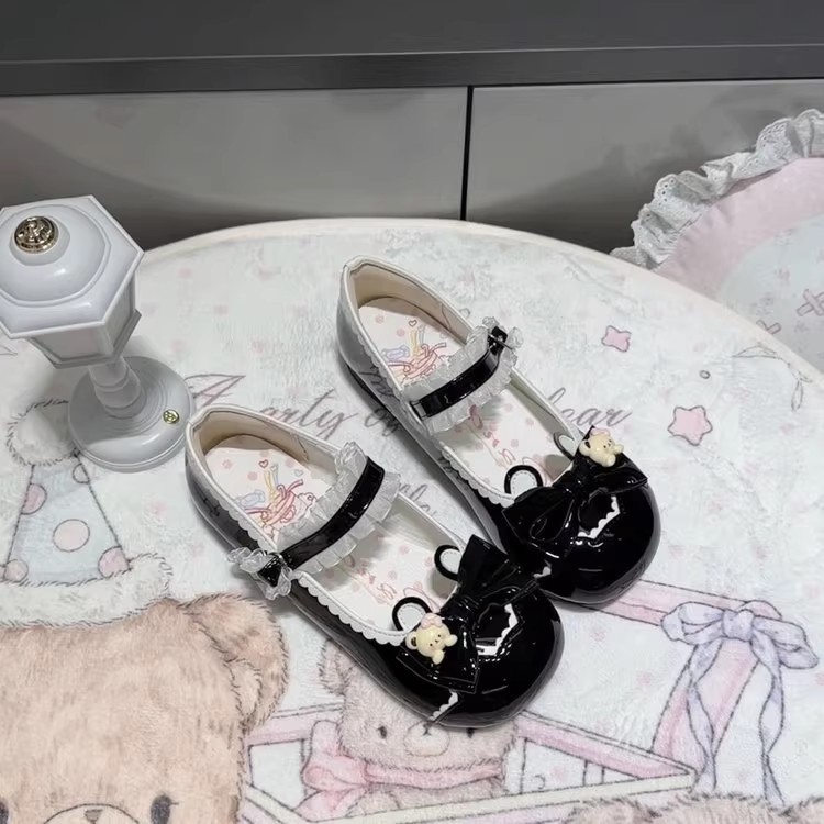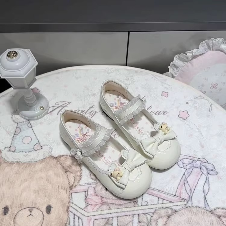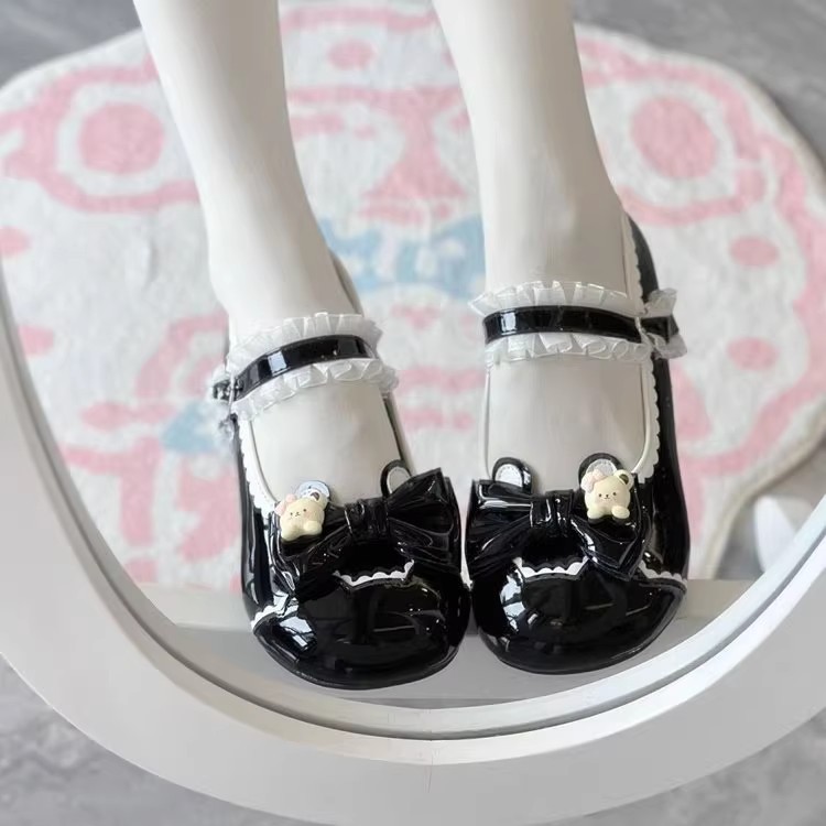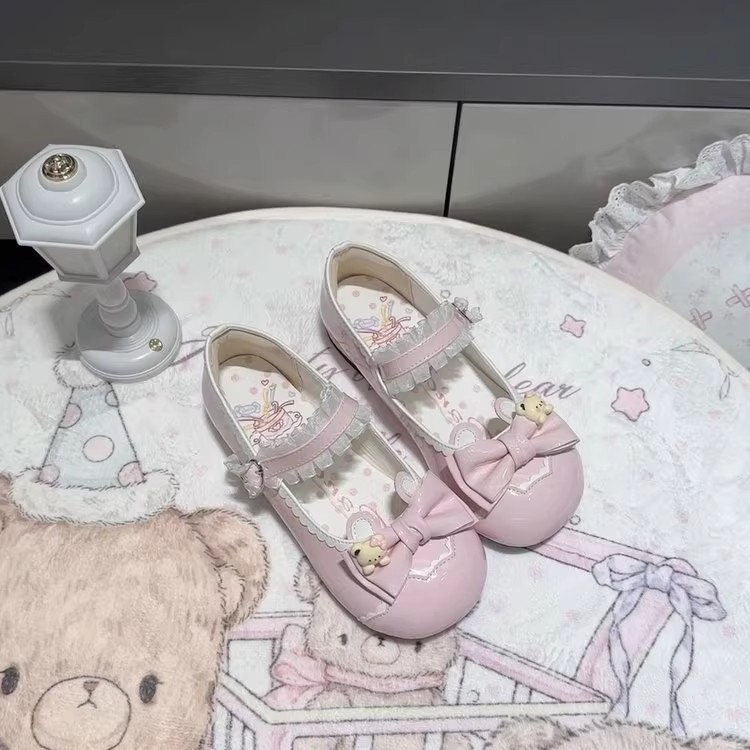 2025 새로운 둥근 발가락 귀여운 로리타 달콤한 작은 가죽 신발 나비 하트 귀여운 활