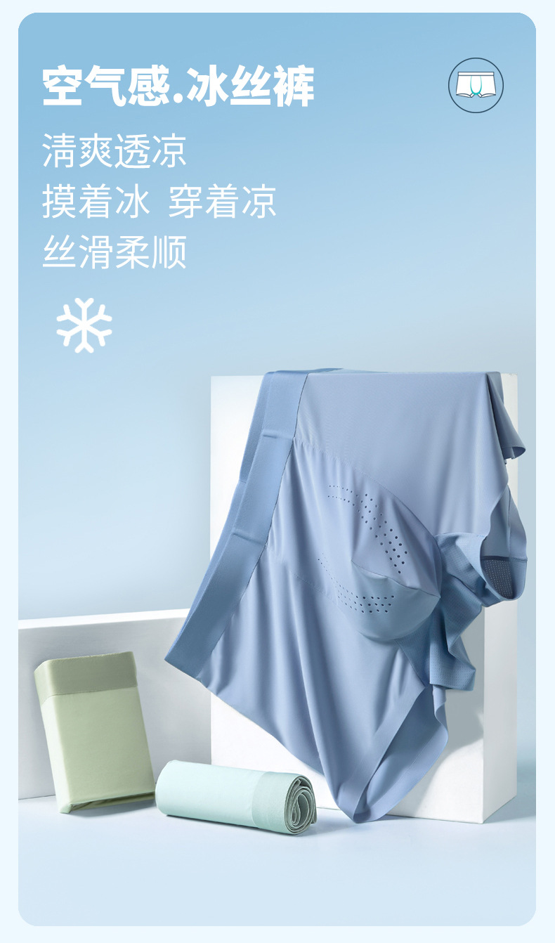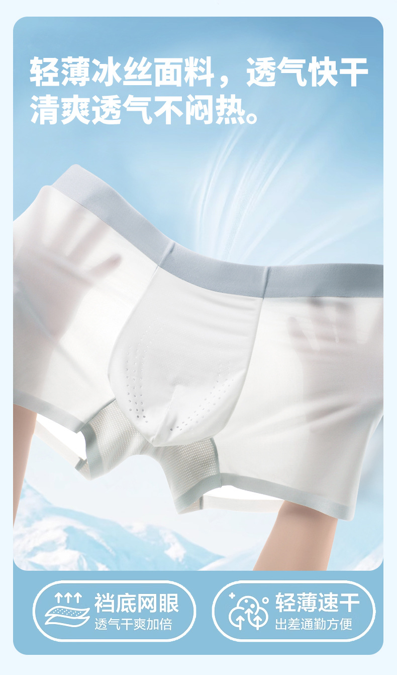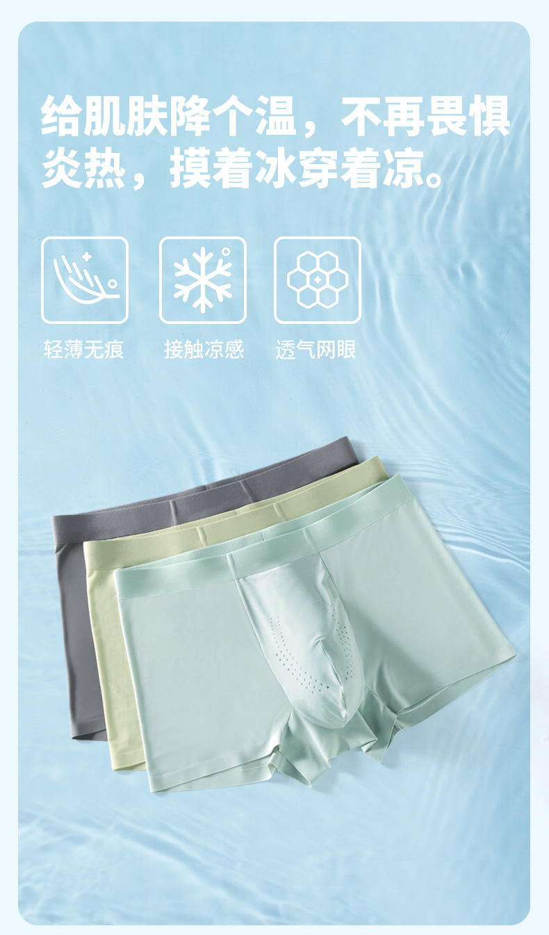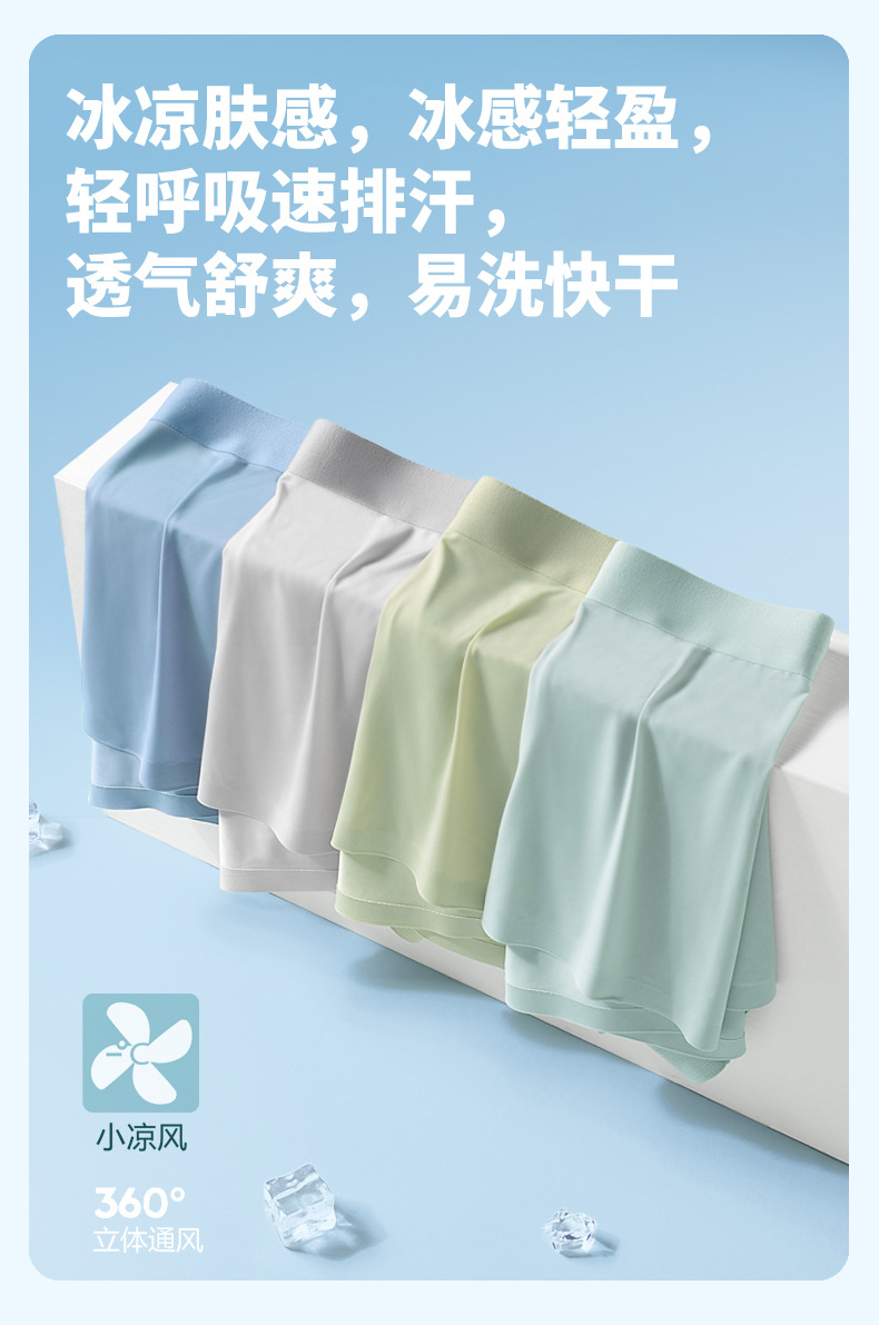 새로운 얼음 실크 남성 속옷 통기성 원활한 중간 허리 7A 항균 복서 여름 습기 방지 얇은 복서 반바지스토어 가기