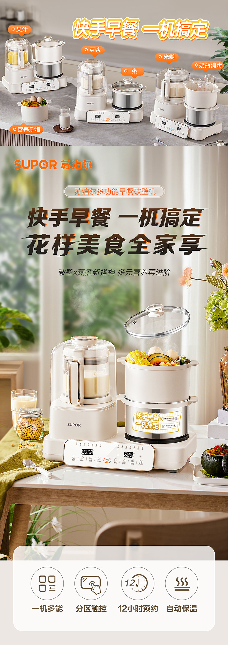 Supor 벽 파괴 기계 두유 기계 조리 기계 아침 식사 기계 자동 찜 다기능 올인원 기계 SP630S스토어 가기