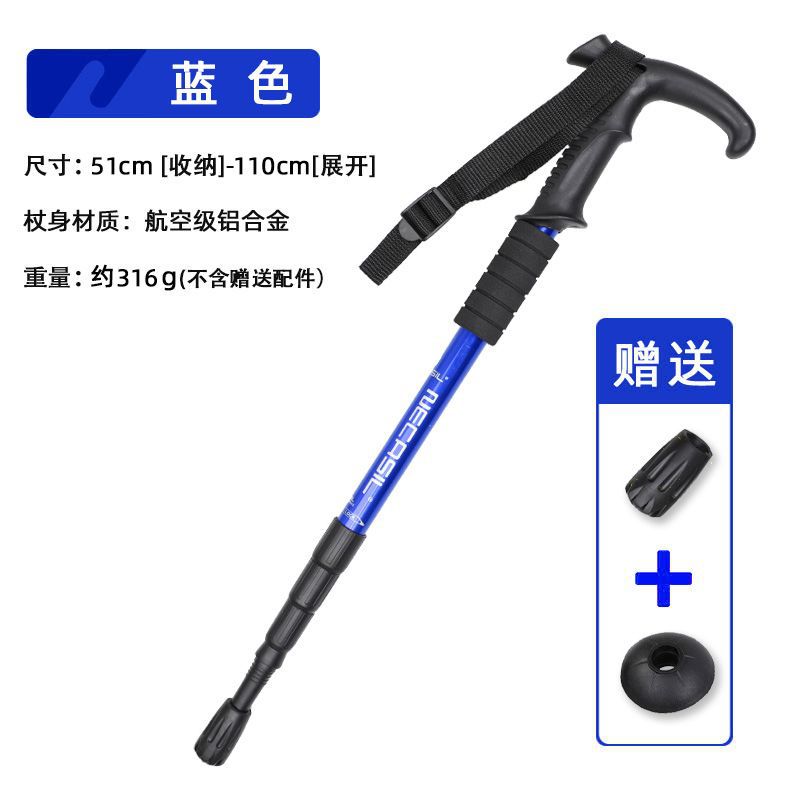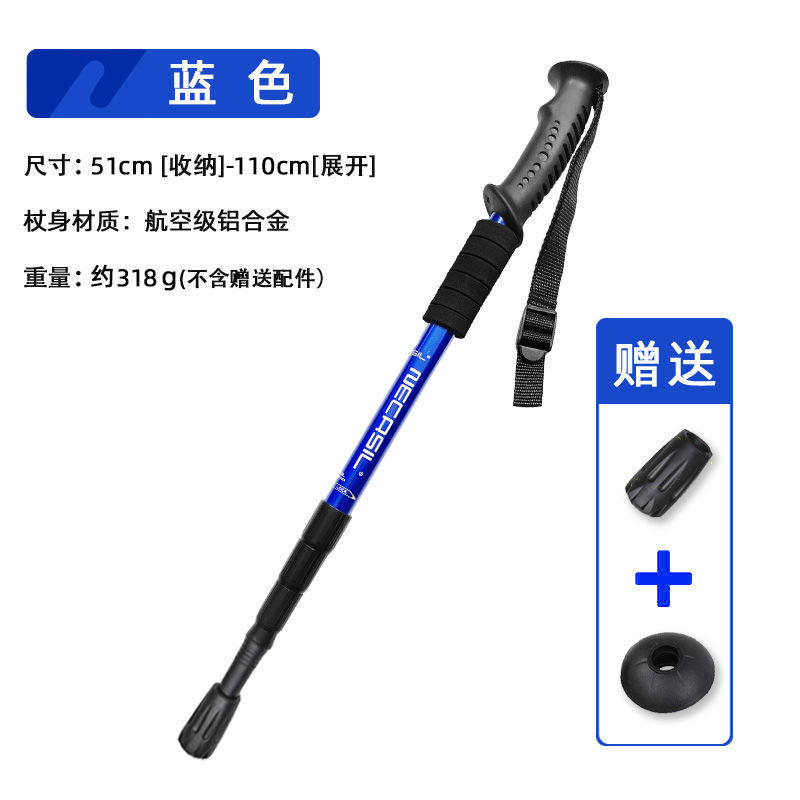 • 【5단 접이식】 등산 스틱 - 블루 ♜⚑