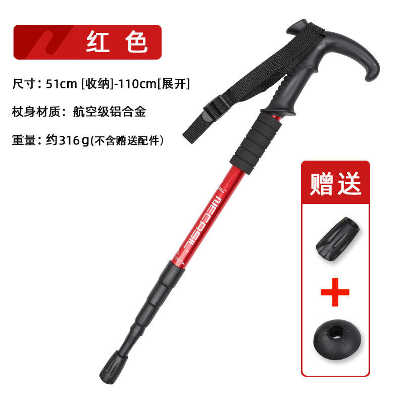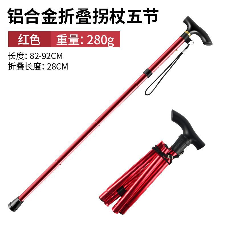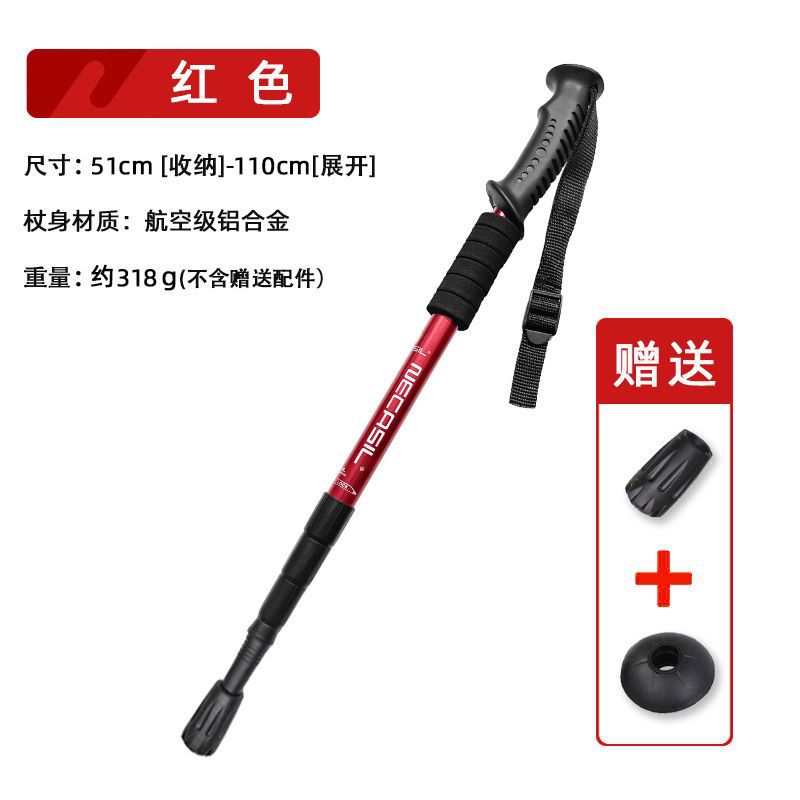 • 【5단 접이식】 등산 스틱 - 레드 ♜⚑