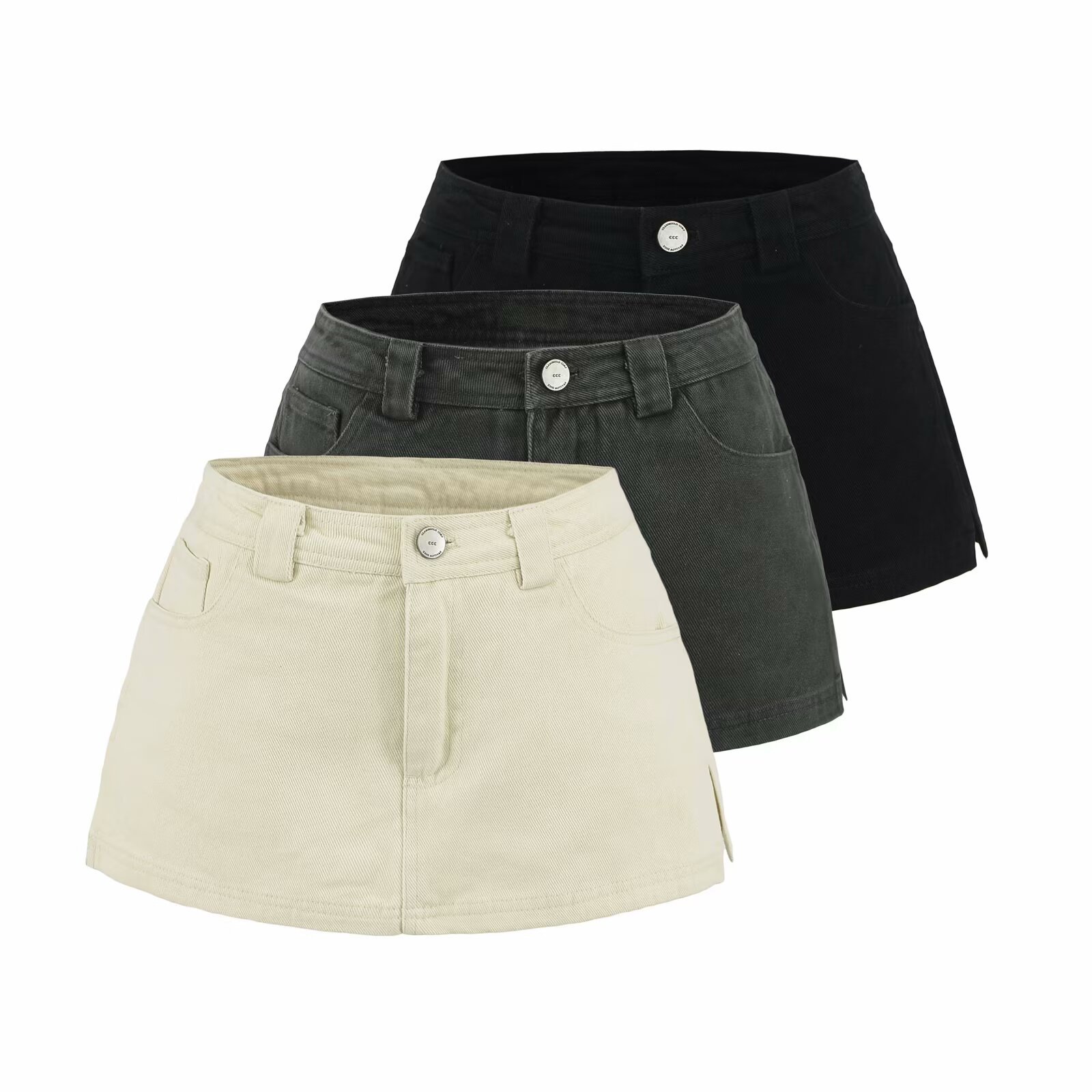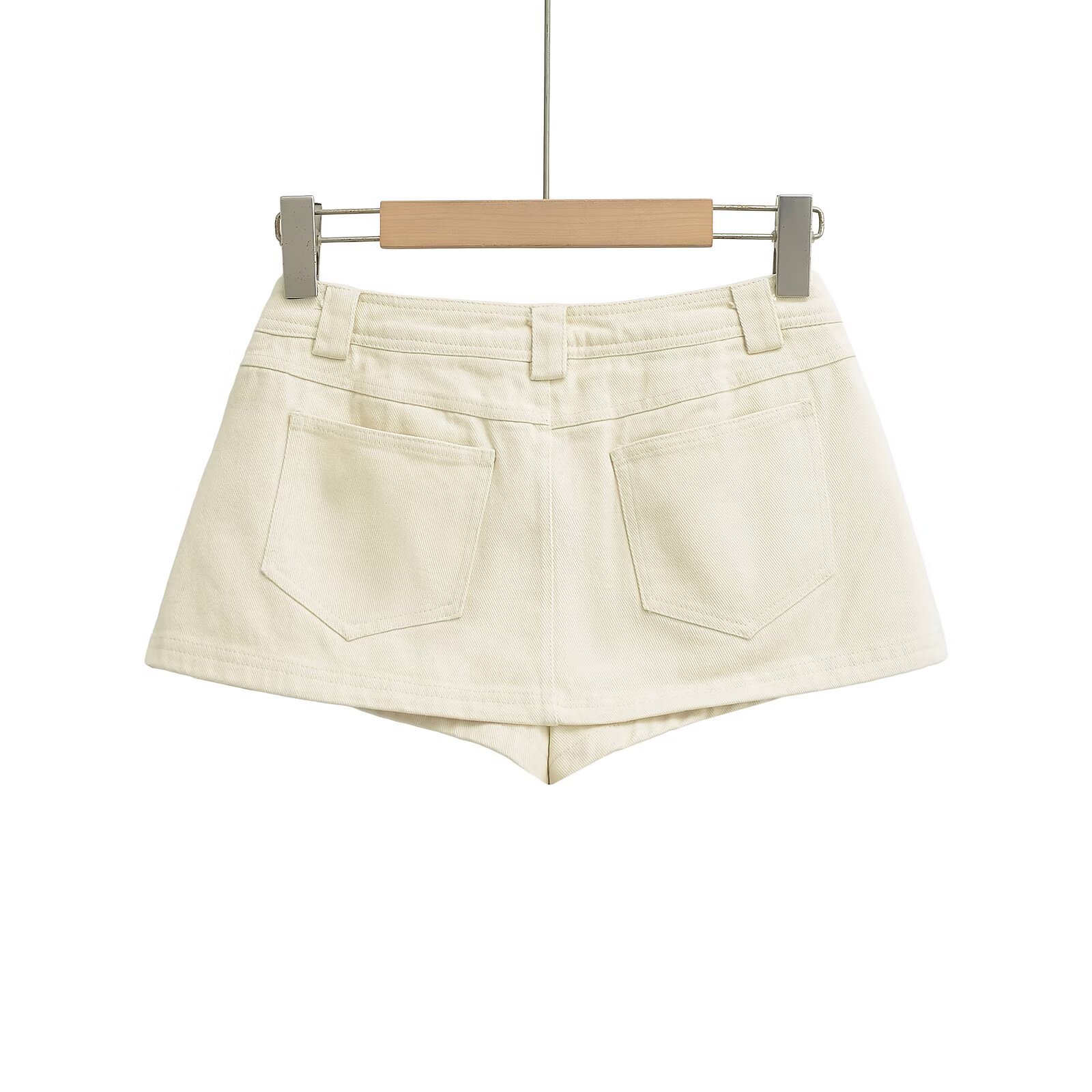스트리트 트렌디 패션 다재다능한 가짜 투피스 청바지 스커트 여성 여름 신작 미국식 로우 웨이스트 슬릿 힙 커버 스커트스토어 가기