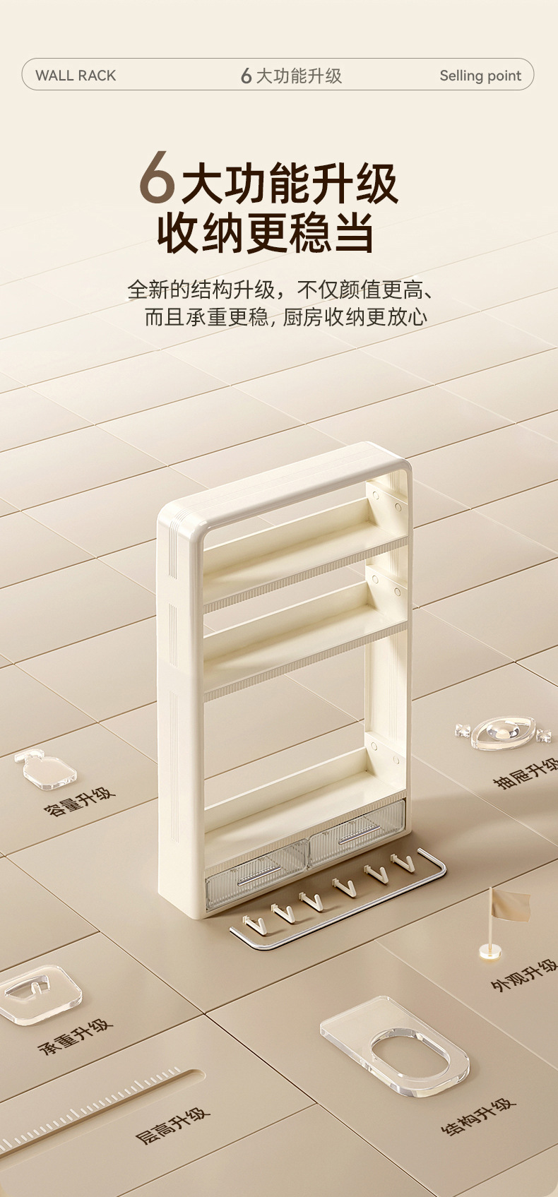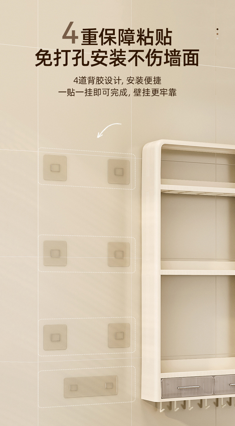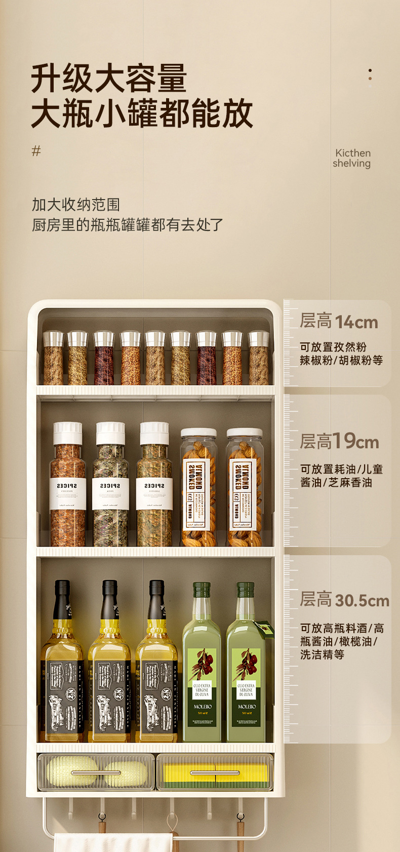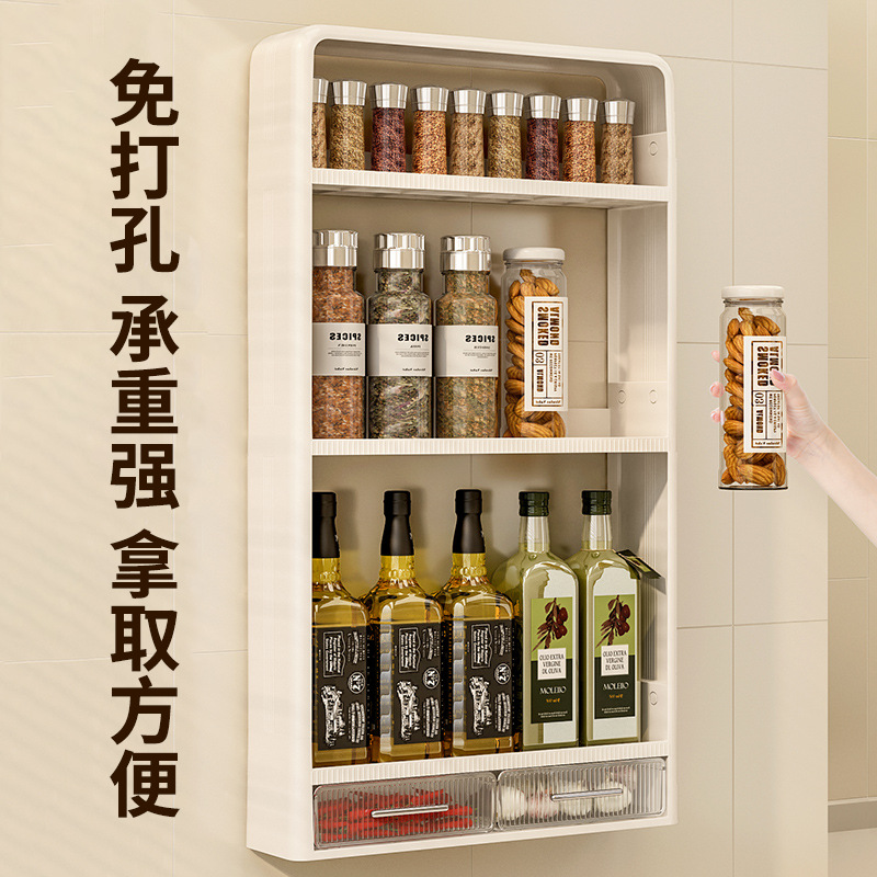 주방 벽걸이형 다기능 조미료 상자 보관함 벽에 구멍을 뚫을 필요 없이 벽걸이형 조미료 병 보관 캐비닛