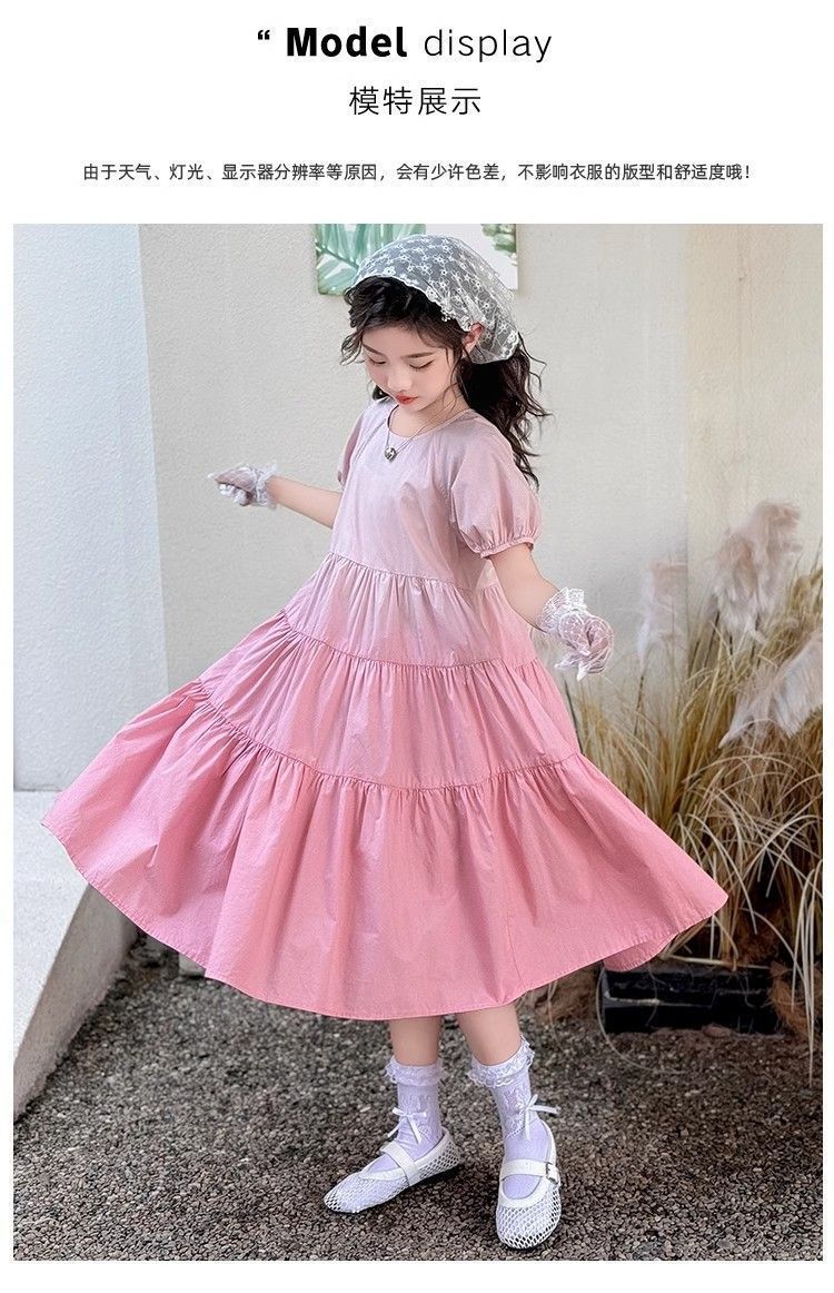 여자 여름 컬러 블록 그라데이션 드레스 2025 새로운 중대형 어린이 한국 스타일 롱 스커트 퍼프 슬리브 공주 드레스 Dropshipping스토어 가기