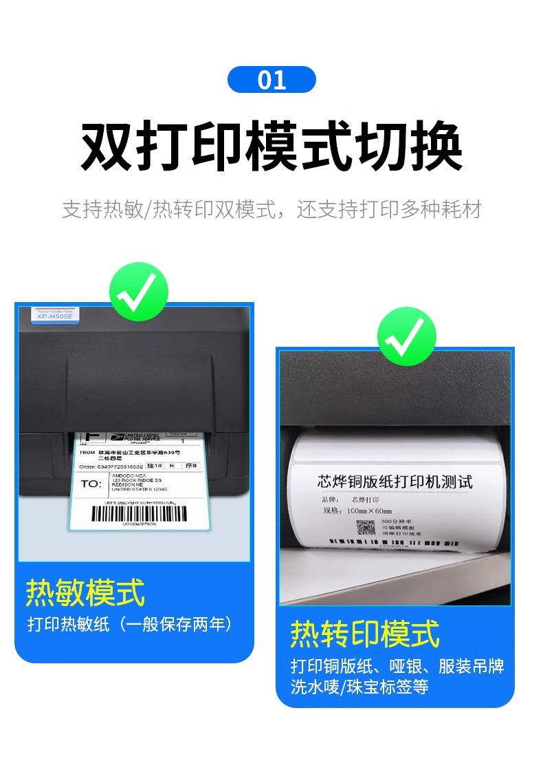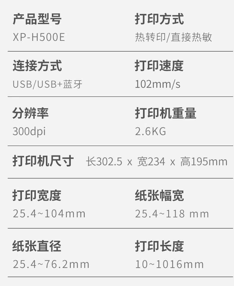 Xprinter Xinye XP-H500B/E 바코드 프린터 Bluetooth 자체 접착 라벨 스티커 라벨 프린터
