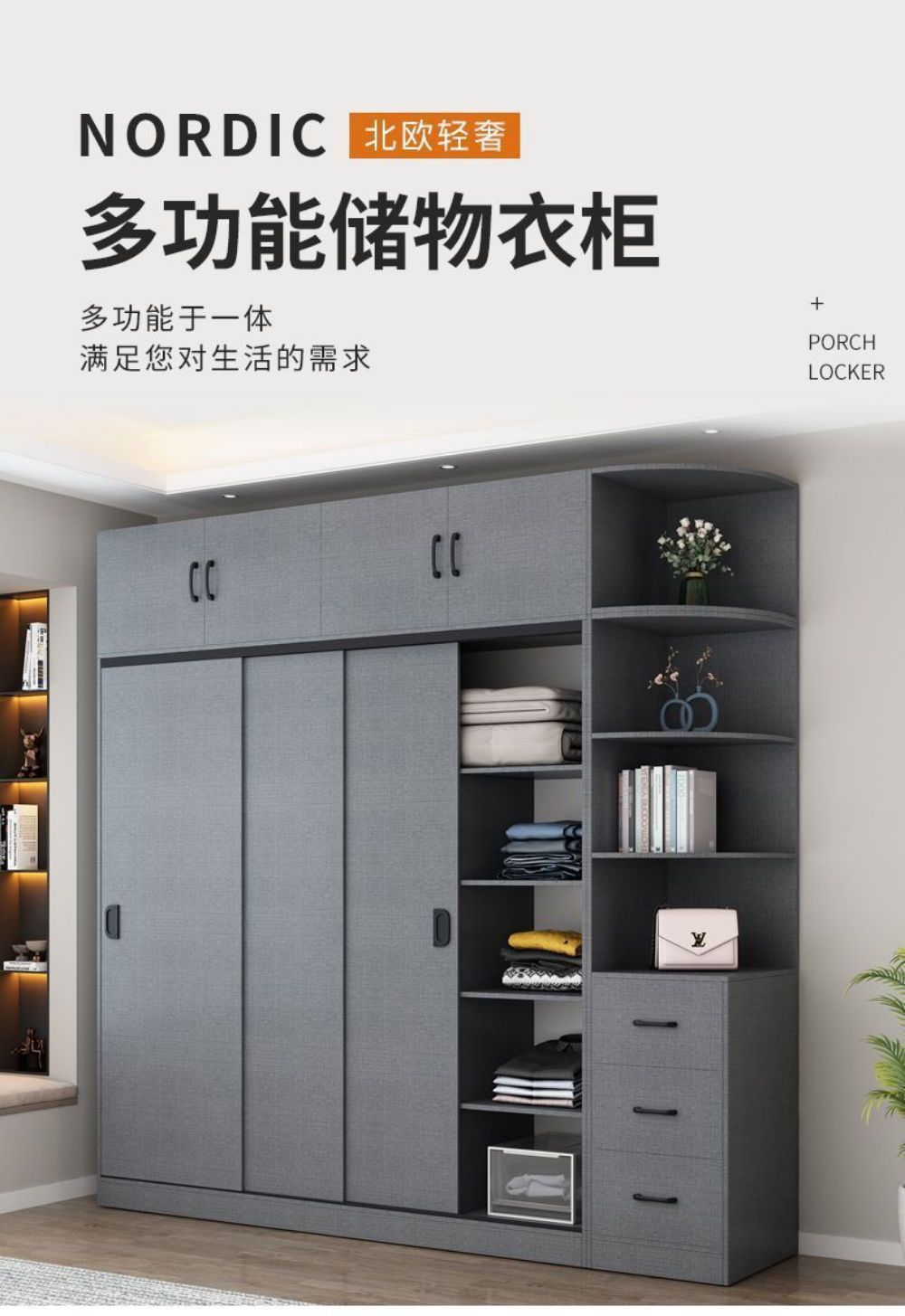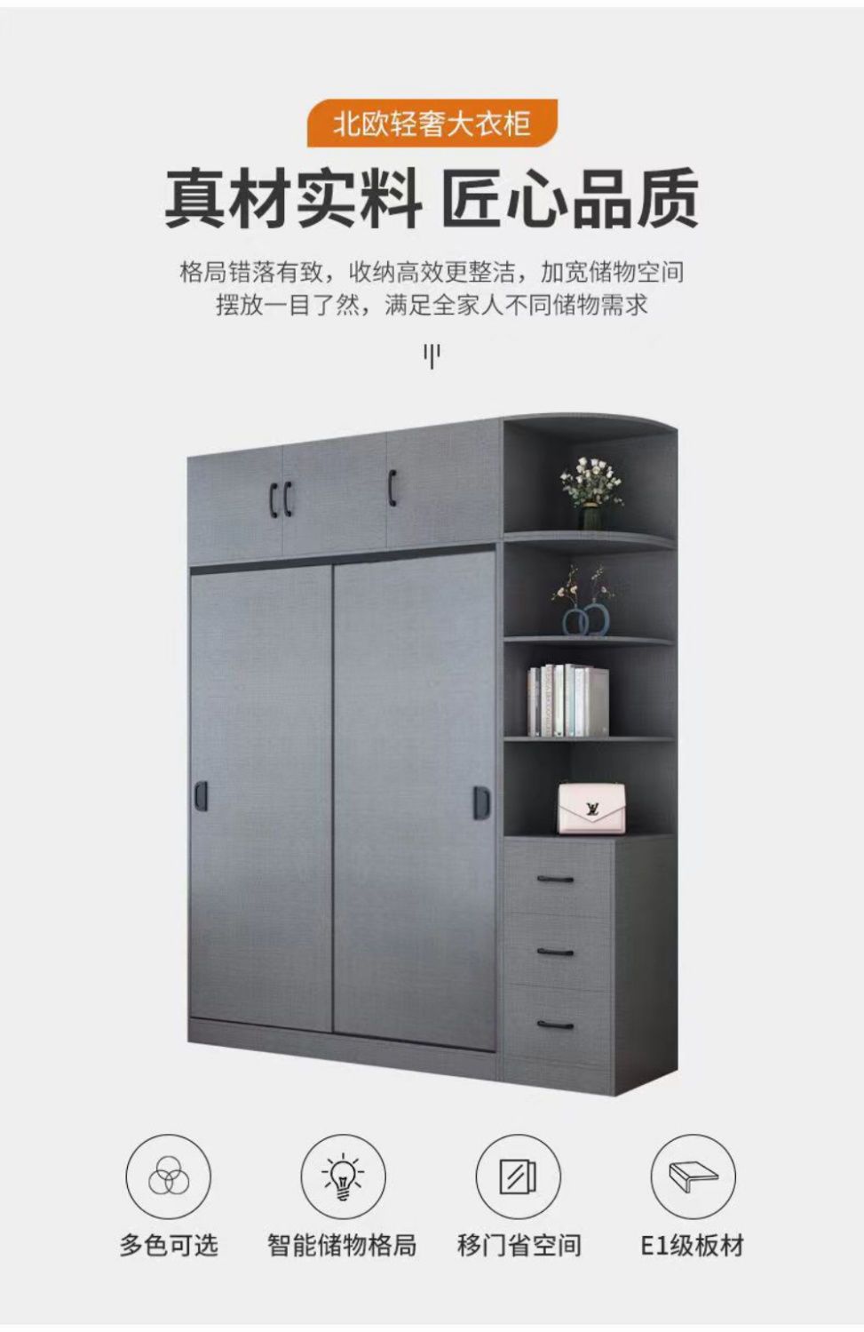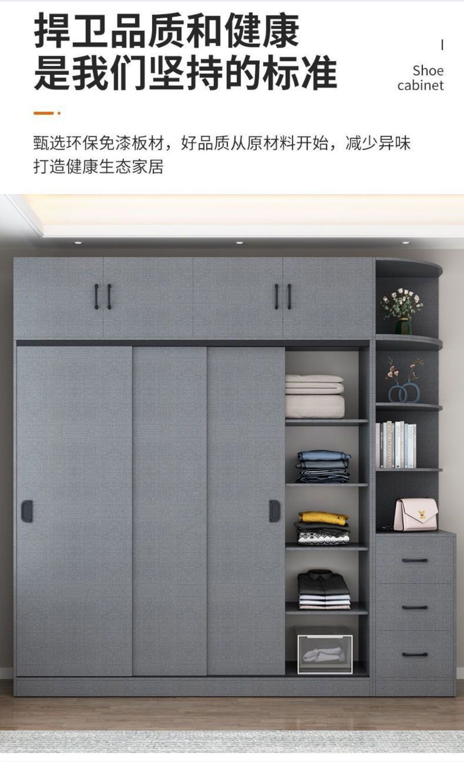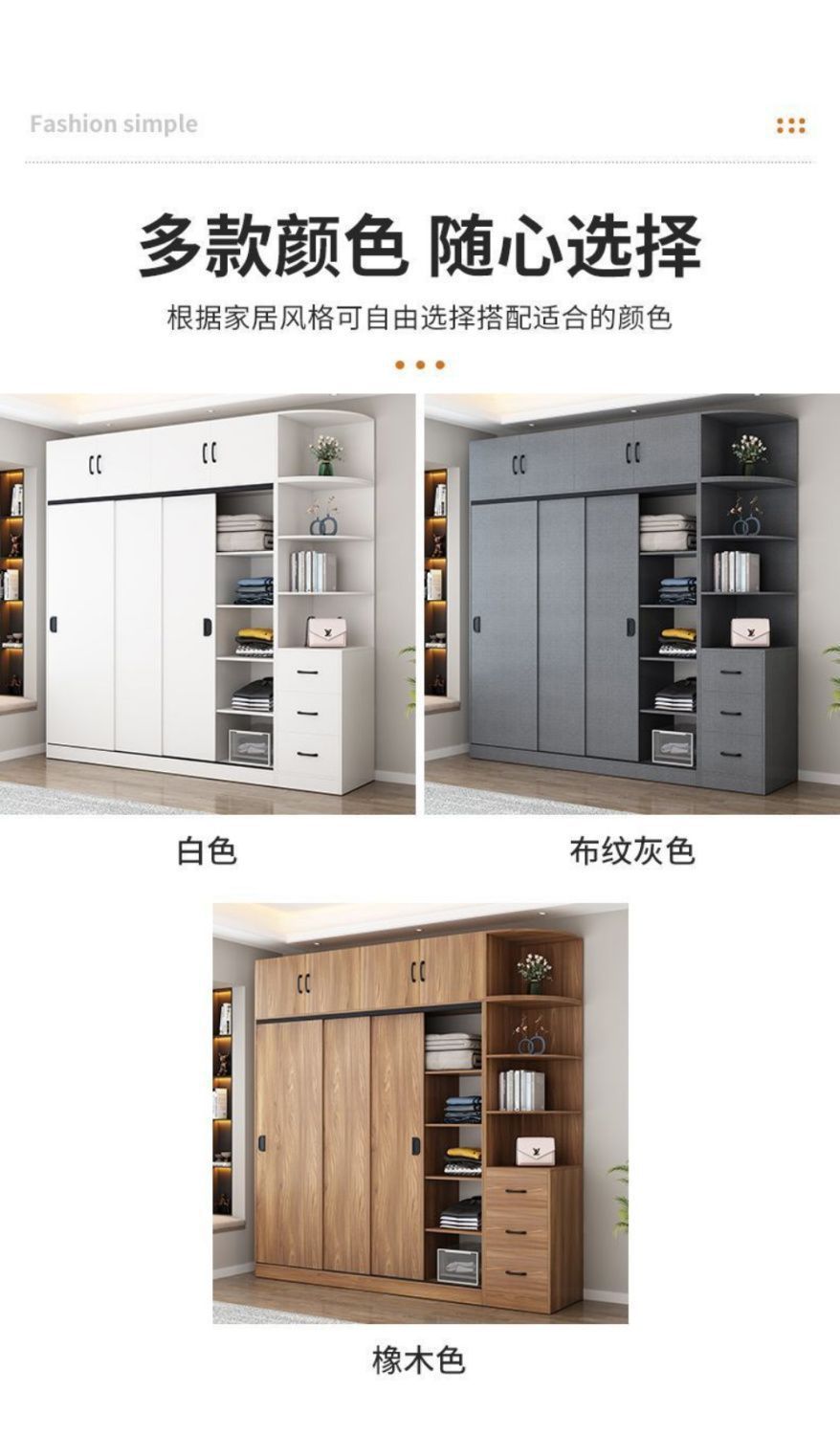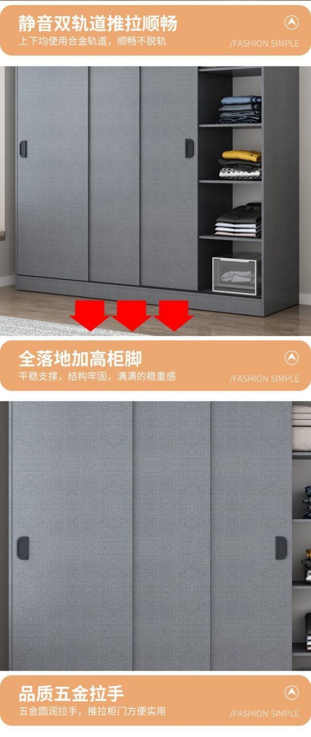 옷장 홈 침실 간단한 슬라이딩 도어 옷장 보관 캐비닛 임대 주택 경제적 인 싱글 옷장 보관 캐비닛