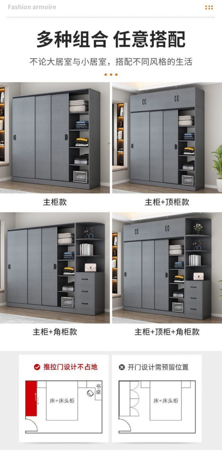 옷장 홈 침실 간단한 슬라이딩 도어 옷장 보관 캐비닛 임대 주택 경제적 인 싱글 옷장 보관 캐비닛스토어 가기