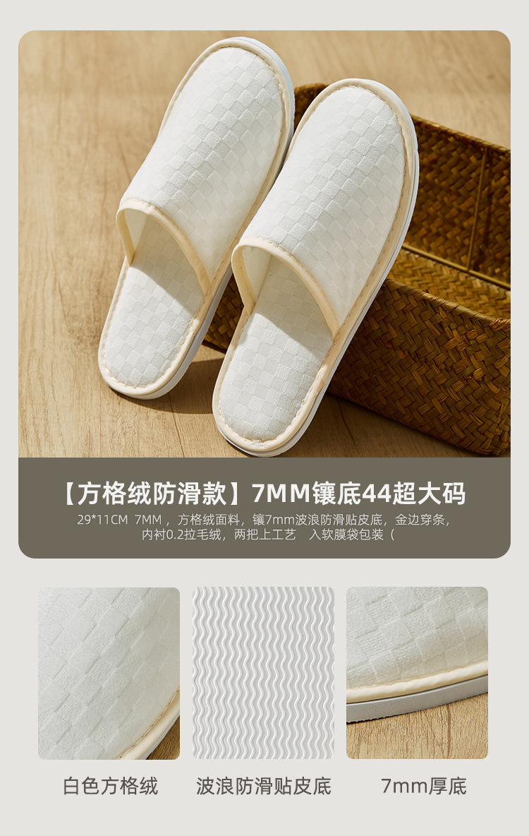 • 7MM 베이지 체크 무늬 미끄럼 방지 바닥 슬리퍼