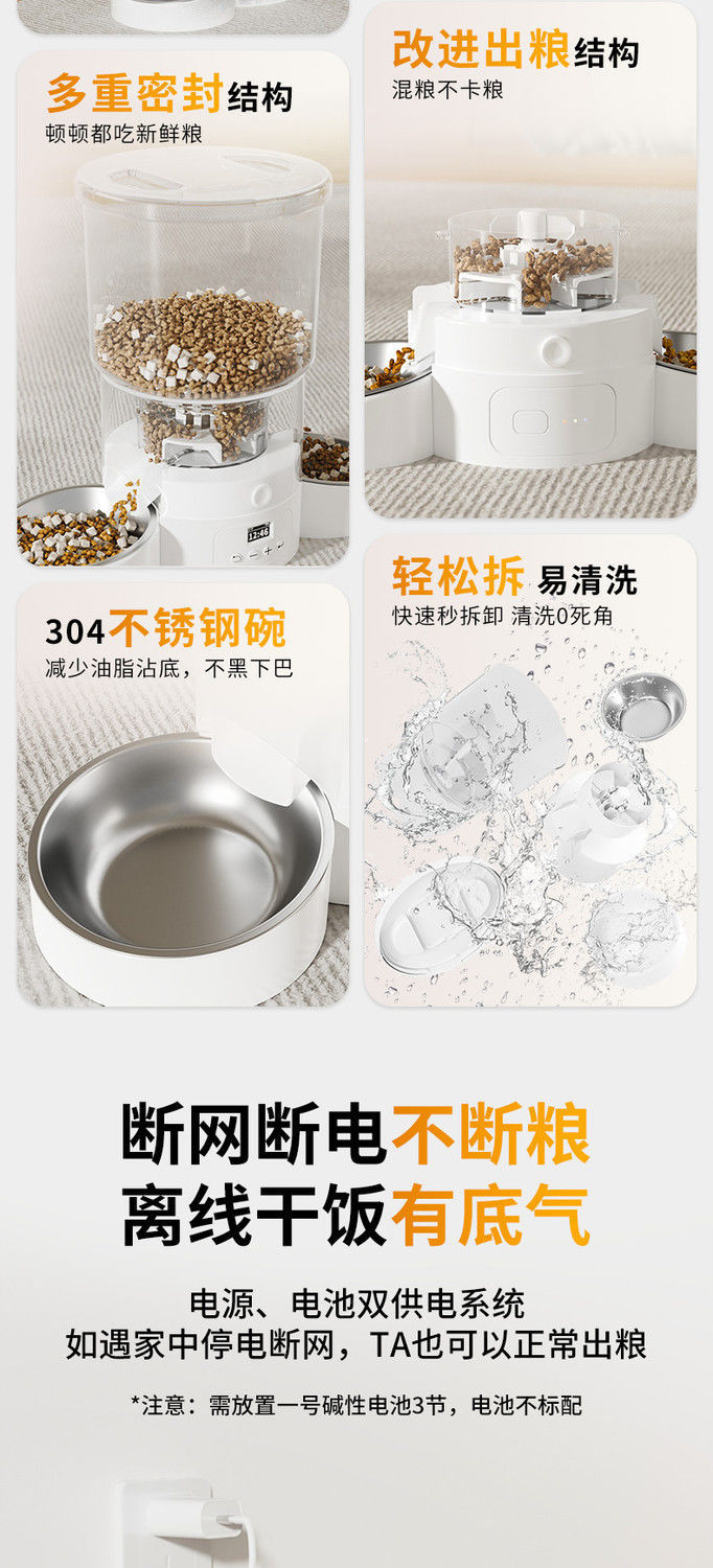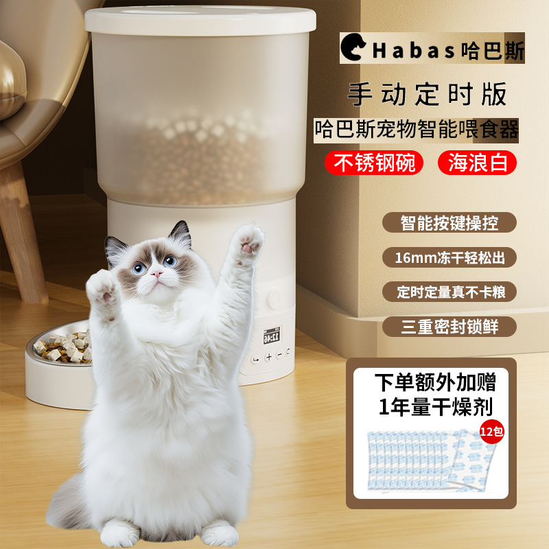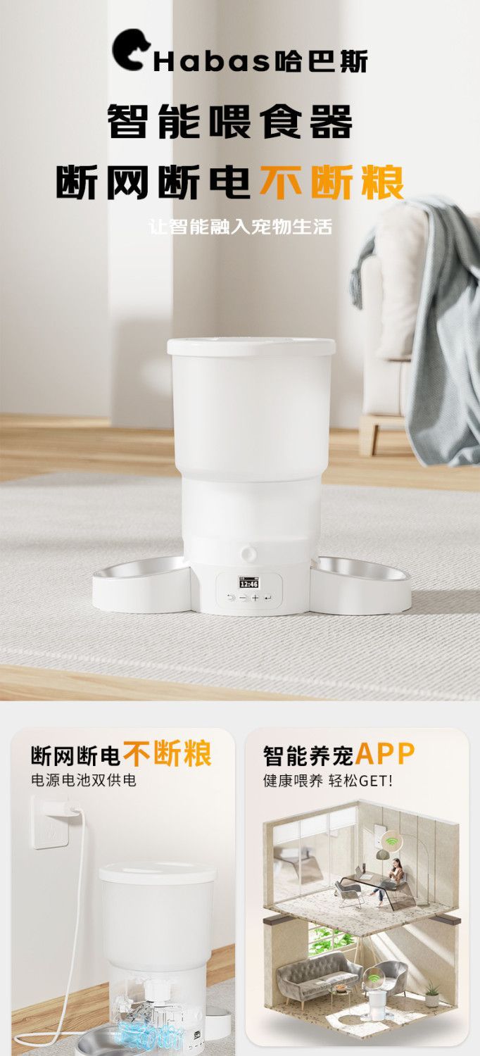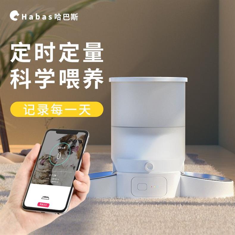 Habas Timing 스마트 자동 급식기 고양이 및 애완동물을 위한 대용량 고양이 및 개 사료, 방습 및 원격, 끈적임 없음스토어 가기