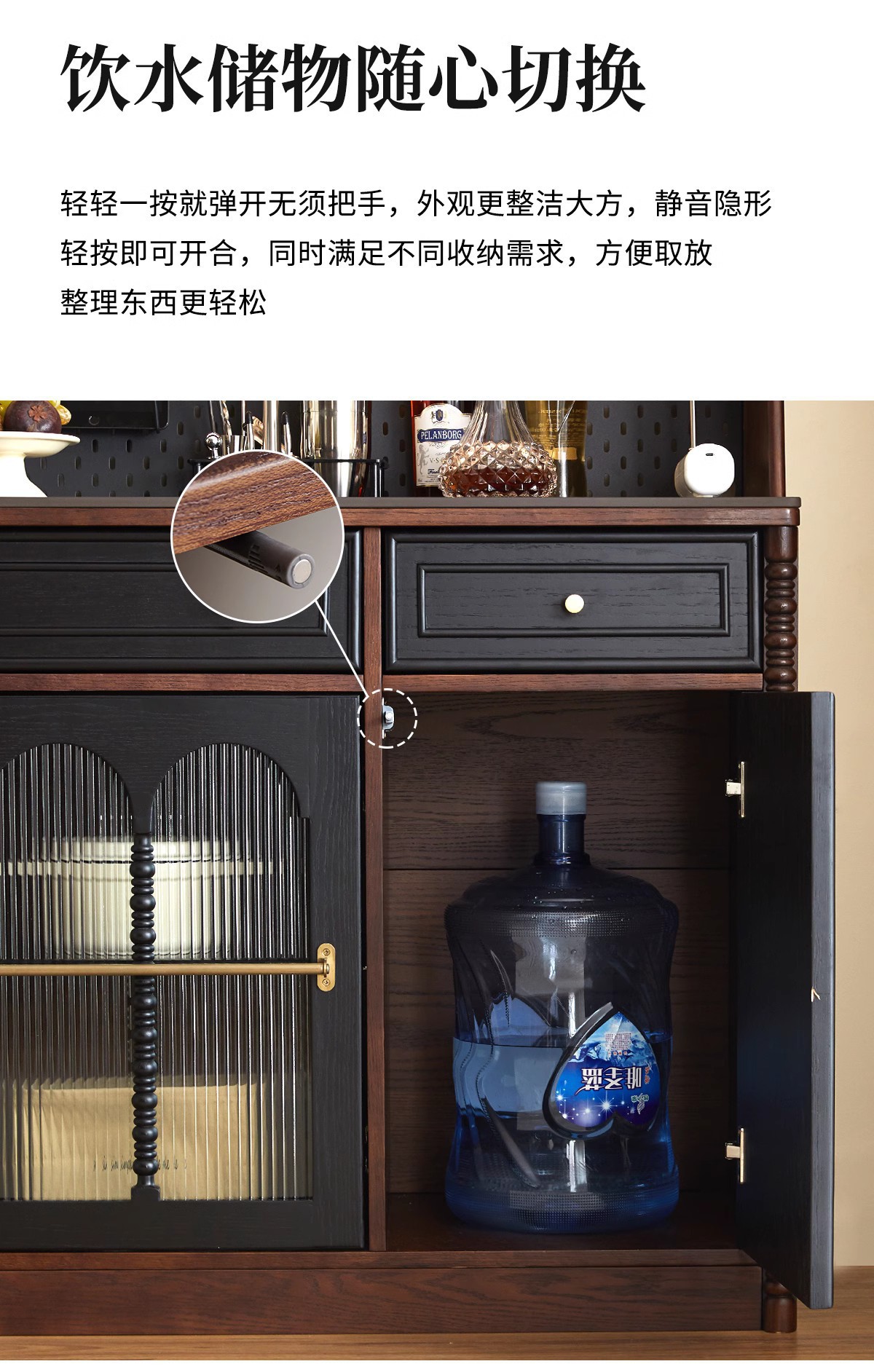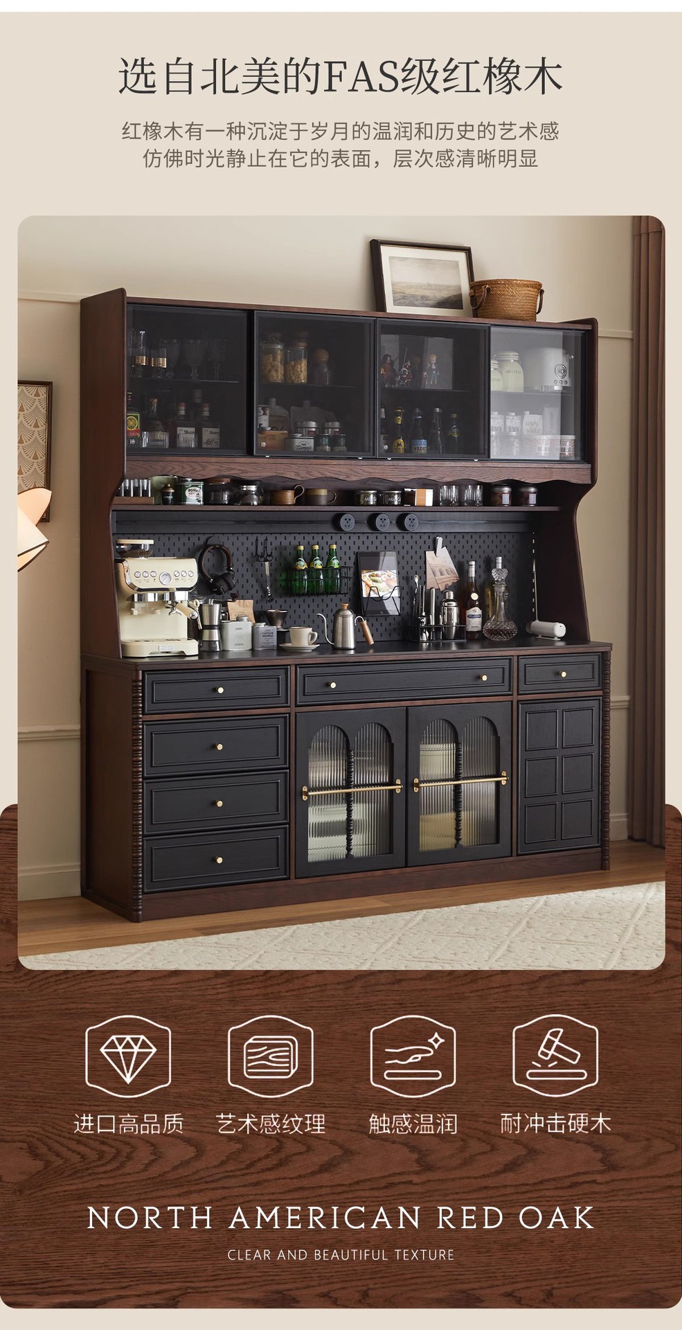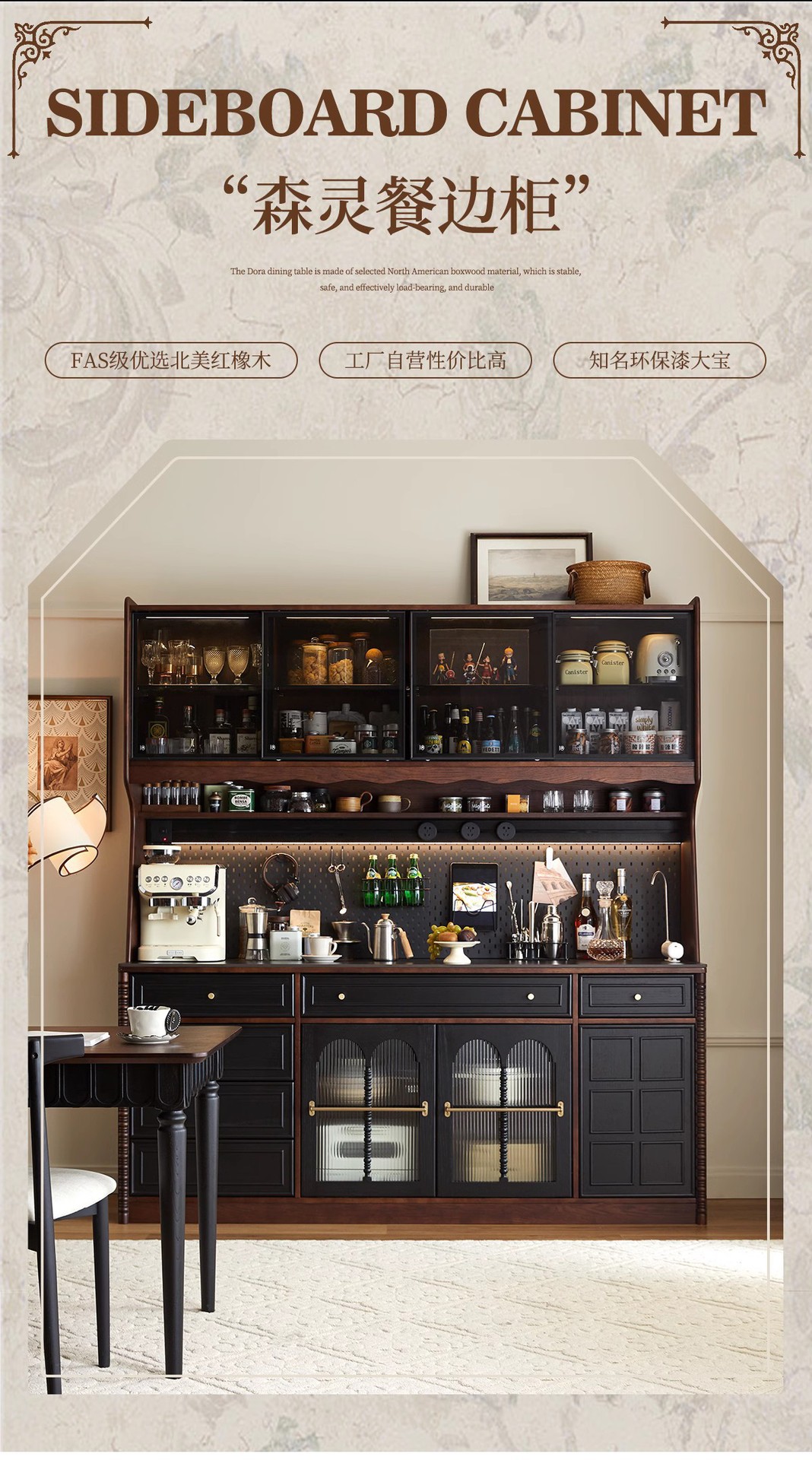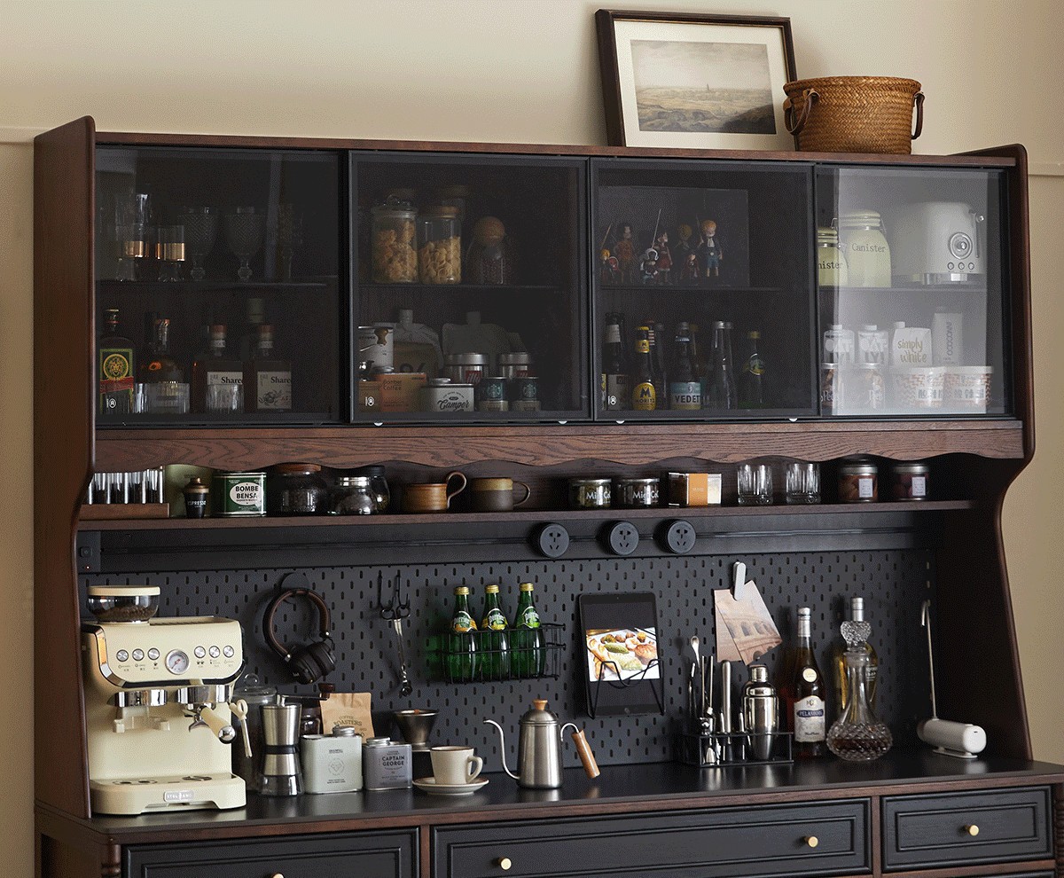 프렌치 원목 찬장 블랙 레트로 다이닝 룸 캐비닛 벽 일체형 하이 캐비닛 거실 보관 캐비닛 커피 캐비닛스토어 가기