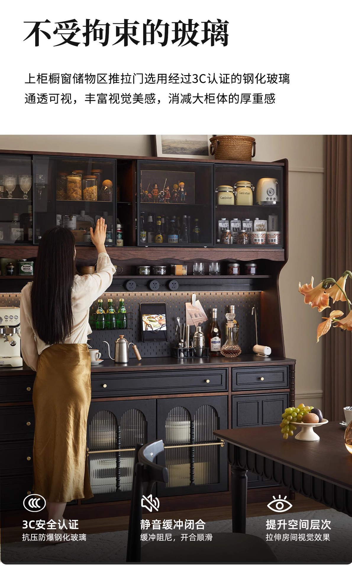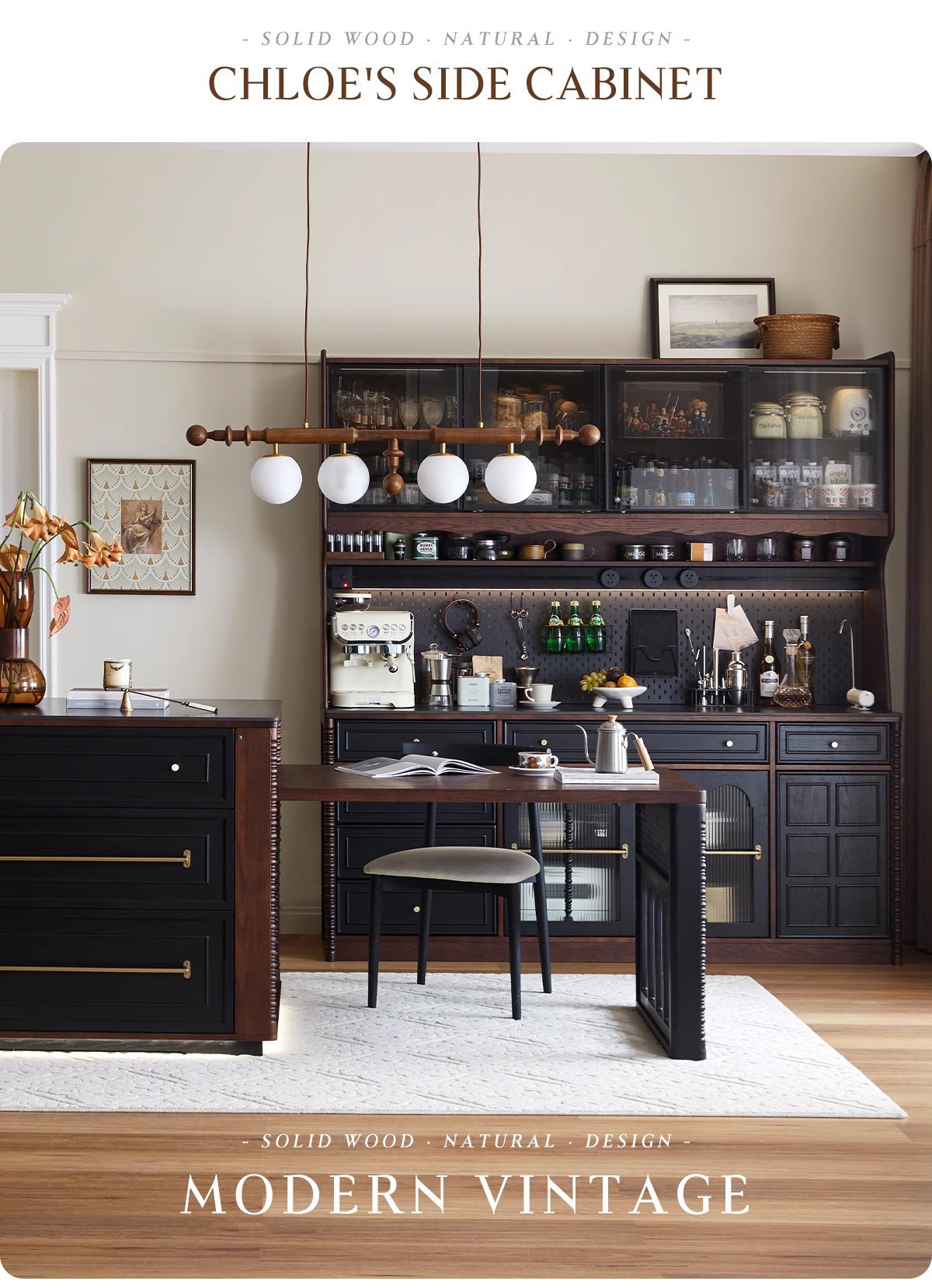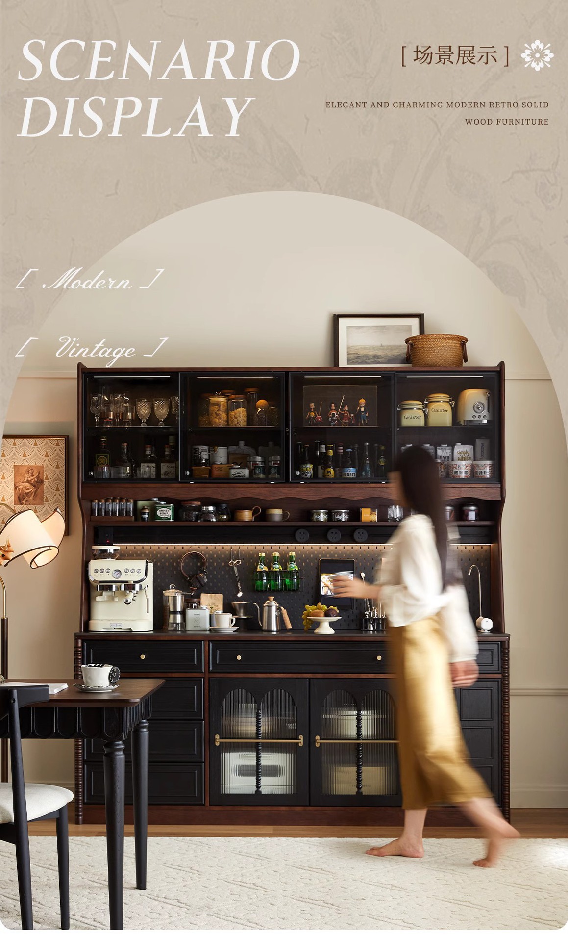 프렌치 원목 찬장 블랙 레트로 다이닝 룸 캐비닛 벽 일체형 하이 캐비닛 거실 보관 캐비닛 커피 캐비닛스토어 가기