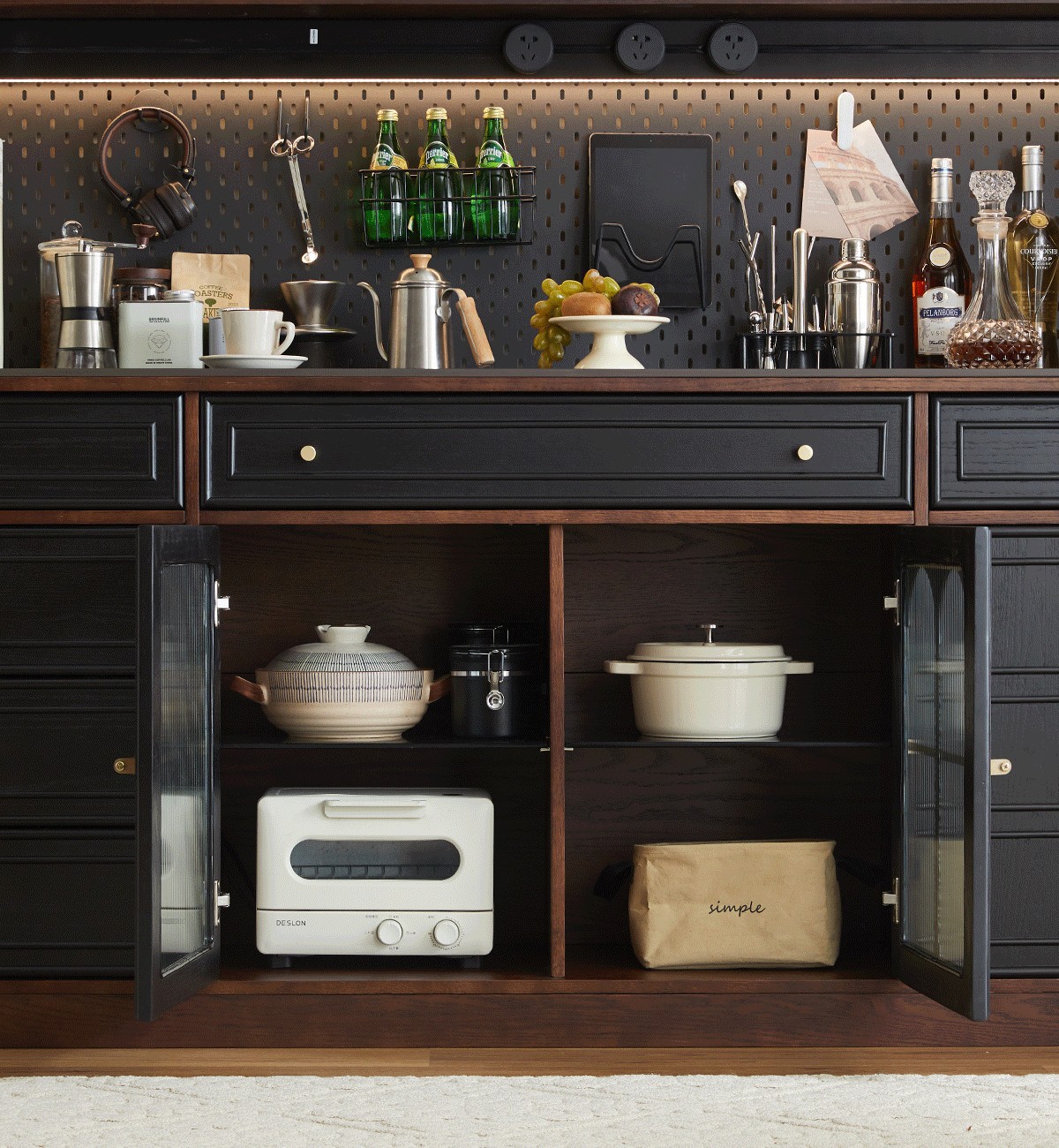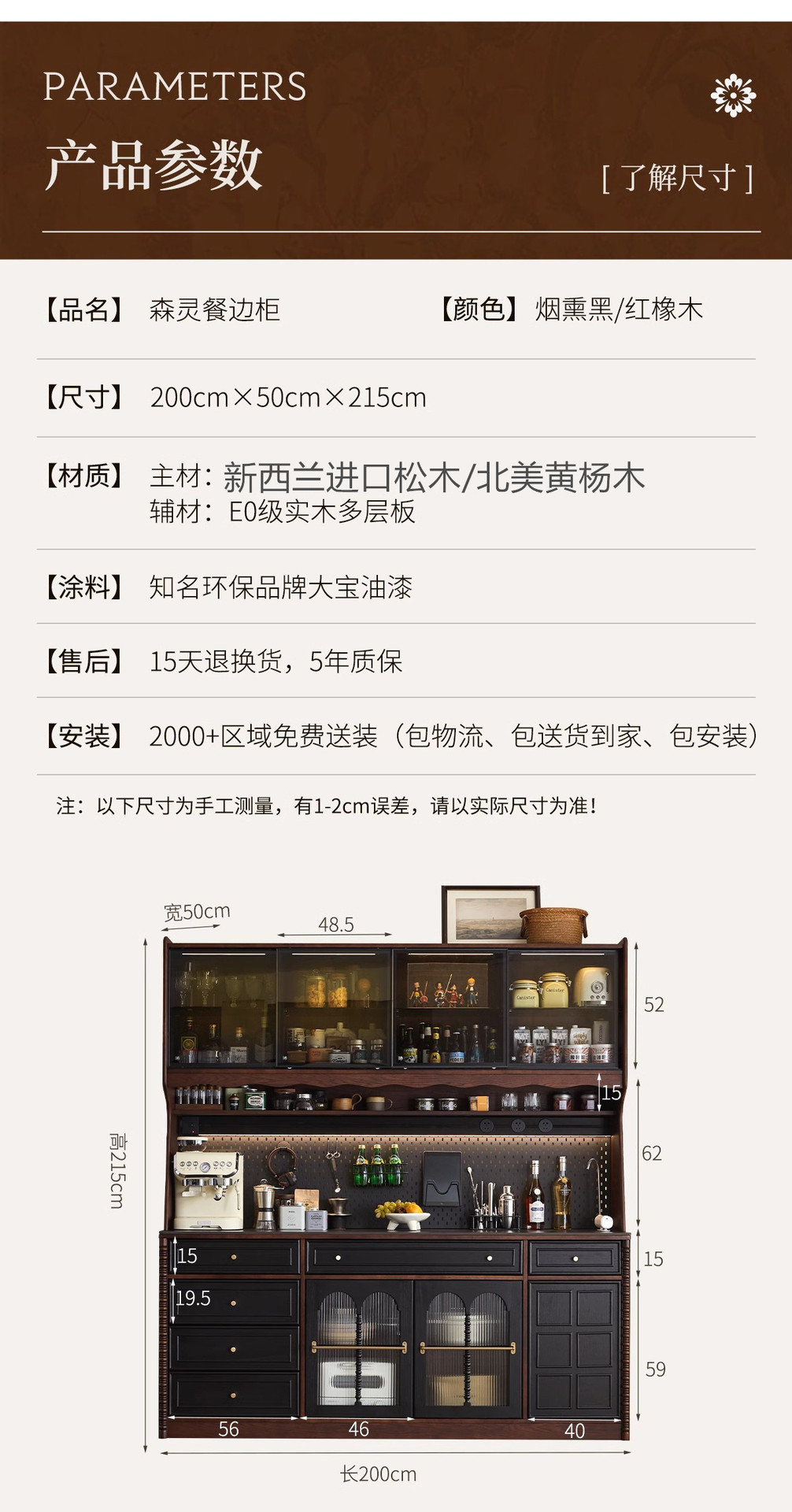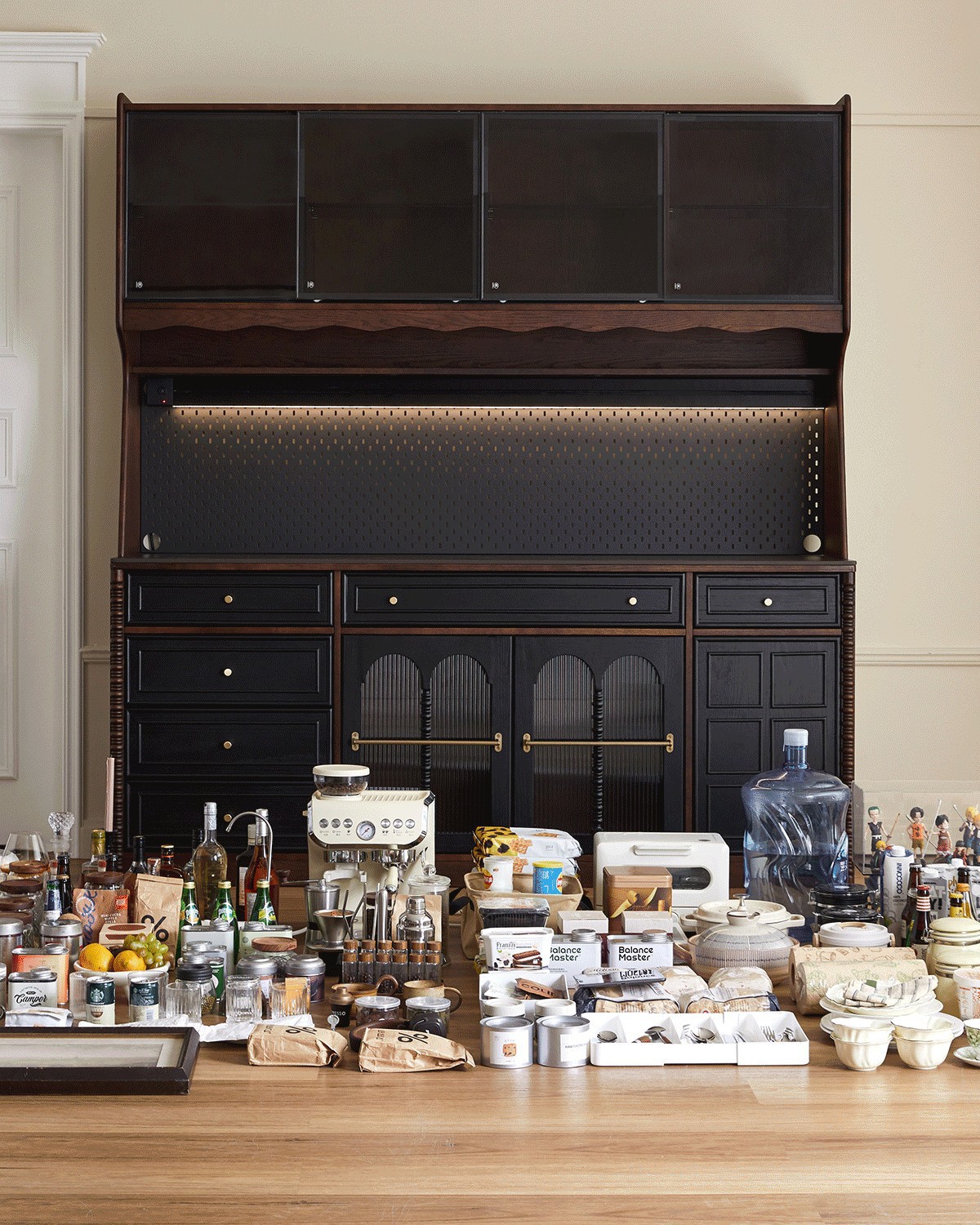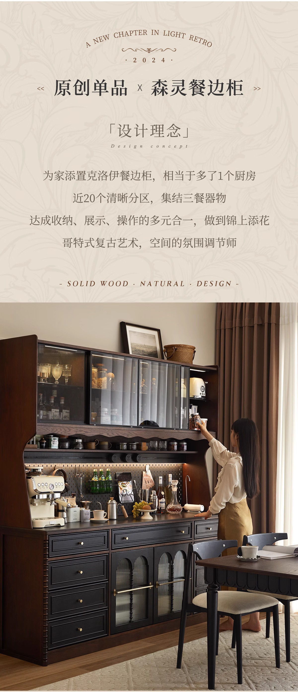 프렌치 원목 찬장 블랙 레트로 다이닝 룸 캐비닛 벽 일체형 하이 캐비닛 거실 보관 캐비닛 커피 캐비닛스토어 가기
