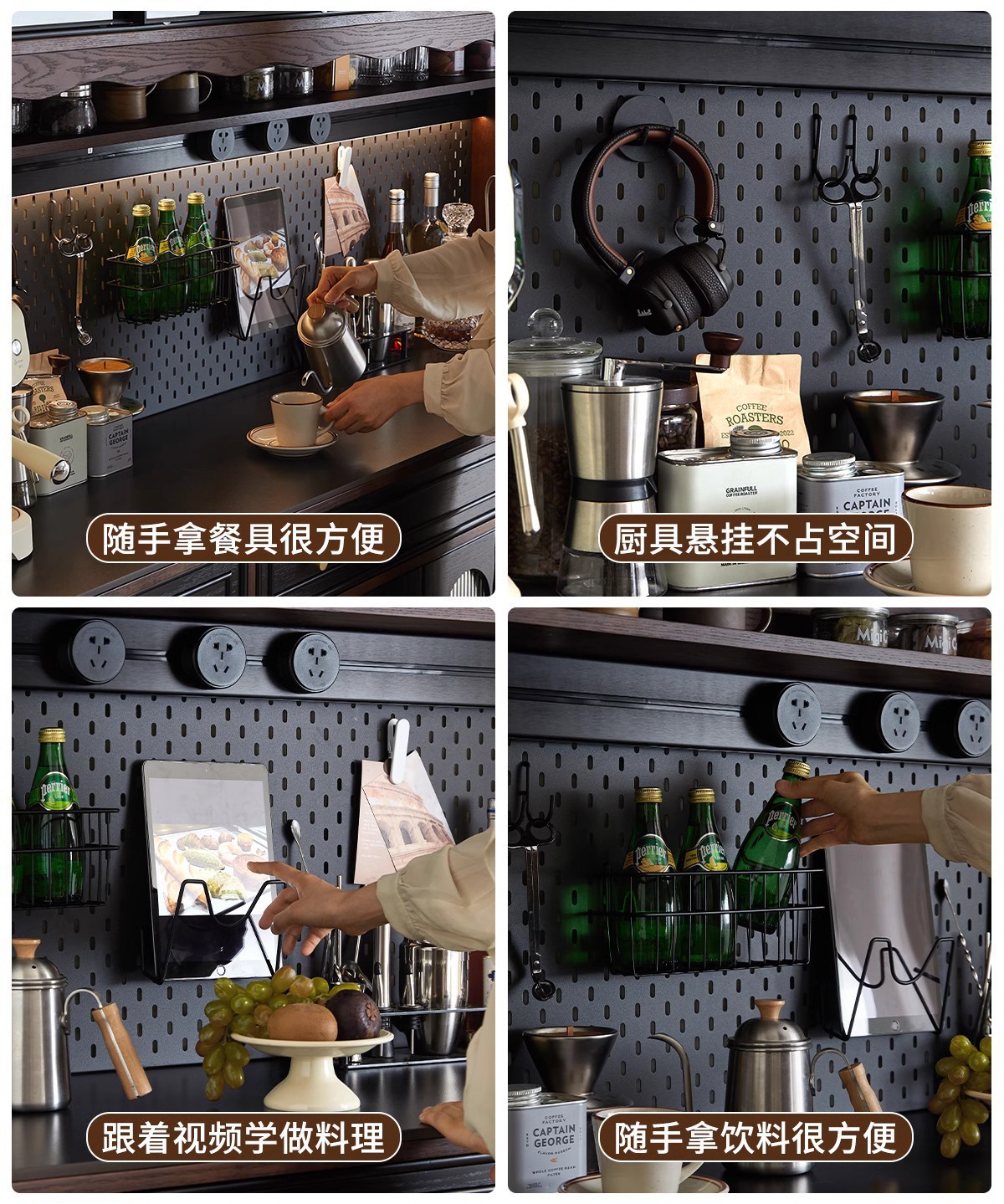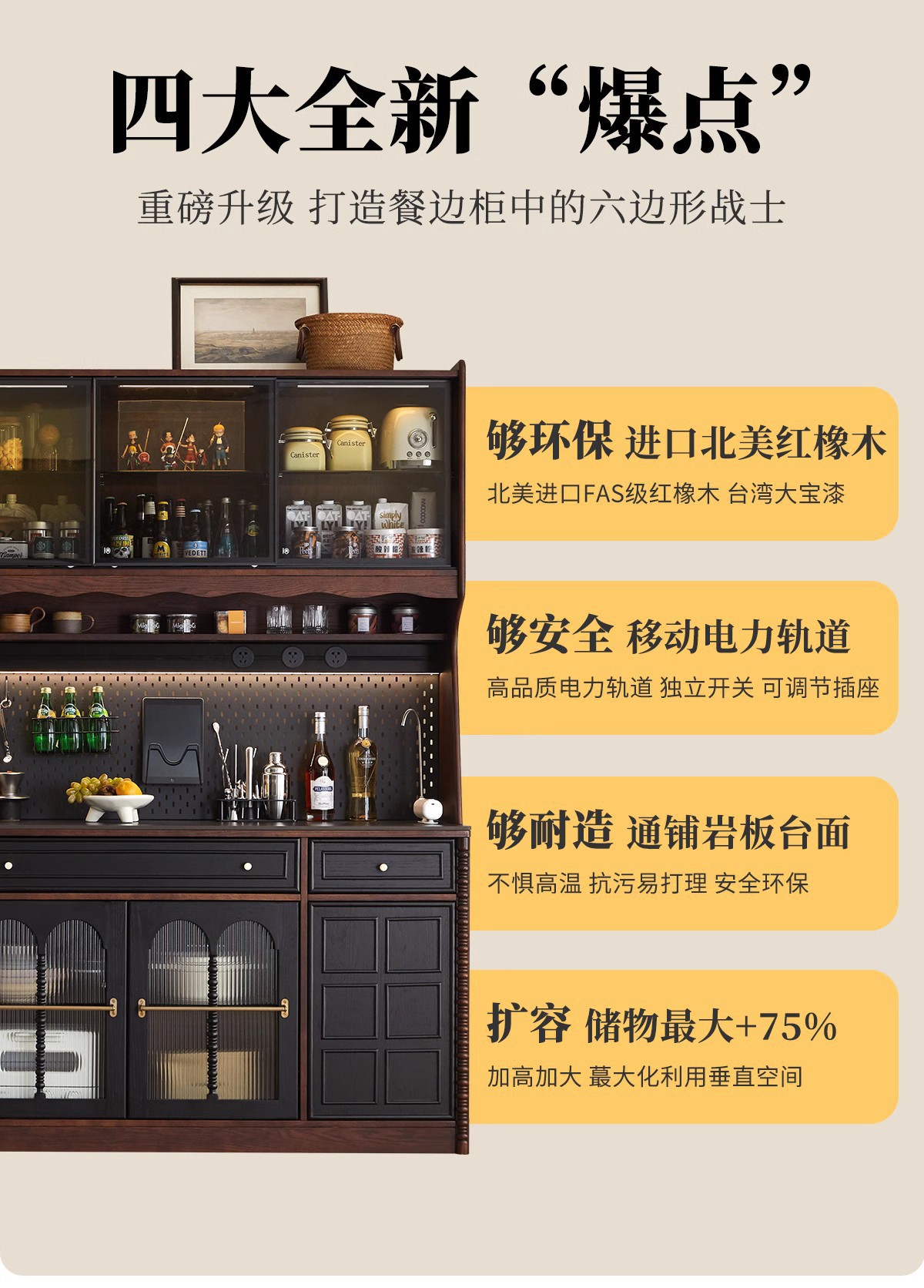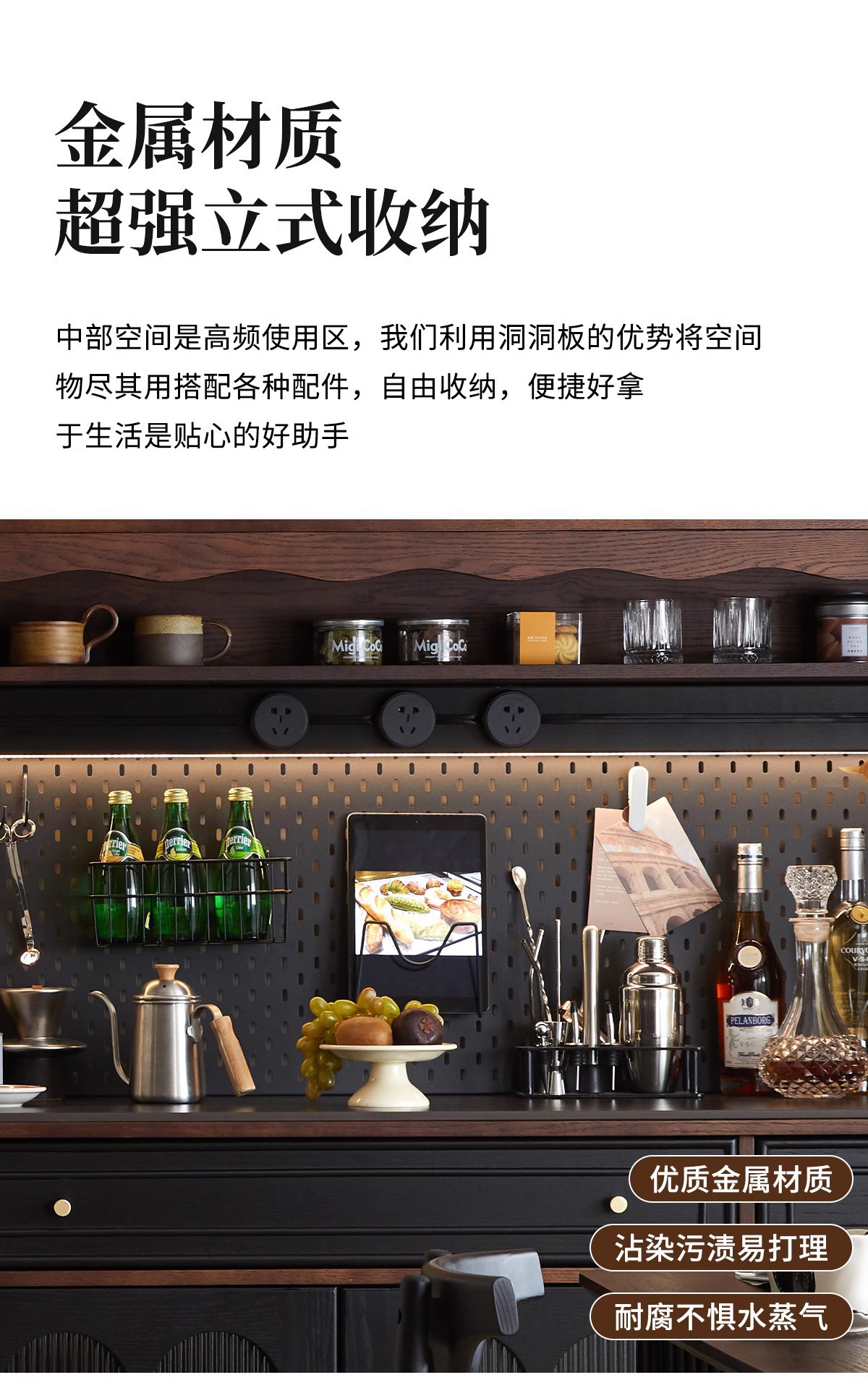 프렌치 원목 찬장 블랙 레트로 다이닝 룸 캐비닛 벽 일체형 하이 캐비닛 거실 보관 캐비닛 커피 캐비닛