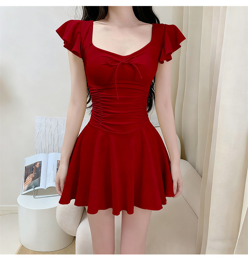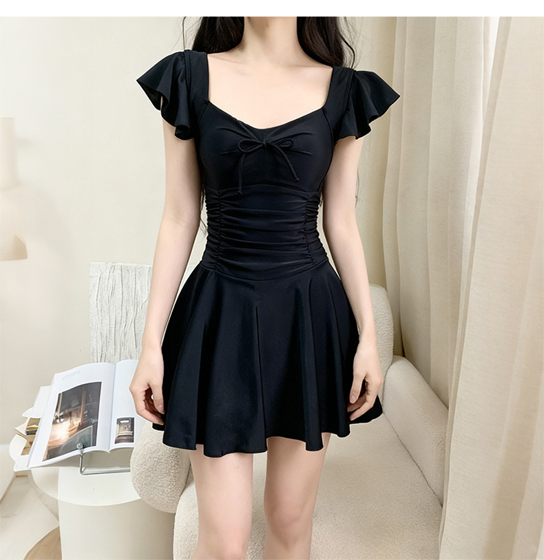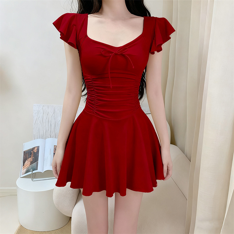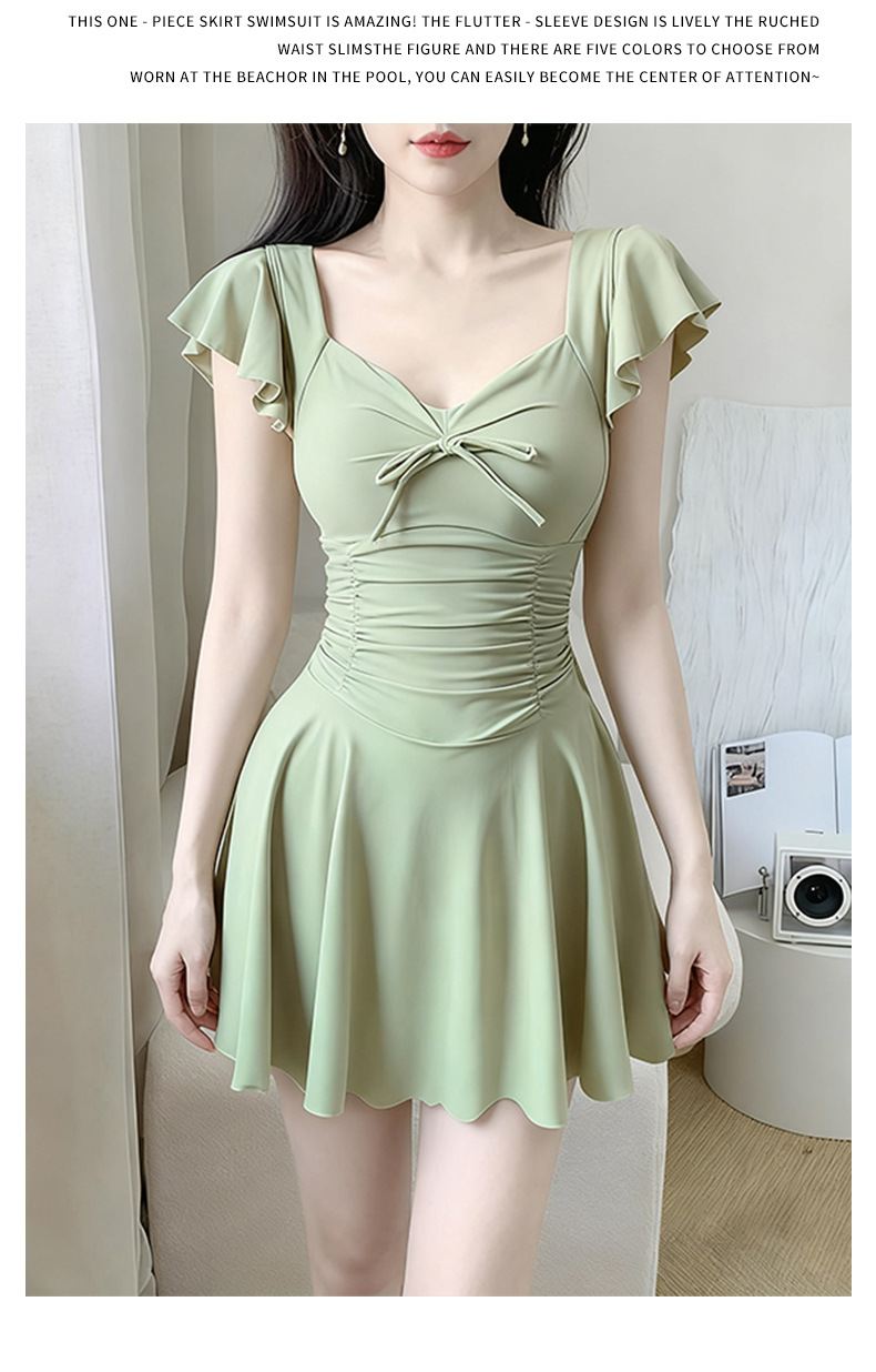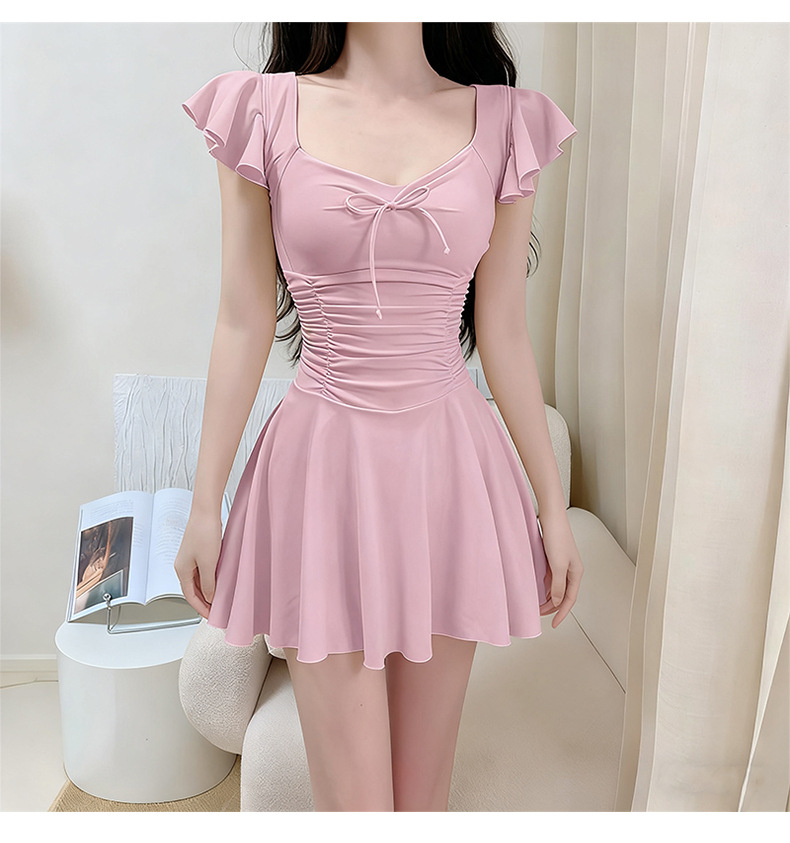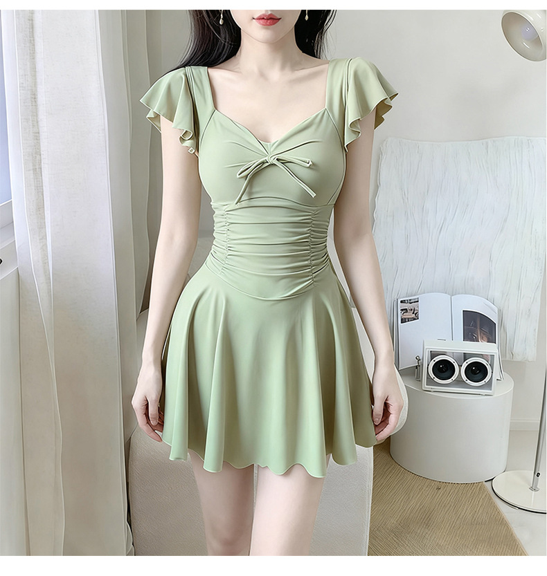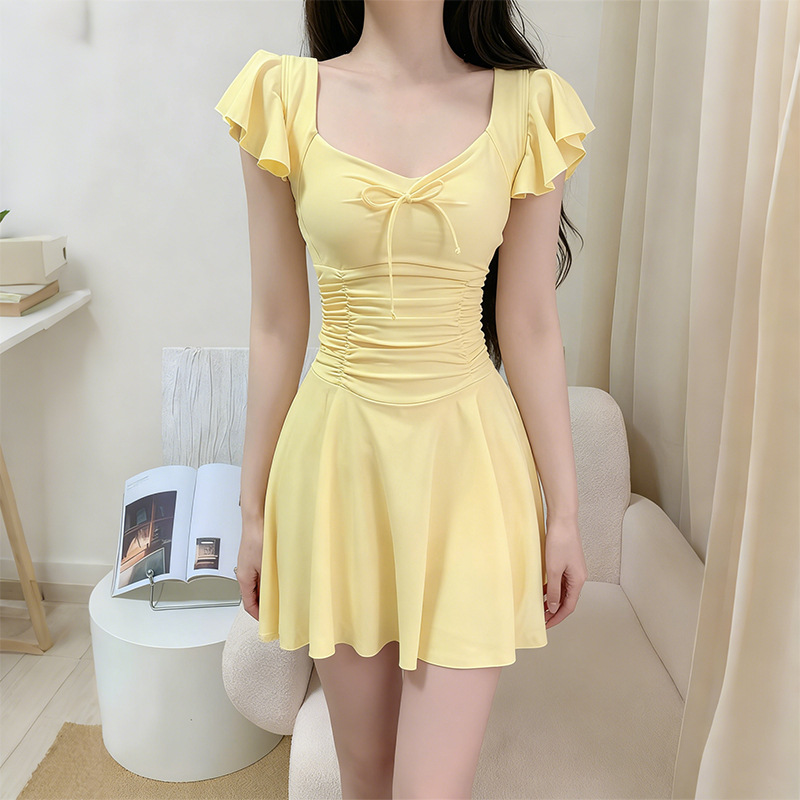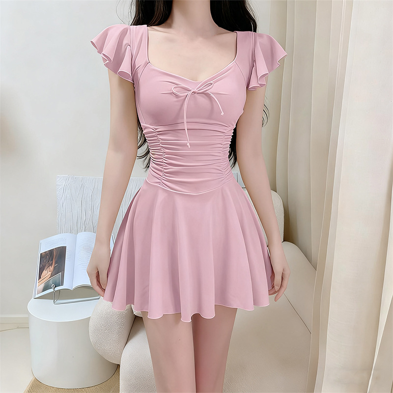 여성용 원피스 수영복 2025 새로운 단색 달콤하고 귀여운 보수적 인 살짝 뚱뚱한 체형 온천 휴가 수영복 도매