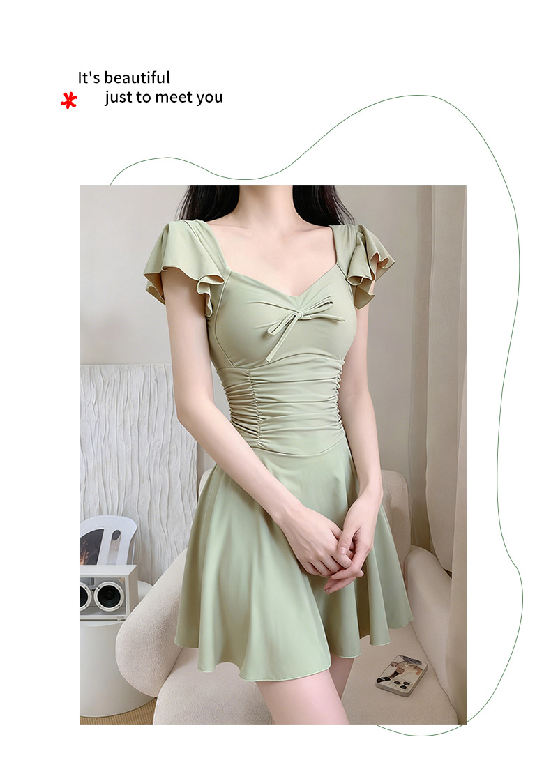 여성용 원피스 수영복 2025 새로운 단색 달콤하고 귀여운 보수적 인 살짝 뚱뚱한 체형 온천 휴가 수영복 도매스토어 가기