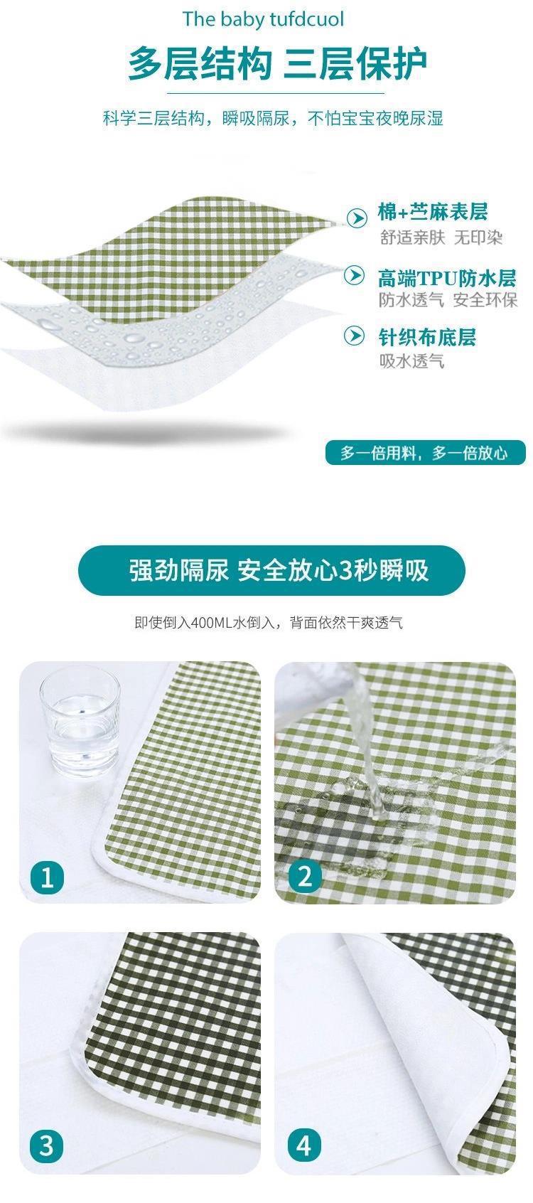 대마면 기저귀 패드 대형 아기 방수 세탁 가능 신생아 매트 매트리스 누출 방지 여름 통기성