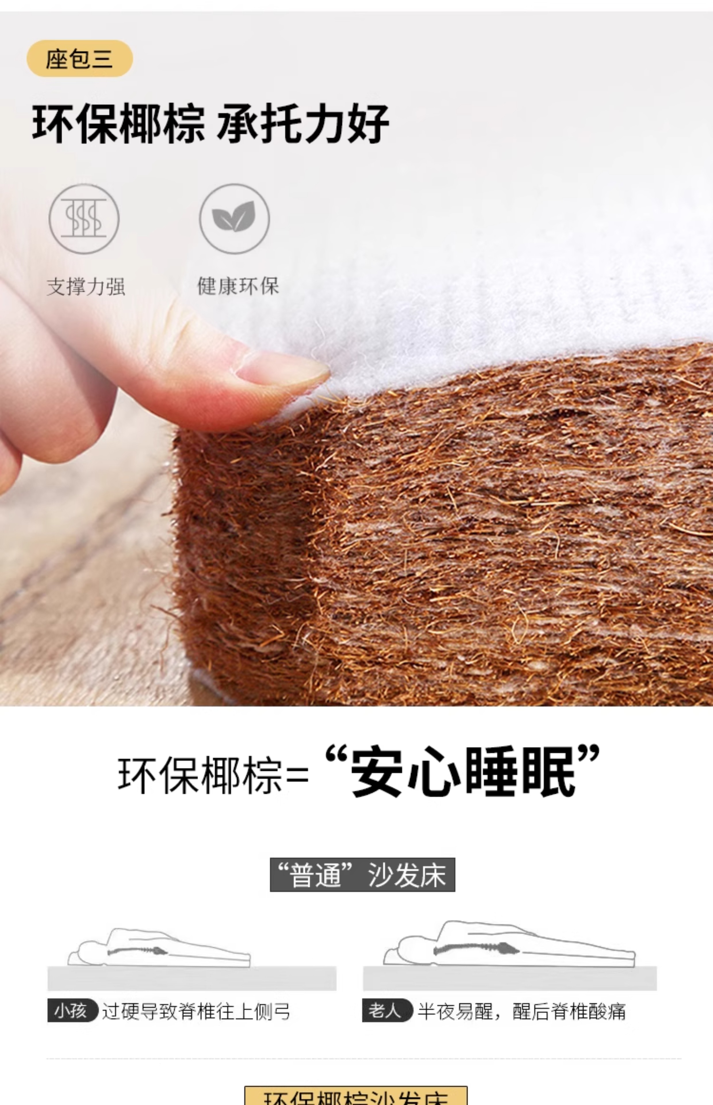 • 【 1.04m 】 일반 5cm 스펀지 + 2cm 코코넛 야자 - 면 및 린넨 색상 비고 - 플랫 팔걸이