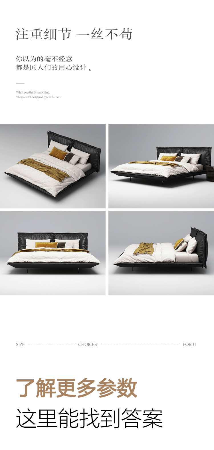 이탈리아 미니멀리스트 1층 소가죽 침대, 소형 주요 침실, 디자이너 가구, 고급스럽고 우아한 가벼운 고급 가죽 침대스토어 가기
