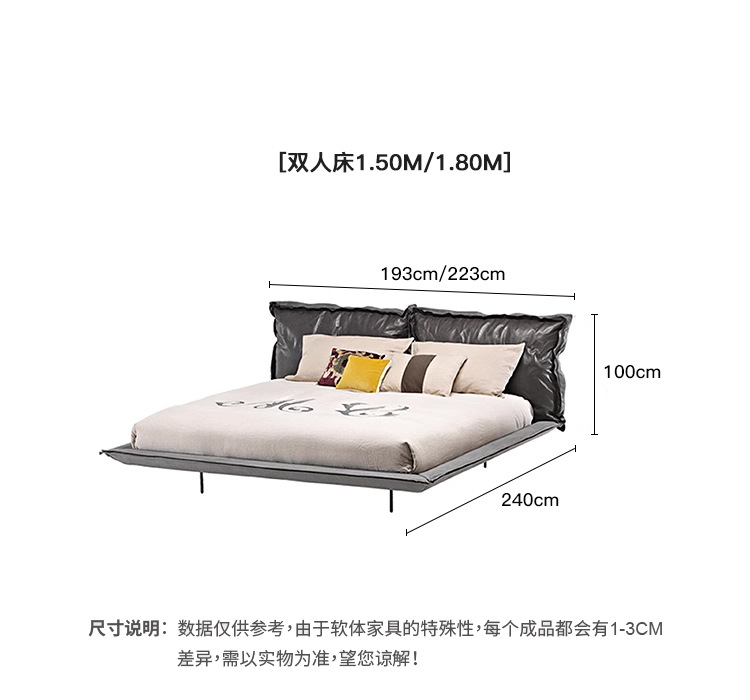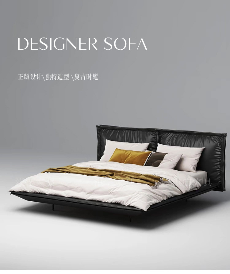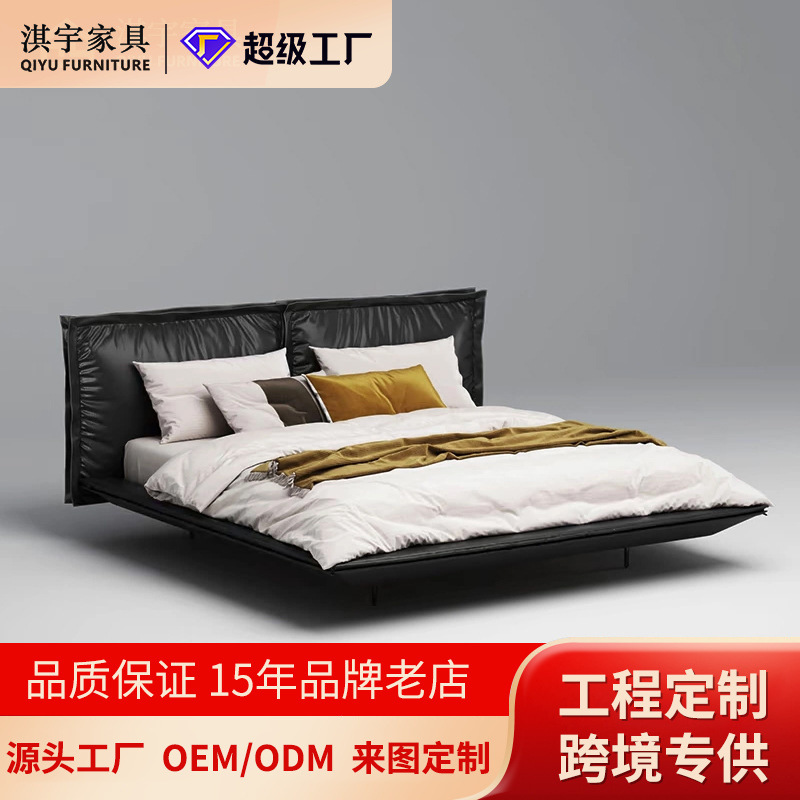 意式极简头层牛皮真皮床小户型主卧设计师家具高端大气轻奢皮艺床