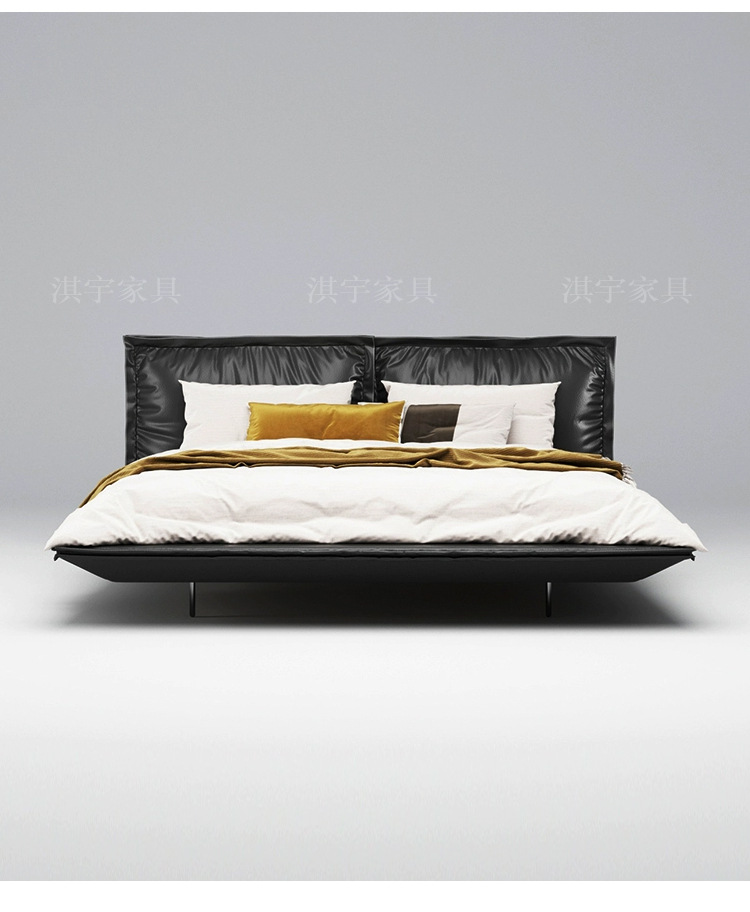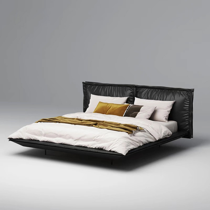 이탈리아 미니멀리스트 1층 소가죽 침대, 소형 주요 침실, 디자이너 가구, 고급스럽고 우아한 가벼운 고급 가죽 침대