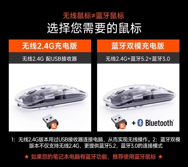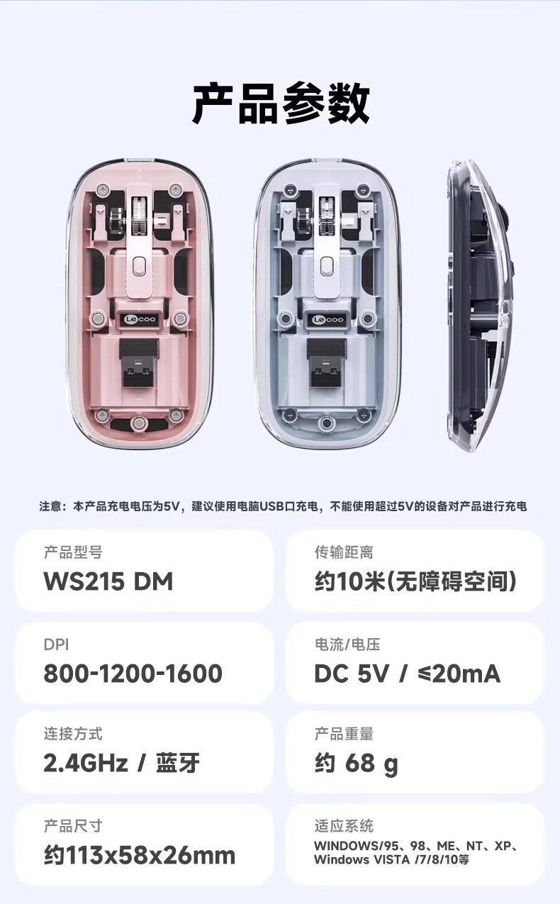 Laiku WS215 완전 투명 무선 절전 마우스 노트북 데스크탑 컴퓨터 비즈니스 오피스 충전 범용