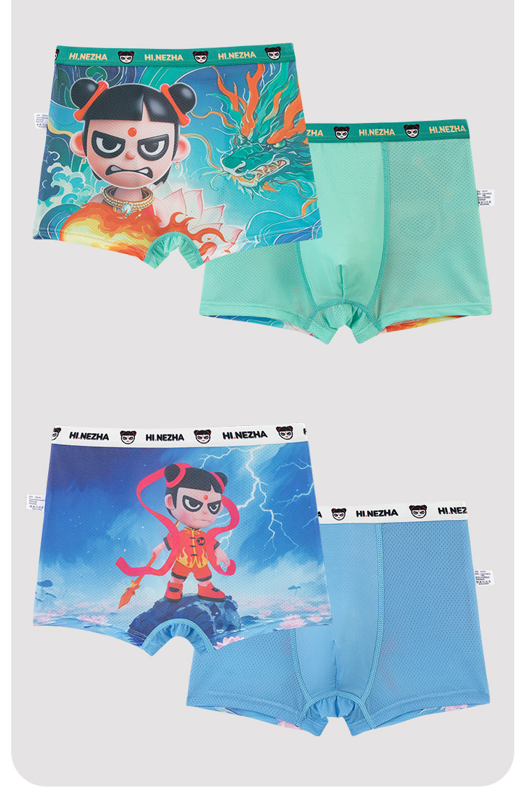 Nezha 어린이 소년 얼음 실크 시원한 속옷 여름 통기성 어린이 복서 속옷 어린 소년 반바지 카테고리 a스토어 가기