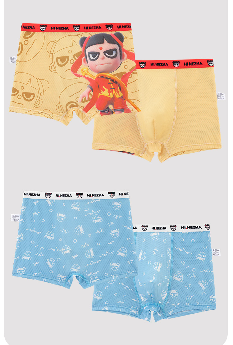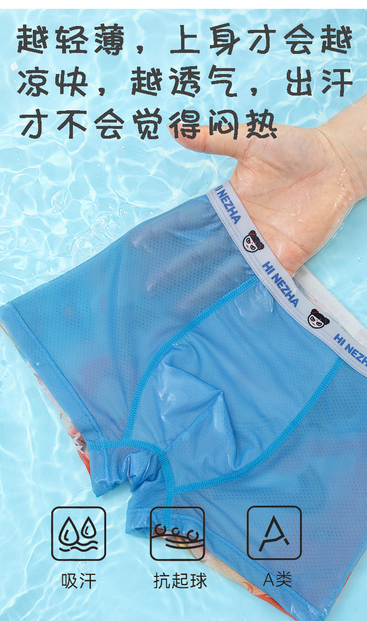 Nezha 어린이 소년 얼음 실크 시원한 속옷 여름 통기성 어린이 복서 속옷 어린 소년 반바지 카테고리 a