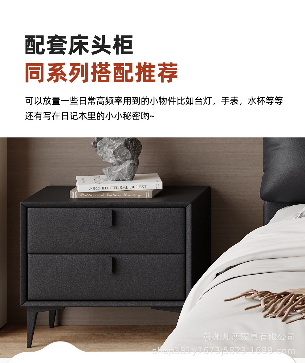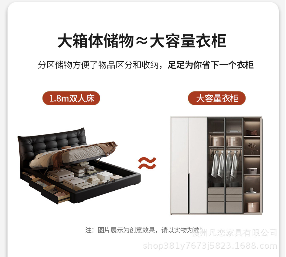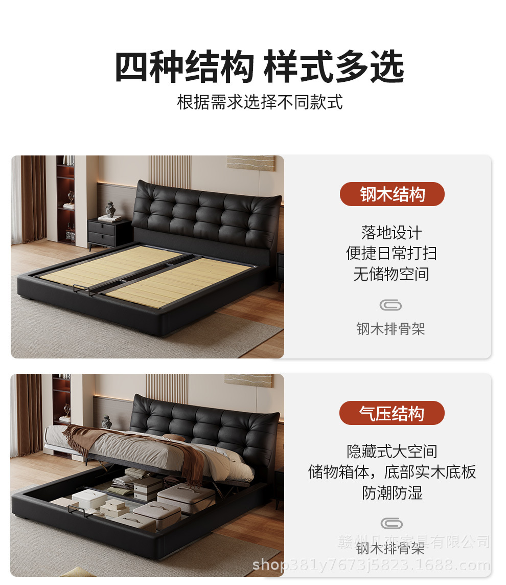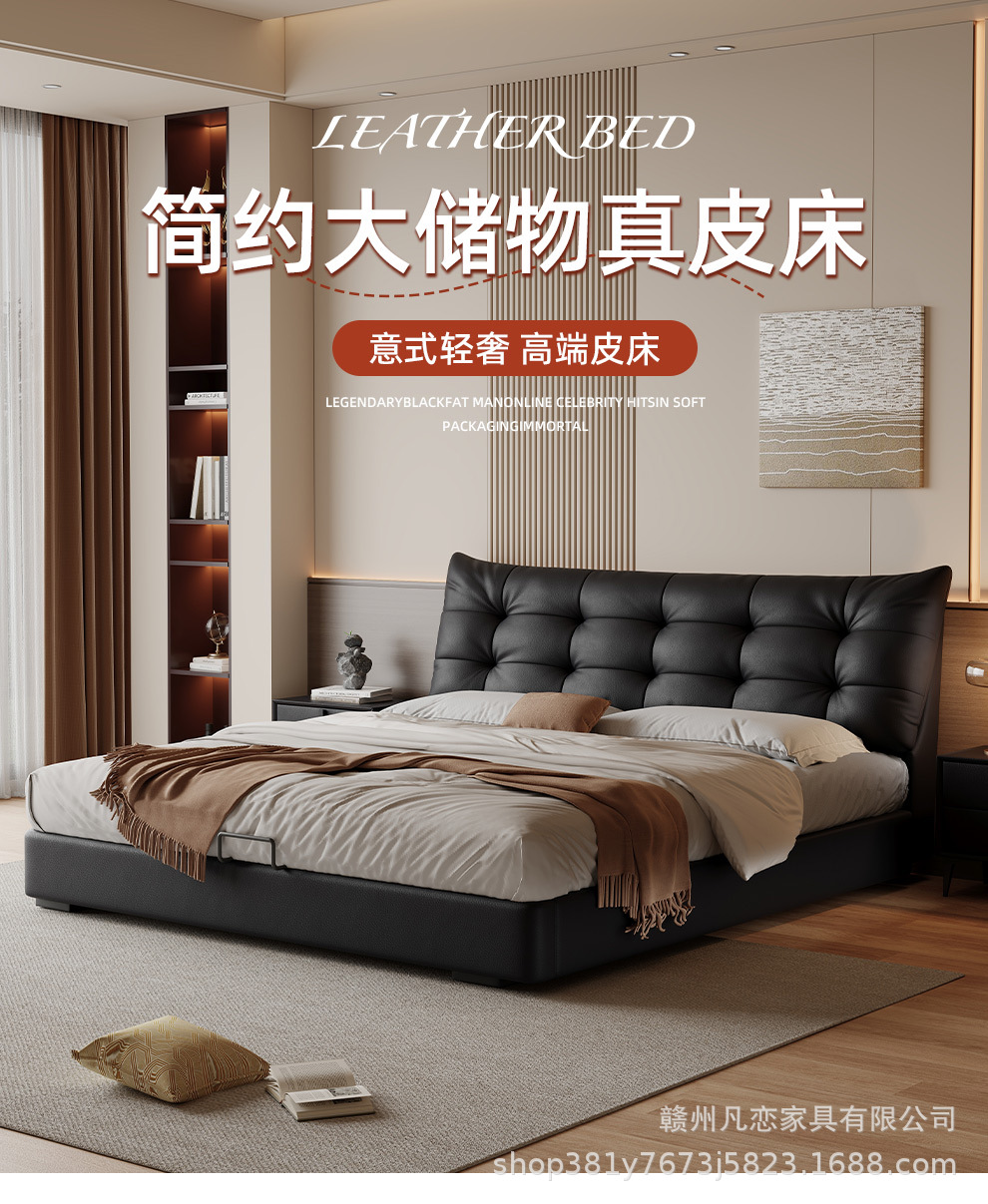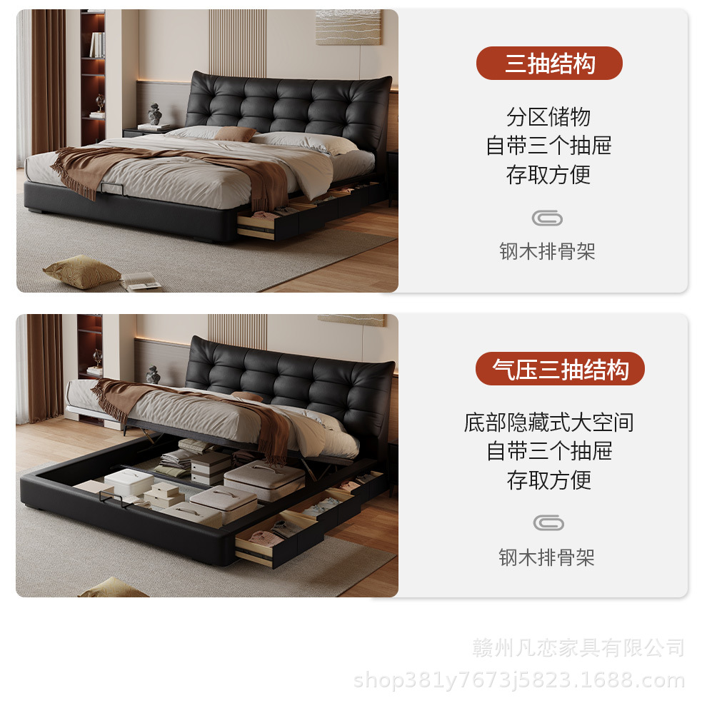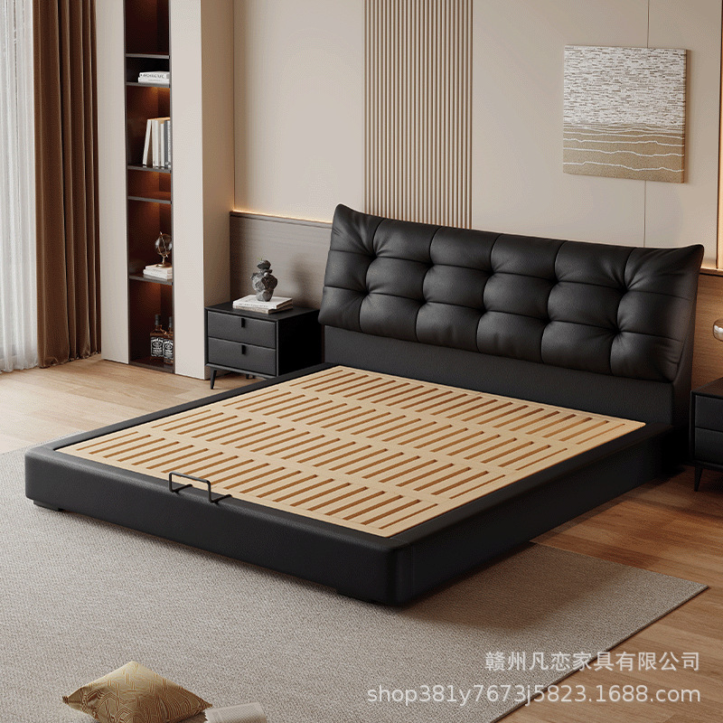 2025 새로운 스타일 이탈리아 심플한 1층 소가죽 침대, 작은 아파트 더블 침실 수납 하이박스 웨딩 침대스토어 가기
