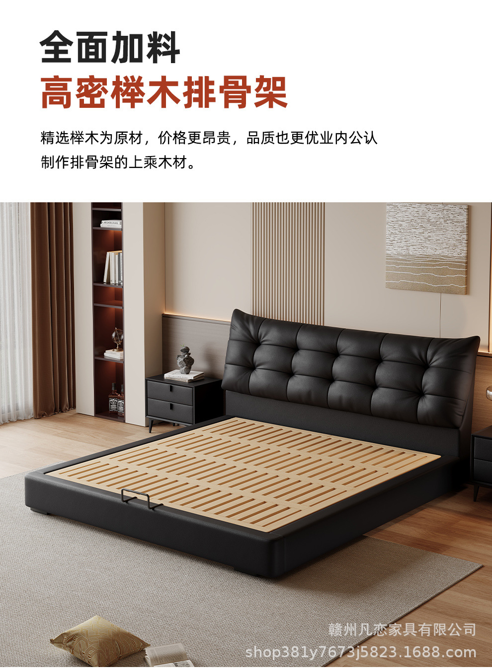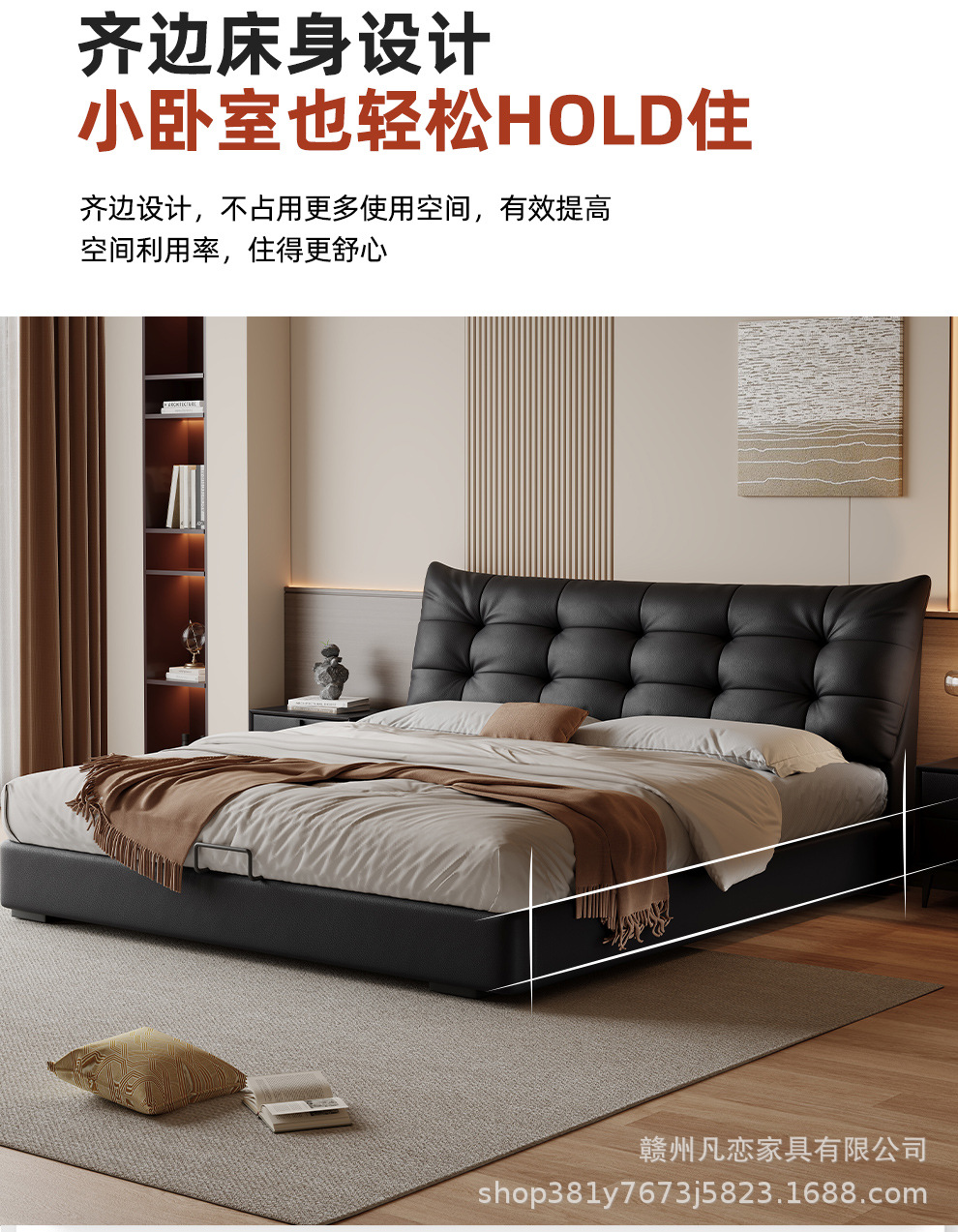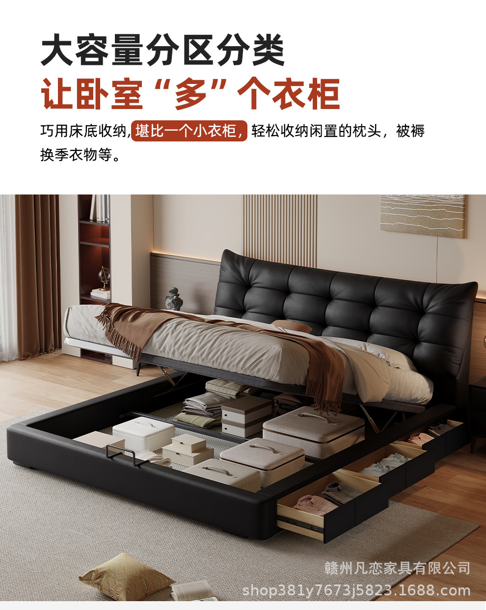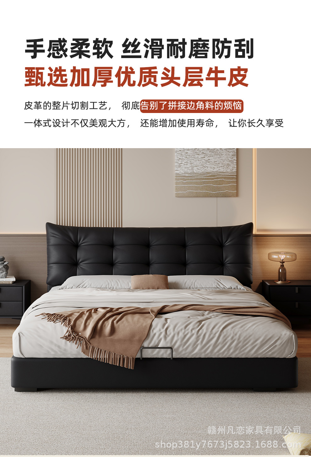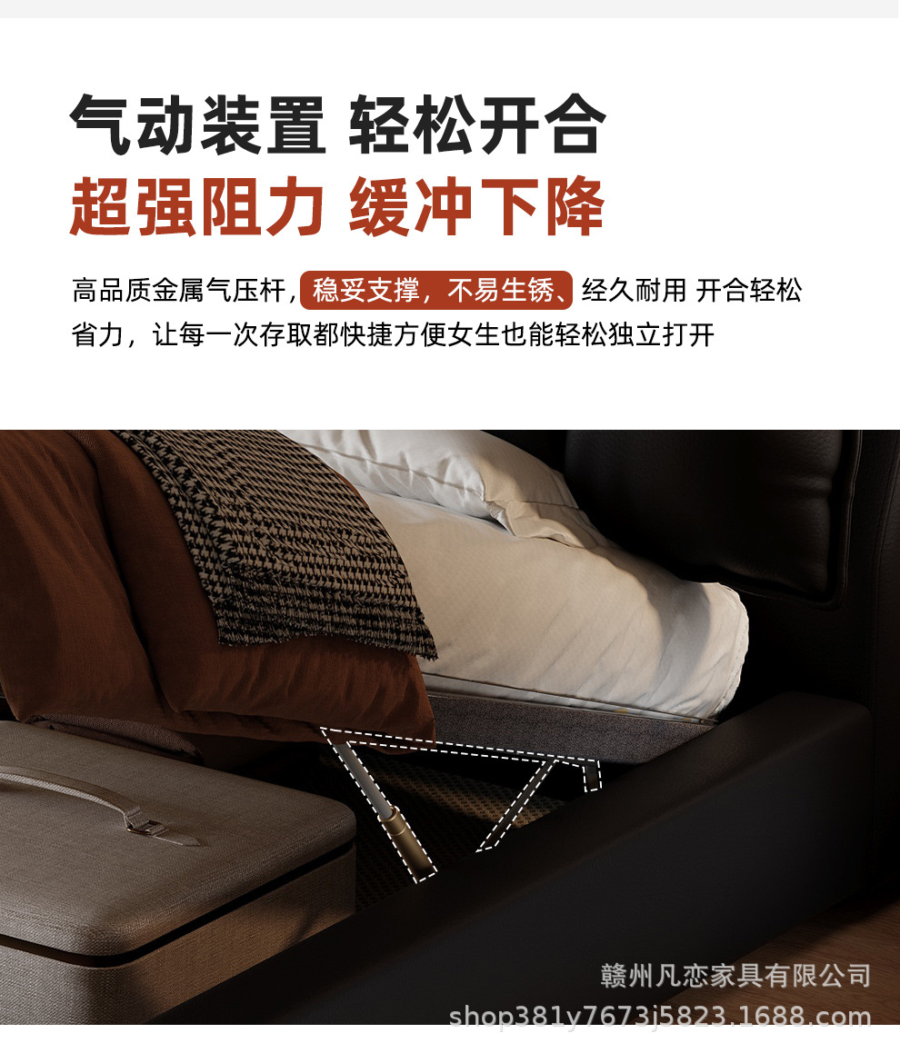 2025 새로운 스타일 이탈리아 심플한 1층 소가죽 침대, 작은 아파트 더블 침실 수납 하이박스 웨딩 침대스토어 가기
