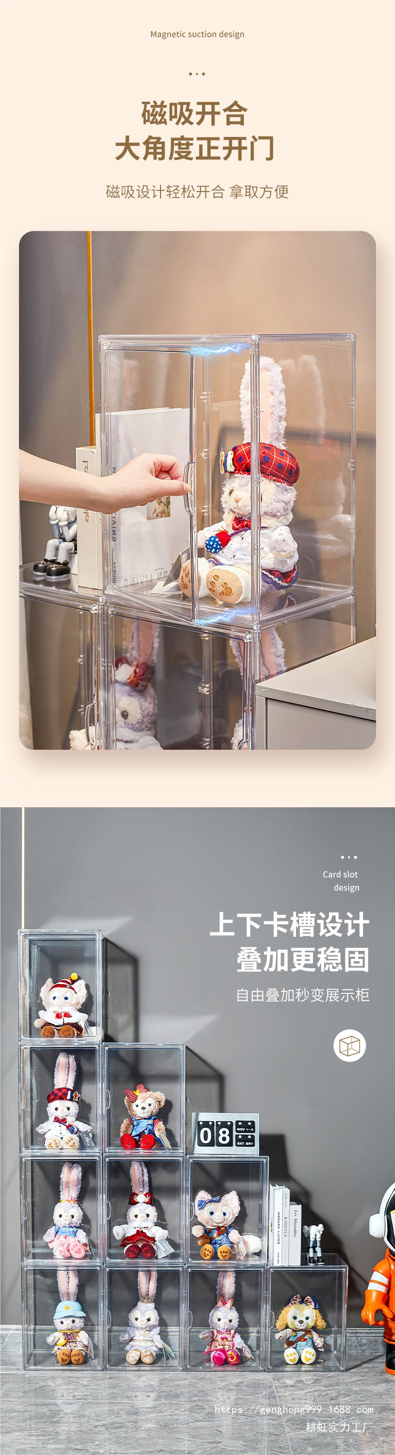 더 큰 투명 디스플레이 방진 캐비닛 블라인드 박스 선반 레고 인형 보관 상자는 핸드메이드 보관 선반과 함께 쌓을 수 있습니다.스토어 가기