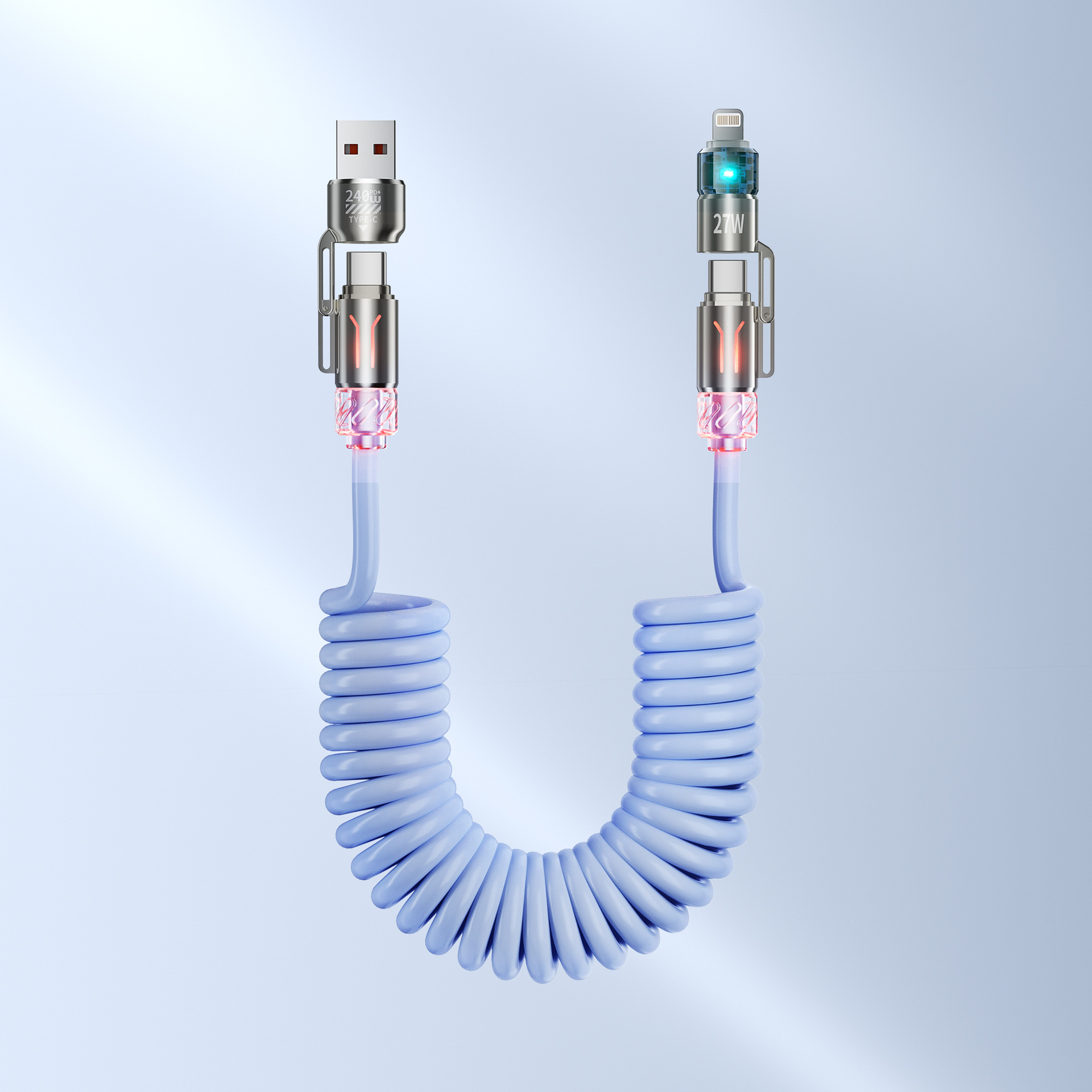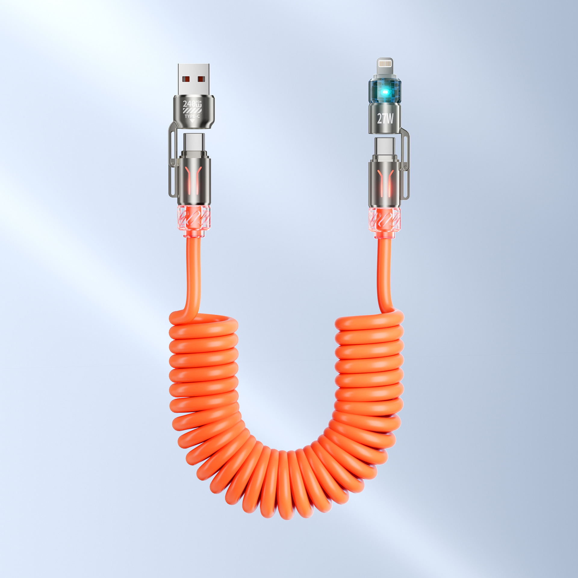 240W 4-in-1 차량용 스프링 데이터 케이블, USB-Type-c-lightning 초고속 충전 아로마테라피 케이블에 적합