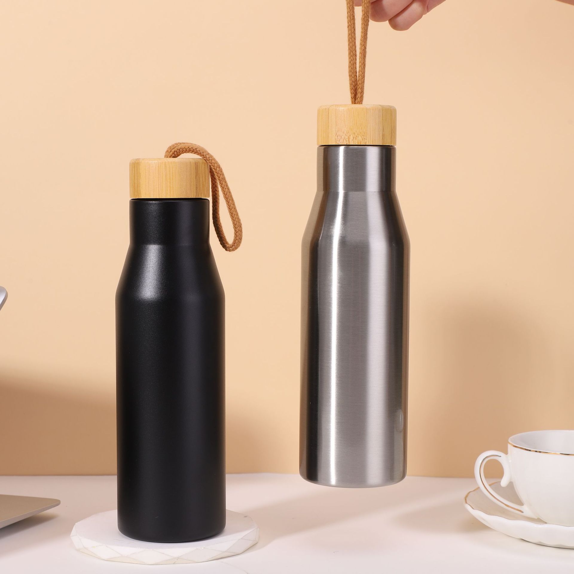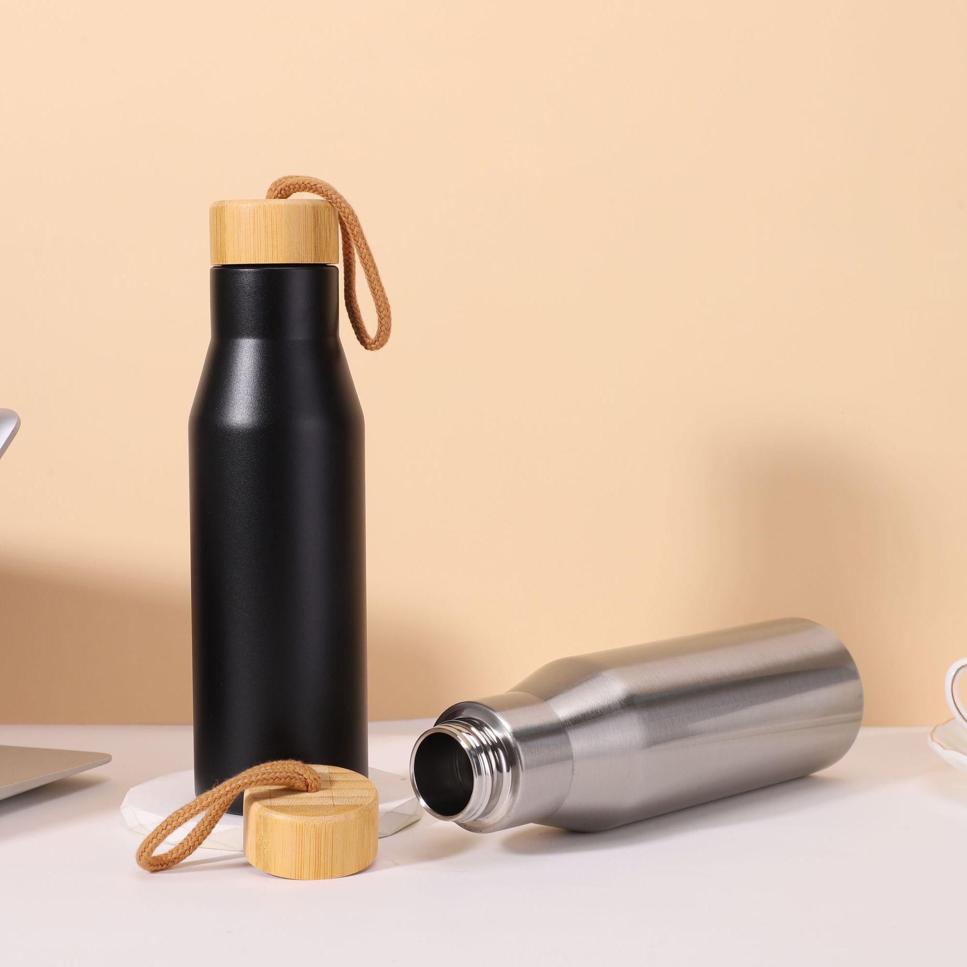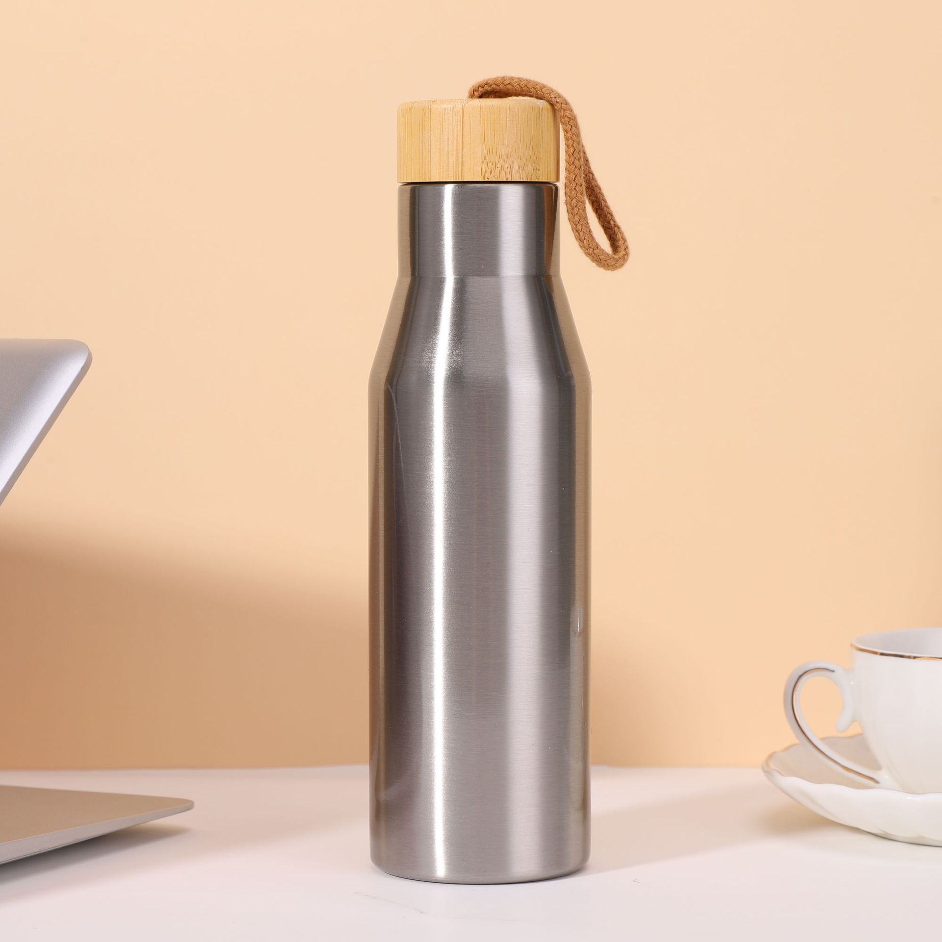 새로운 간단하고 세련된 대나무 패턴 커버 콜라 병 홈 오피스 스테인레스 스틸 보온병 컵 야외 휴대용 로프 워터 컵