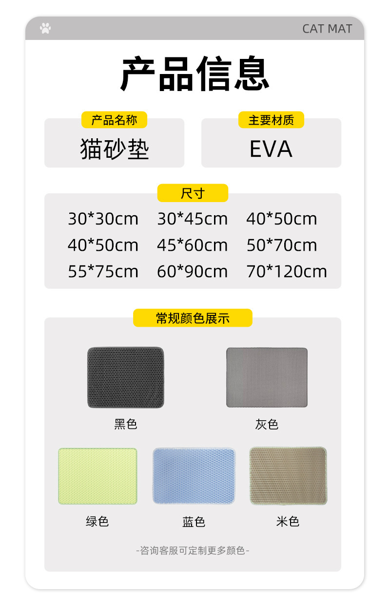 고양이 쓰레기 매트, 고양이 쓰레기 필터링 방지, 물 튀김 방지, 더러운 고양이 쓰레기 상자 애완 동물 매트, 이중층 eva 개 매트 도매스토어 가기