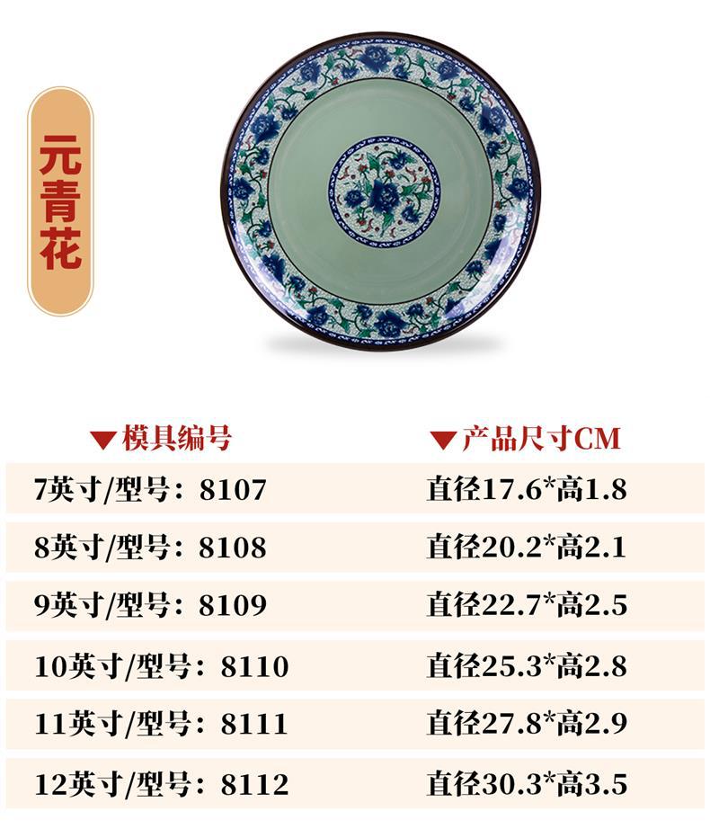 Xiangyuan 멜라민 식기 접시 상업용 레스토랑 호텔 차가운 요리 접시 전골 레스토랑 둥근 도자기 접시