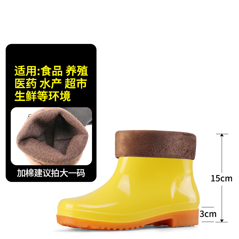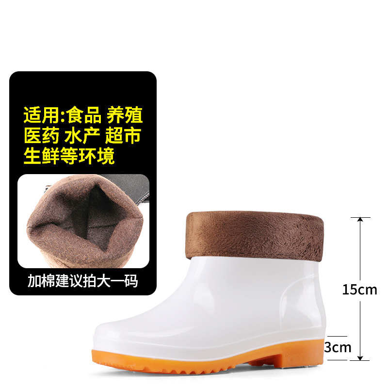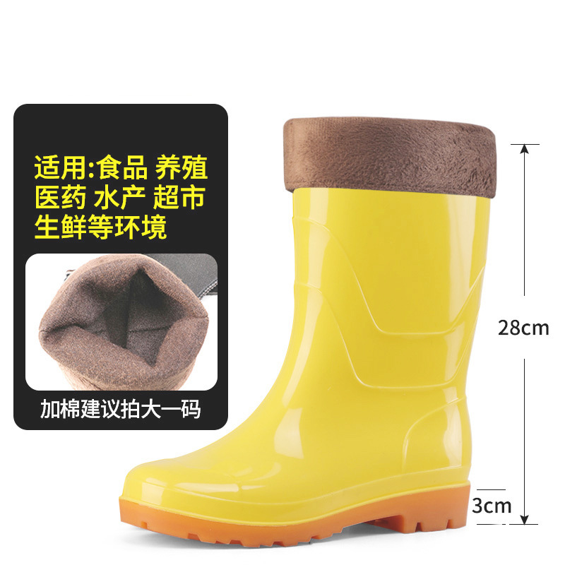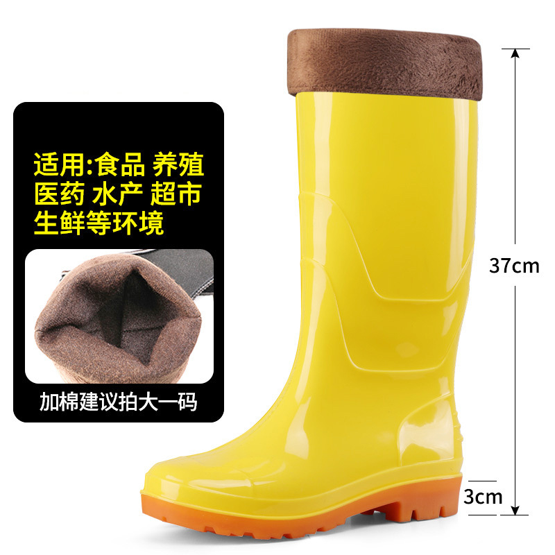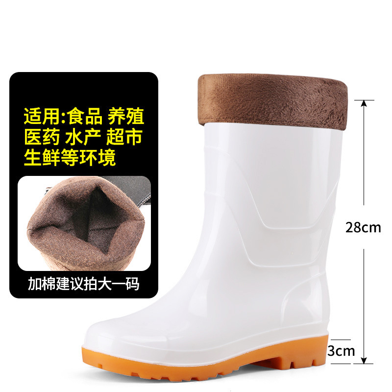 식품 작업용 하이탑 방수 미끄럼 방지 부츠, 식품 공장 주방 위생용 워터 부츠, 소가죽 내마모성 보온 레인부츠 (양털 안감)스토어 가기