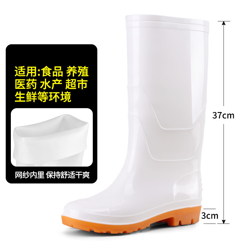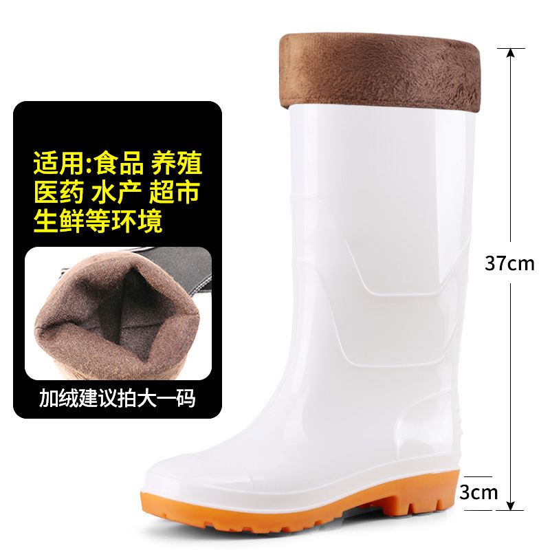 식품 작업용 하이탑 방수 미끄럼 방지 부츠, 식품 공장 주방 위생용 워터 부츠, 소가죽 내마모성 보온 레인부츠 (양털 안감)