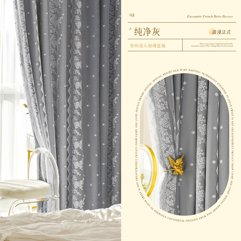 크림 스타일 커튼 더블 레이어 거즈 2025 새로운 스타일 소녀 침실 빛 차단 프렌치 레이스 천 거즈 통합
