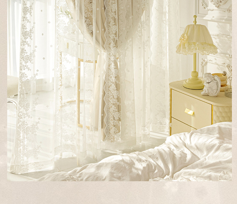 크림 스타일 커튼 더블 레이어 거즈 2025 새로운 스타일 소녀 침실 빛 차단 프렌치 레이스 천 거즈 통합스토어 가기