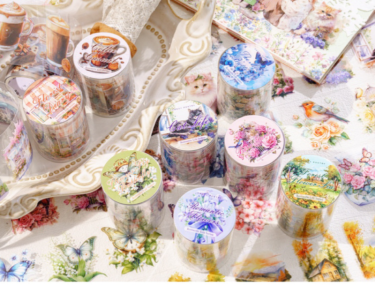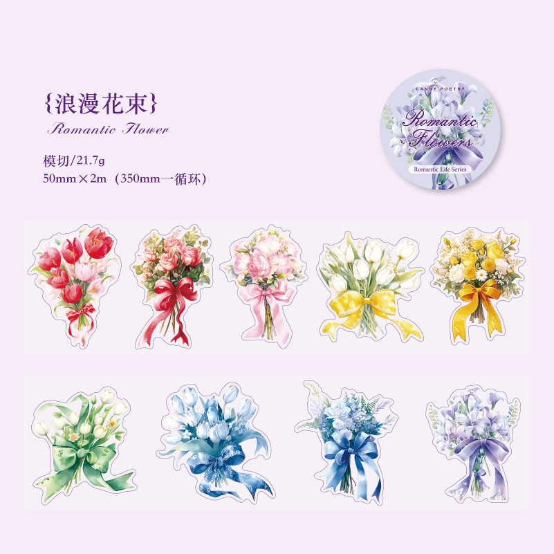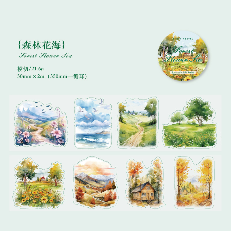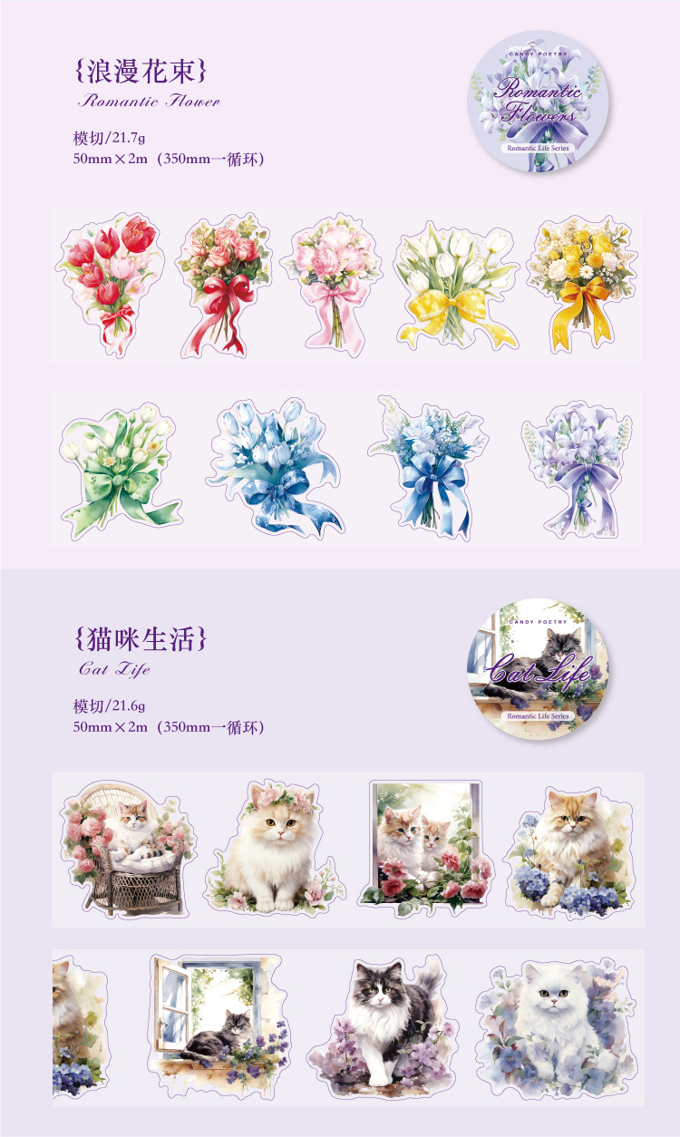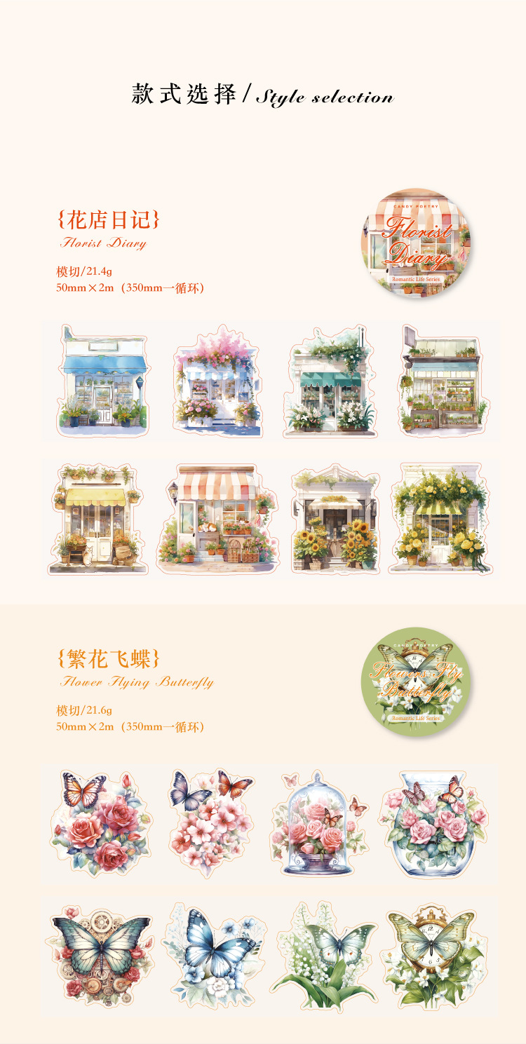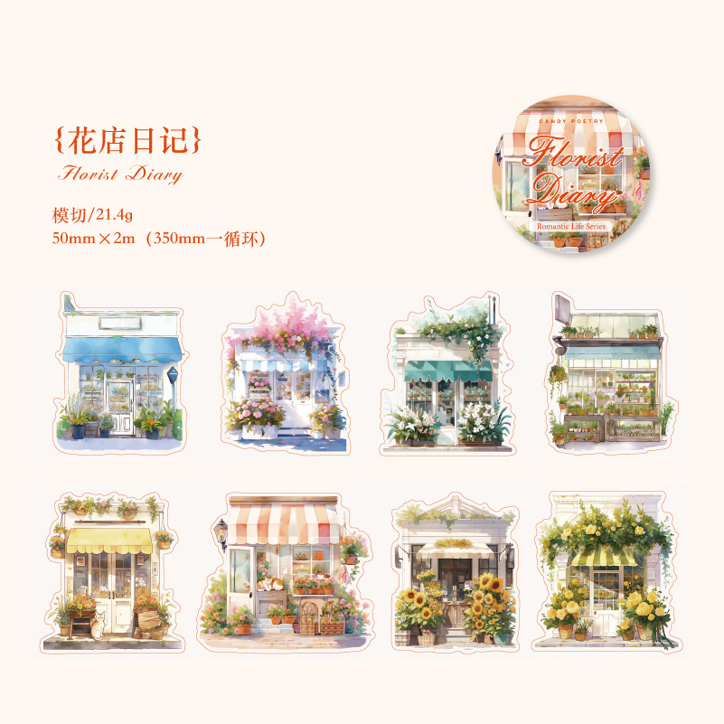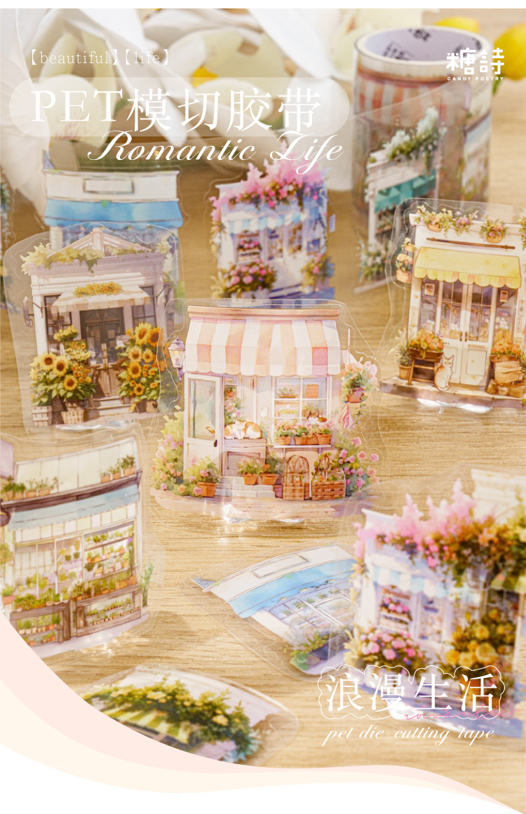 설탕 시 모양의 PET 테이프 로맨틱 라이프 시리즈 핸드북 DIY 장식 콜라주 식물 베이스 소재 8 스타일스토어 가기